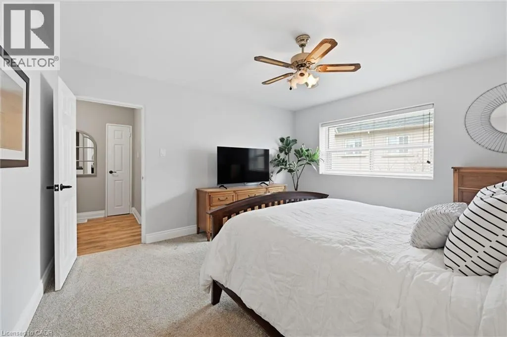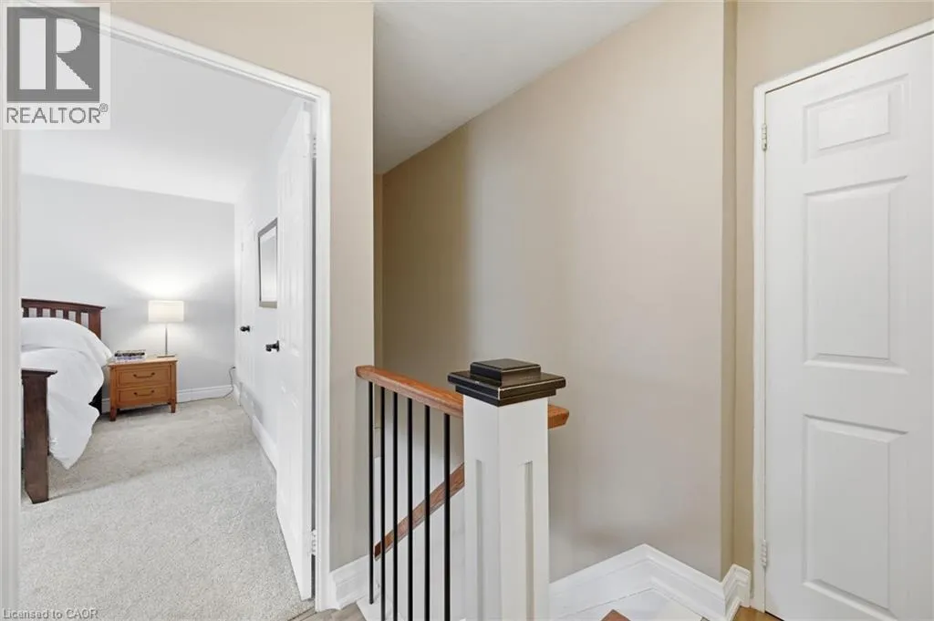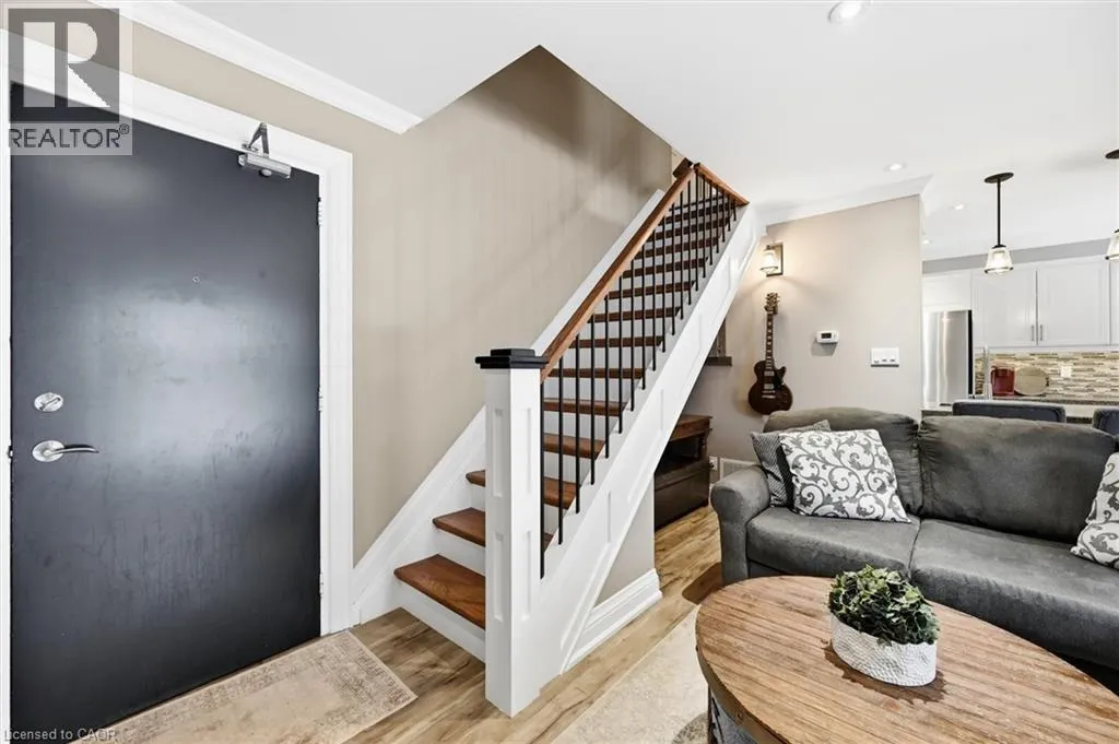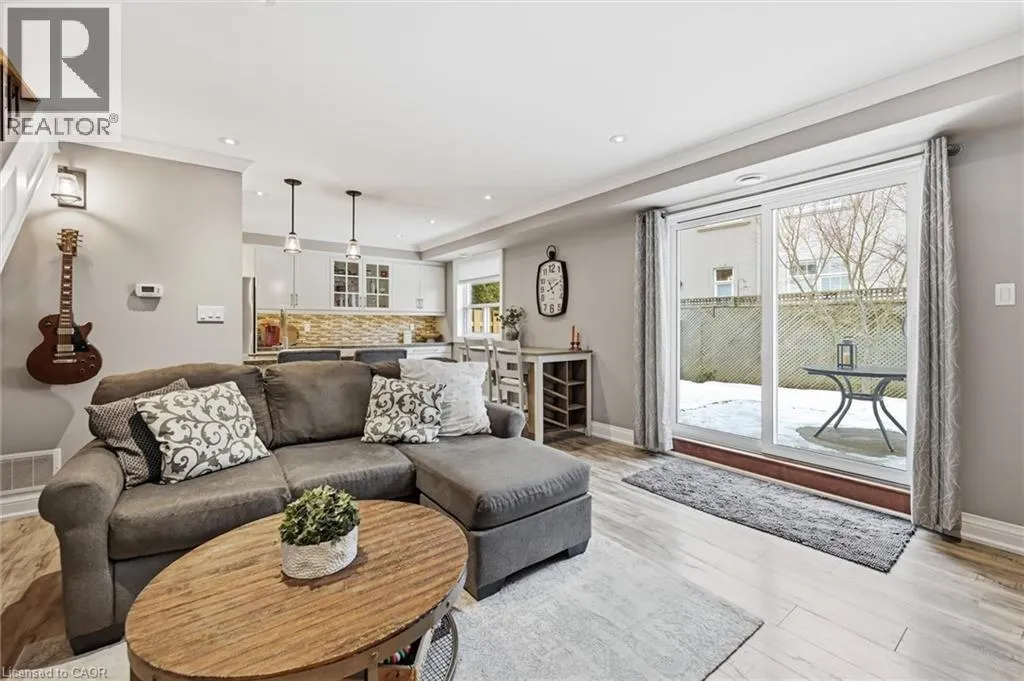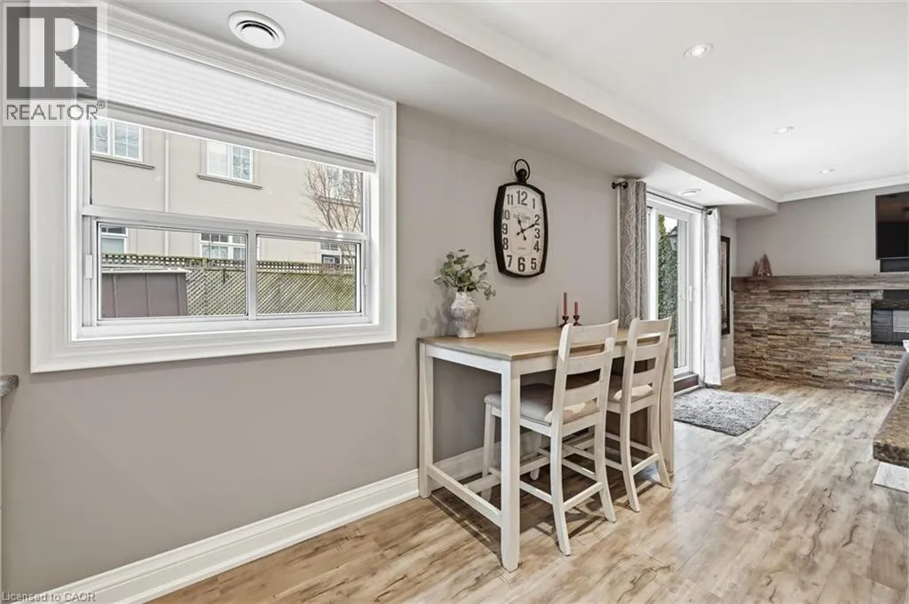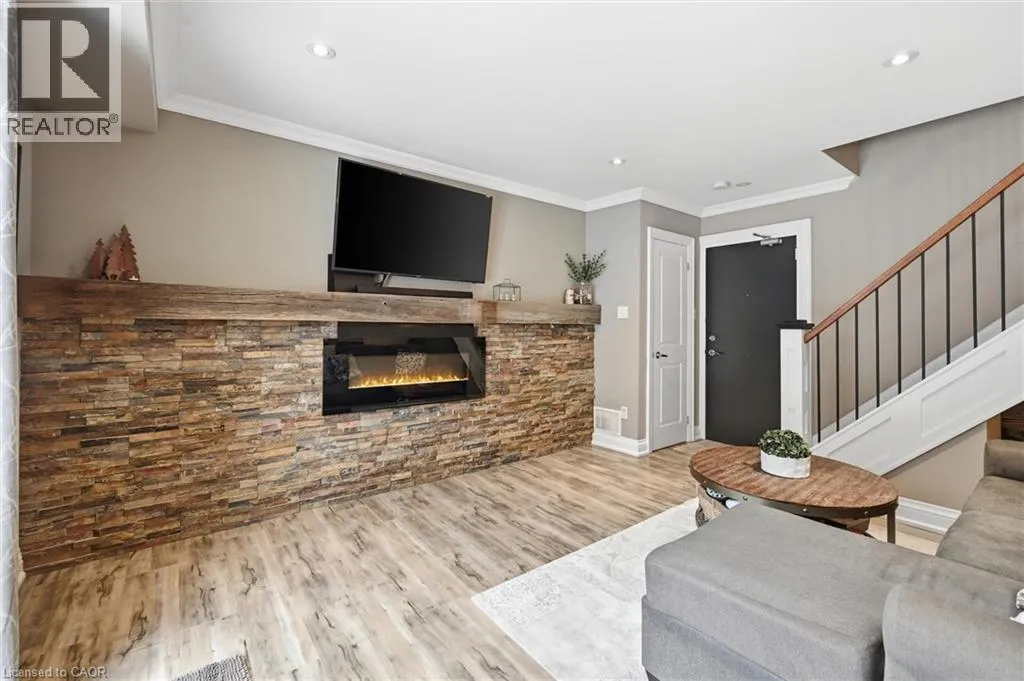 New Street to Claridge Spacious 2 bedroom townhome located in desirable south Burlington. Perfect for first time home buyers, downsizers or professionals. This home has been recently renovated to maximize living space and comfort. The entrance welcomes you to a bright and inviting main floor with cozy accents. The Living room features a decorative brick accent wall with electric fireplace and beam mantel. The Kitchen includes updated cabinets, quartz counters, stainless steel appliances and plenty of storage. Finished space under the stairs offers potential for home office or reading nook. The Dining area is perfect for family dinners or entertaining. Patio doors provide walk-out access to a private, fenced backyard. The 2nd level features two generous bedrooms filled with natural light, an updated 4-piece bathroom, and a separate laundry/storage room with brand new washer/dryer unit. Low maintenance exterior, condo feed include water, landscaping of common areas, and snow removal. Well run complex, includes building laundry room for owners use. Incredible location close to the lake, Centennial trail, downtown, highways, shopping and public transit. Ready to move in! (id:27476)