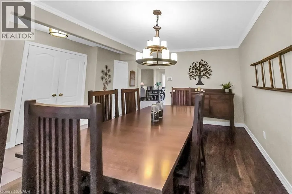 Dundas St to Sutton Dr to Pathfinder Dr Welcome to this beautifully maintained home, tucked away in Burlingtonâs highly desirable âOrchardâ neighbourhood. With 4+1 bedrooms and 3.5 bathrooms, this spacious home offers the perfect balance of comfort, functionality & modern touches. Ideal for growing families or anyone looking for room to live, work, and entertain in style. Step inside to discover a bright, open-concept main level. The eat-in kitchen features granite countertops, modern cabinetry, pot lights, and a seamless flow into the family room w/ a cozy gas fireplace. Crown moulding adds a touch of elegance to the formal dining area, ideal for hosting memorable dinners w/ family & friends. Sliding glass doors lead to a private, fully fenced backyard, complete w/ a spacious deck, lush landscaping, hot tub, and garden shed, making it the perfect space to unwind or entertain. Practical details havenât been overlooked. The mudroom off the garage includes custom built-ins to keep daily life organized. Upstairs, the primary bedroom offers a true retreat, complete with a luxurious 5pc ensuite featuring heated floors, a deep soaker tub, and a separate shower. Three additional bedrooms, a 4pc bath, and the convenience of upper-level laundry complete this level. The finished basement adds valuable living space with a 5th bedroom, a spacious rec room, 4pc bath, and ample storage. This space is ideal for guests, teens, or a home office setup. This home has been extensively updated over the past 10 years, including: windows (2024), ensuite bath, shingles, furnace & AC, backyard deck & landscaping, driveway, garage door, flooring, California shutters, and kitchen cabinetsâjust move in and enjoy. Perfectly located close to schools, parks, trails, shopping, dining, and just a short drive to Bronte Creek Provincial Park and major highways including the QEW & 407. Donât miss your chance to live in one of Burlingtonâs best communities. This exceptional home is waiting for you! (id:27476)