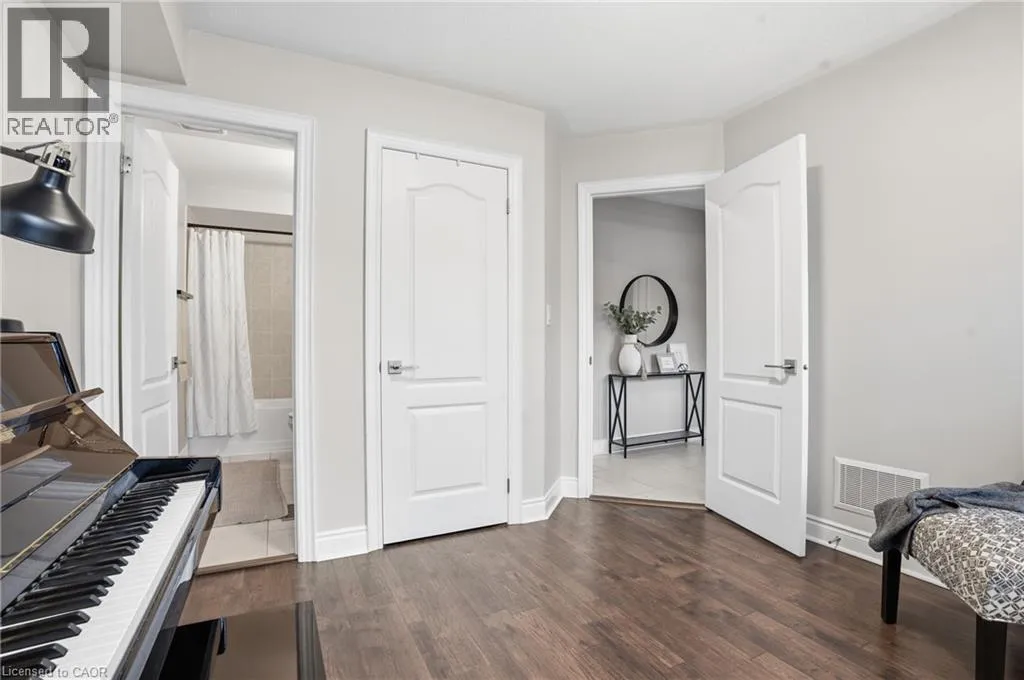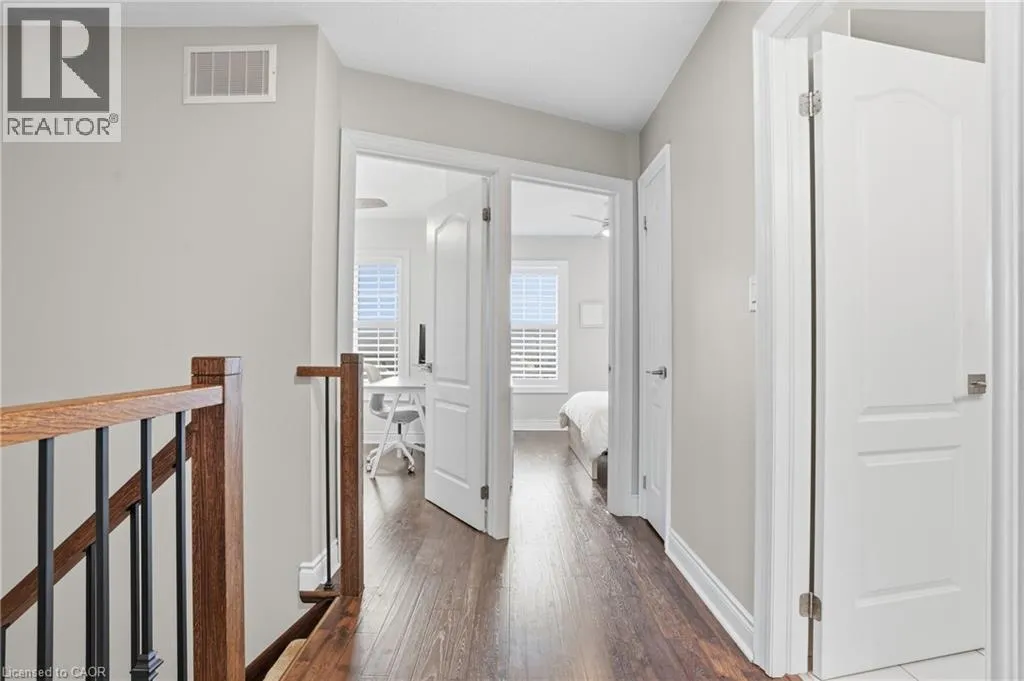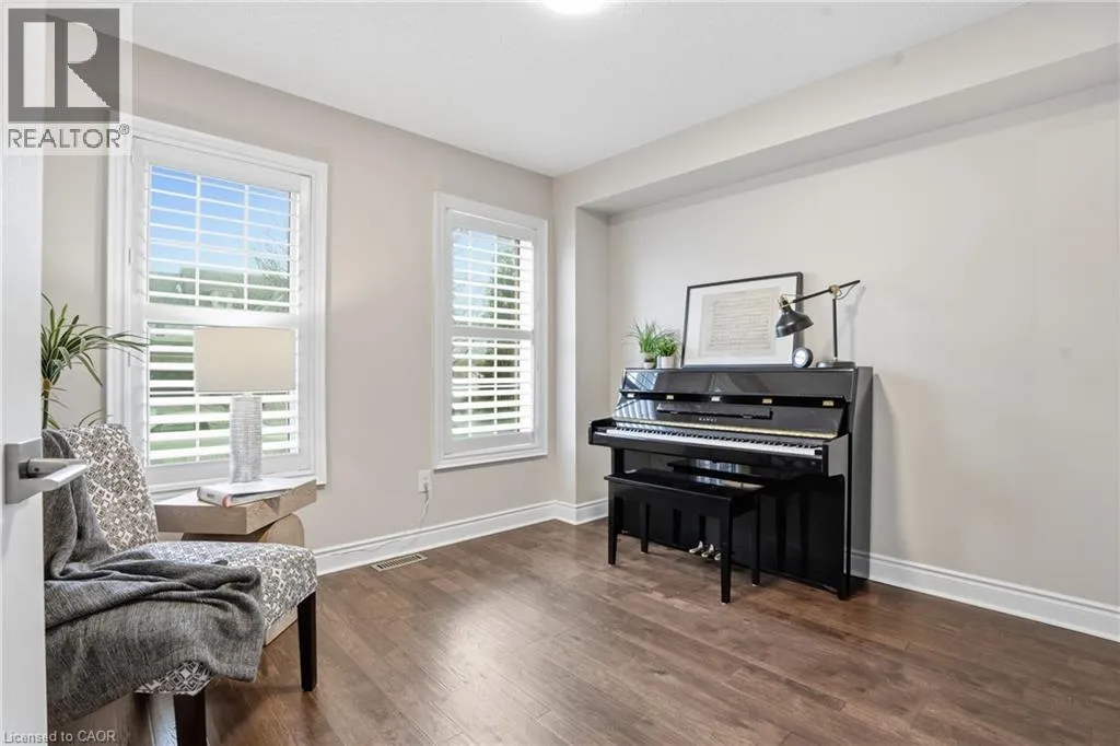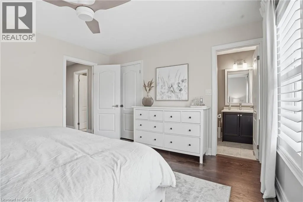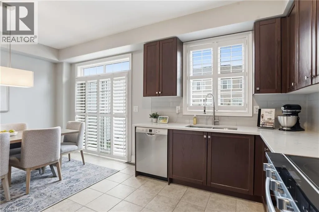 Appleby Line North of Dundas; West on Thomas Alton Welcome to this exceptional 3-storey, 4-bedroom townhouse condo in sought-after Alton Village! Offering rare functionality and thoughtful design, this beautifully maintained home features a double car garage plus double driveway parking â comfortably fitting 4 vehicles. Inside, youâll find a highly desirable ground-floor bedroom complete with its own private ensuite, perfect for in-laws, guests, a home office, or multi-generational living. The main level showcases a bright, open-concept layout with tasteful updates throughout, ideal for todayâs discerning buyer. The spacious kitchen flows seamlessly to a large private balcony â perfect for barbecuing, outdoor dining, and relaxing evenings. Upstairs, three bedrooms provide ideal separation for families, including a well-appointed primary retreat. An unfinished basement offers excellent storage or future potential to customize additional living space. Stylish, functional, and move-in ready â this is a rare opportunity in one of Burlingtonâs most family-friendly communities, close to schools, parks, shopping, and commuter routes. Turnkey living with space, parking, and flexibility â this one checks all the boxes. Upgrades: California shutters, Railings, Powder room vanity, Entry floor tile, Quartz Countertops (kitchen), Kitchen appliances (dishwasher, stove, microwave, fridge), Kitchen backsplash, Updated lighting/ceiling fans, Landscaping, Furnace/AC/humidifier (2020) (id:27476)