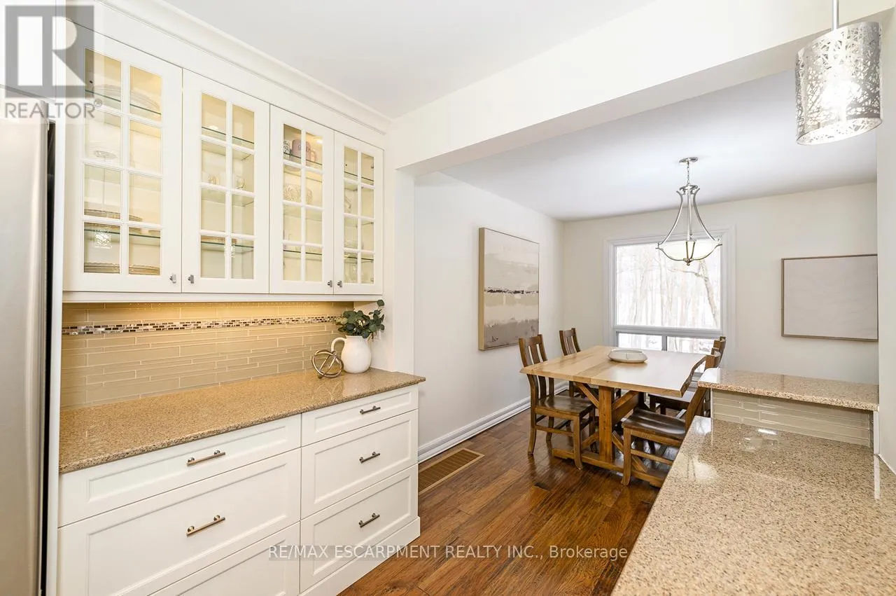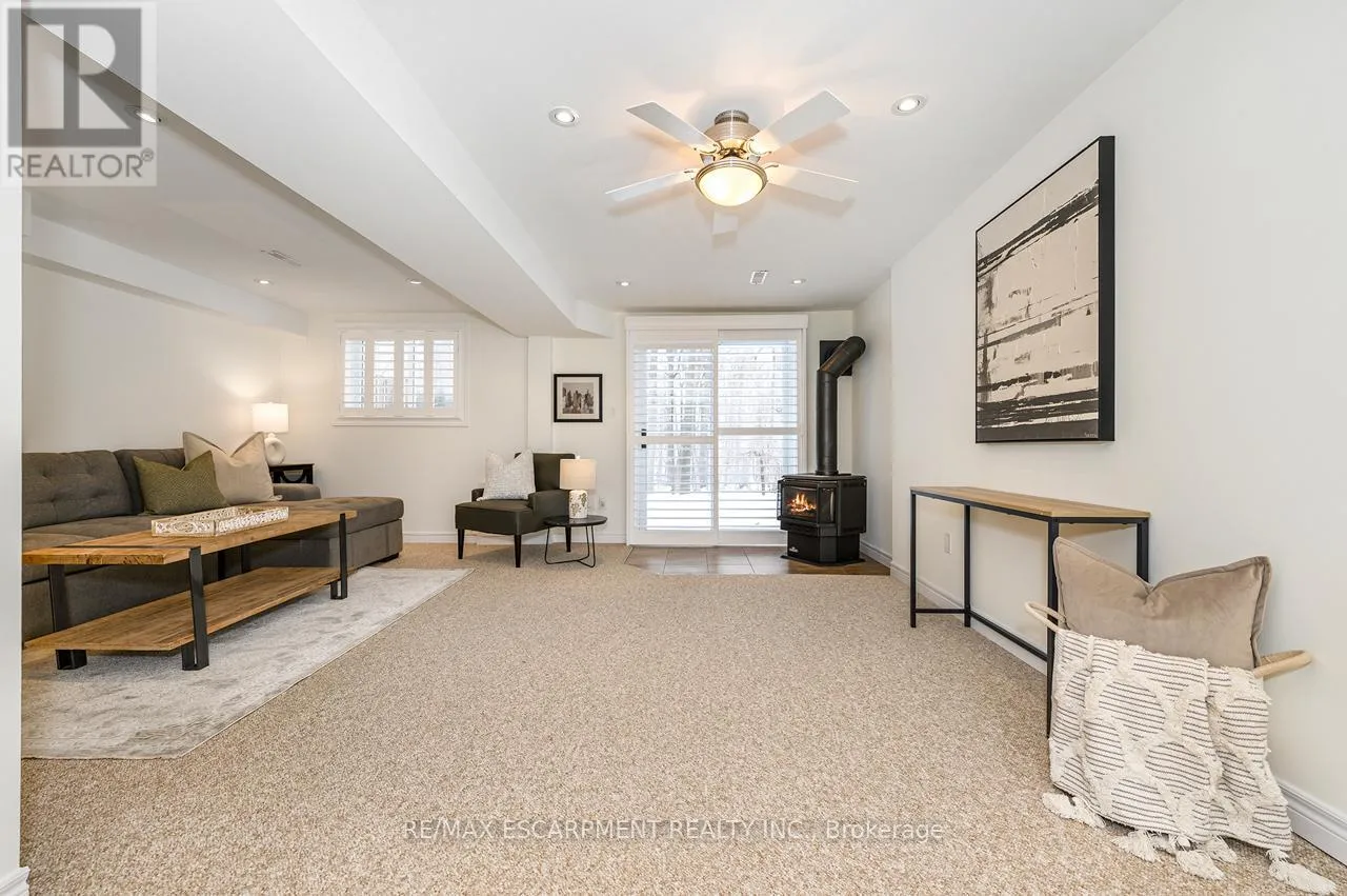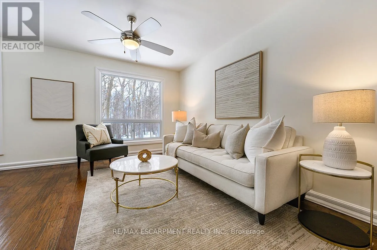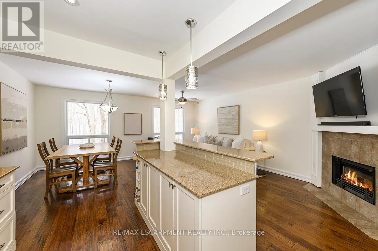 Upper Middle Road Tucked away in the highly sought-after and tranquil Cavendish Woods community, this beautifully maintained 3-bedroom townhome offers the perfect blend of privacy, style, and serene forest-backed living. Newly painted throughout in bright, neutral tones, this home offers a fresh, modern feel and is truly move-in ready. The main floor features a bright, open-concept layout with a cozy gas fireplace and stunning tree-lined views that bring the outdoors in. The beautiful white kitchen is both stylish and functional, complete with stainless steel appliances, granite countertops, and a breakfast bar, perfect for everyday living and effortless entertaining. Upstairs, the grand primary retreat offers a walk-in closet, convenient ensuite privilege, and access to a private balcony, the ideal spot for morning coffee or afternoon reading surrounded by nature. The updated 5-piece bathroom features a glass walk-in shower and a luxurious jetted soaker tub, creating a spa-like experience at home. Two additional spacious bedrooms provide flexibility for family, guests, or a home office. The fully finished walk-out basement offers additional living space with a second gas-burning fireplace, perfect for relaxing or entertaining, and provides seamless access to the serene backyard setting. The basement also offers a finished laundry room and ample storage space. Enjoy maintenance-free living with condo fees that include ALL exterior maintenance, windows, doors, roof, building insurance, water, as well as Bell cable and high-speed internet. This is a rare opportunity to own in one of the area's most desirable and private communities. (id:27476)