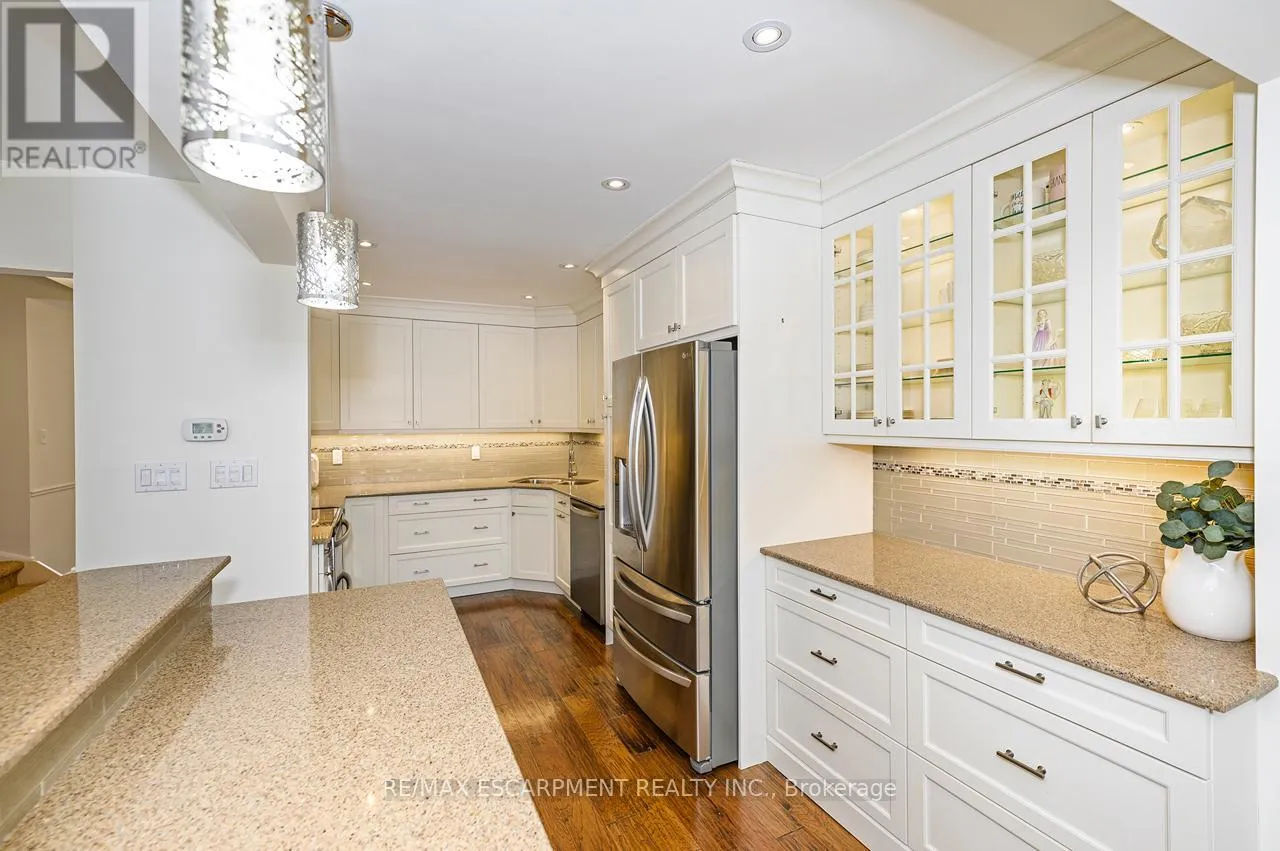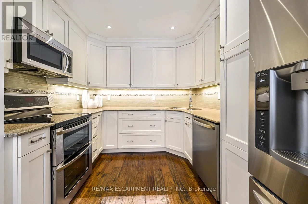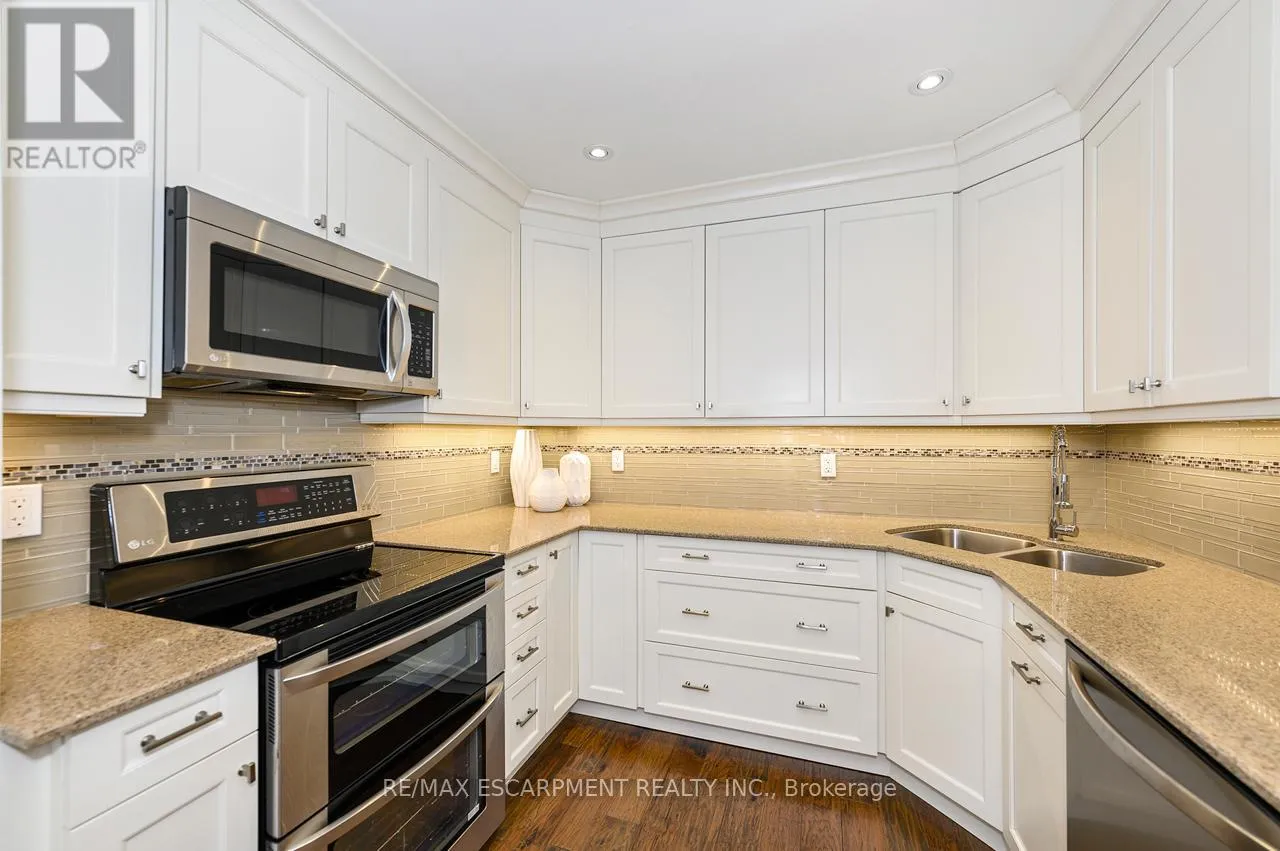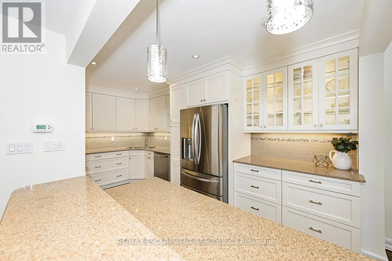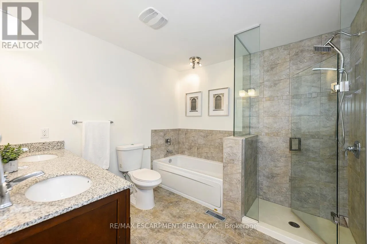 Upper Middle Road Tucked away in the highly sought-after and tranquil Cavendish Woods community, this beautifully maintained 3-bedroom townhome offers the perfect blend of privacy, style, and serene forest-backed living. Newly painted throughout in bright, neutral tones, this home offers a fresh, modern feel and is truly move-in ready. The main floor features a bright, open-concept layout with a cozy gas fireplace and stunning tree-lined views that bring the outdoors in. The beautiful white kitchen is both stylish and functional, complete with stainless steel appliances, granite countertops, and a breakfast bar, perfect for everyday living and effortless entertaining. Upstairs, the grand primary retreat offers a walk-in closet, convenient ensuite privilege, and access to a private balcony, the ideal spot for morning coffee or afternoon reading surrounded by nature. The updated 5-piece bathroom features a glass walk-in shower and a luxurious jetted soaker tub, creating a spa-like experience at home. Two additional spacious bedrooms provide flexibility for family, guests, or a home office. The fully finished walk-out basement offers additional living space with a second gas-burning fireplace, perfect for relaxing or entertaining, and provides seamless access to the serene backyard setting. The basement also offers a finished laundry room and ample storage space. Enjoy maintenance-free living with condo fees that include ALL exterior maintenance, windows, doors, roof, building insurance, water, as well as Bell cable and high-speed internet. This is a rare opportunity to own in one of the area's most desirable and private communities. (id:27476)