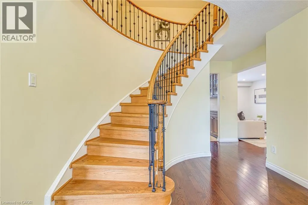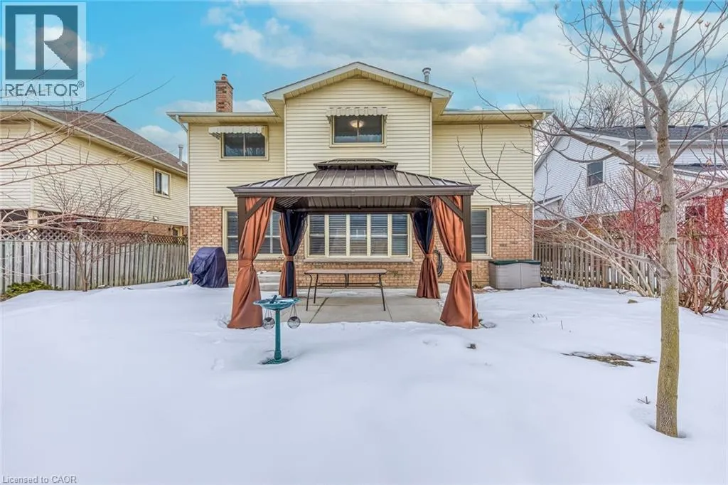 Headon Rd to Folkway Dr to Vista Dr Welcome to 2223 Vista Drive, ideally located on one of the most desirable streets in Burlington's sought-after Headon Forest community. This beautifully updated 4-bedroom, 3-bath detached home offers over 3,000 sq ft of living space with 2,355 sq ft above grade and a fully finished basement. This home blends timeless design with extensive recent upgrades. A grand foyer leads to elegant formal living and dining rooms, while the kitchen features granite counters, an oversized working island, stainless steel appliances (all replaced within the last 5 years), and large windows for abundant natural light. The fully renovated family room (2025) with gas fireplace provides a warm, modern gathering space. Luxury vinyl plank flooring was installed throughout all rooms and basement (2022), with additional 2025 updates including second-floor hall LVP, fresh paint and hardwood staircase, updated powder room cabinet/light/paint, main bathroom vanity and toilet replacement, new laundry room cabinets and sink, new living room light fixture, and refreshed basement stairs, lighting and ceiling paint. The spacious primary bedroom includes a private 3-piece ensuite, complemented by three generously sized additional bedrooms and a 5-piece main bath. The finished basement offers versatile recreation space ideal for a home gym, media room or play area. Enjoy the private backyard featuring new concrete patio (2023), new fence (2024), gazebo, and newly installed sensor lighting (2025). Close to top-rated schools, parks, shopping and major highways, this move-in-ready home offers exceptional value in a prime family-friendly neighbourhood. (id:27476)