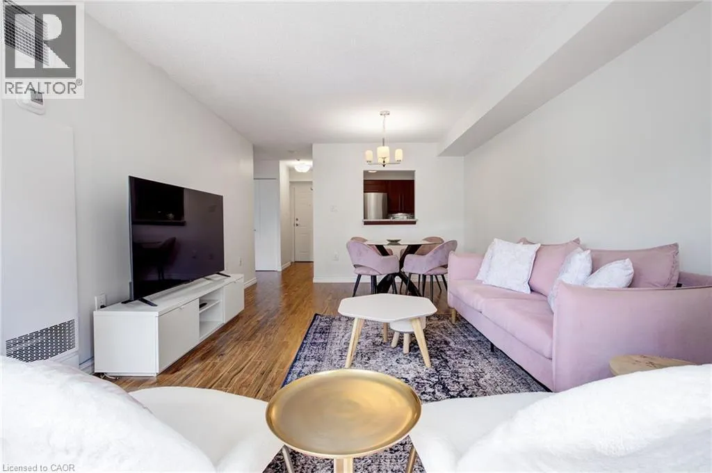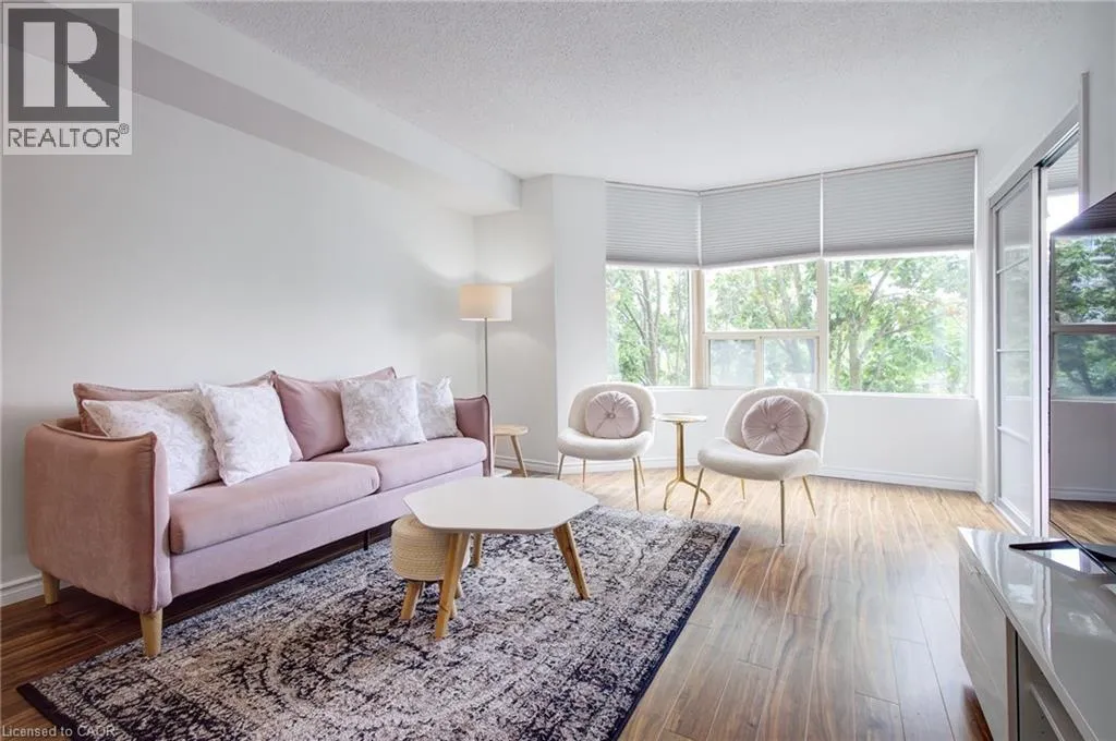 Maple Ave./Maple Crossing The Palace in Downtown Burlington-Gated Condo Complex with 24/ 7 Concierge & Resort Style Amenities-Immaculate, Freshly Painted in Neutrals- Updated kitchen with stainless steel appliances- recently renovated 4 piece washroom- Open Concept Living Room & Dining Area- Bonus Bright den/ sunroom that's perfect for a home office. Floor to ceiling windows flood the space with natural light-in suite laundry with stackable front loaders- includes one parking spot and one locker- Exceptional building amenities offering 24 hr concierge, EV Charging Stations, outdoor pool, exercise room, Outdoor Community BBQs, squash & tennis courts, party room, workshop/ hobby room, tanning bed, sauna, gazebos and guest suites. You'll love the convenience of being walking distance to Spencer Smith Park, Burlington Beach, Joe Brant hospital, Downtown, restaurants, Mapleview Mall, the GO station, and more. Don't miss out on this incredible opportunity to live in the heart of it all! (id:27476)