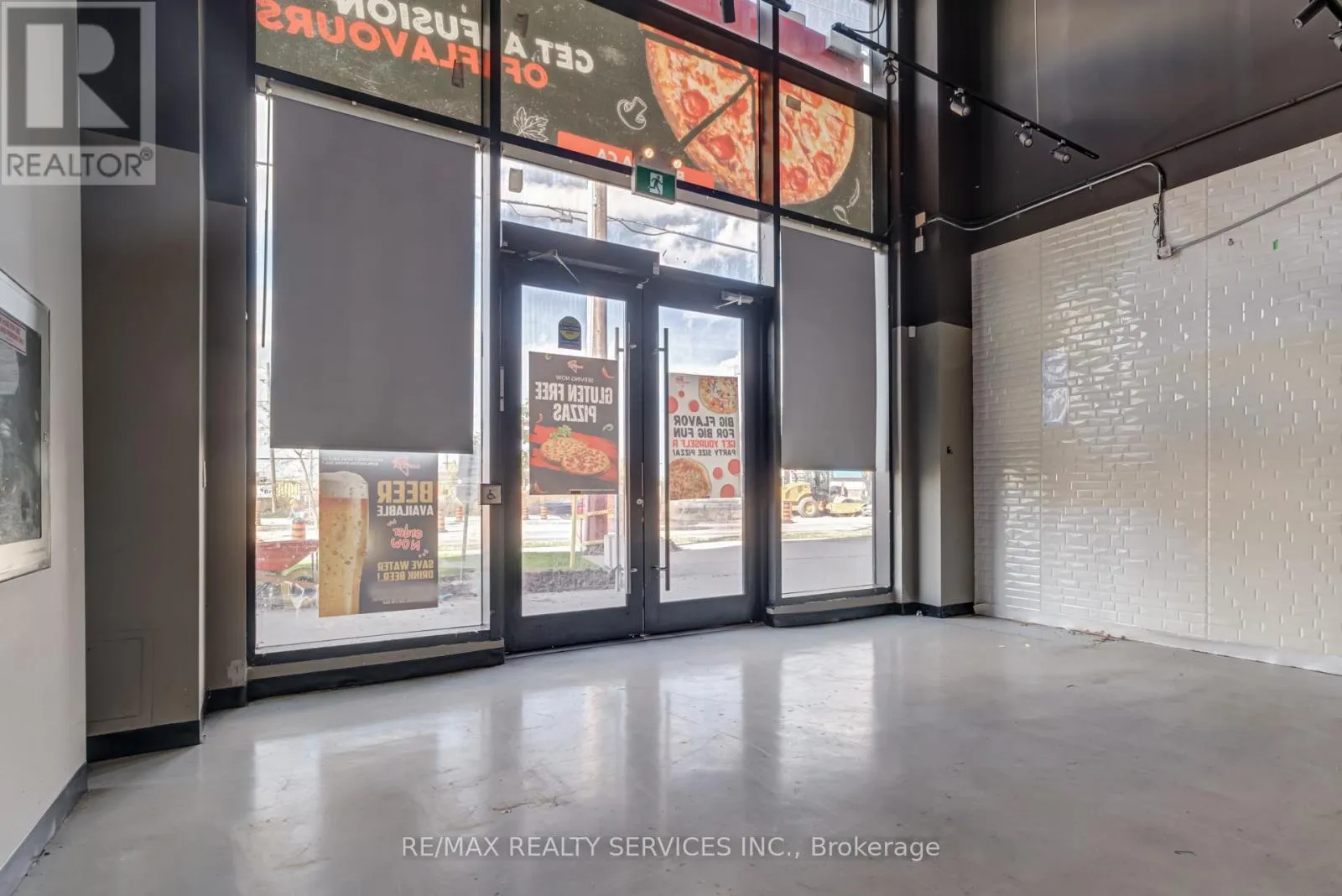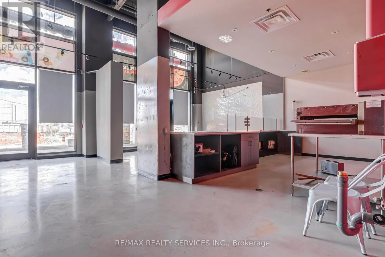 Dundas St & Sutton Dr Commercial / Retail unit available for lease with immediate occupancy. Prime location with maximum exposure on busy Dundas St in Burlington. Spacious shell unit with flexible layout potential. Newer construction, 20 clear height. Located under residential condo with approximately 300 residential condo units and 500+ residents. Ample parking (outdoor surface and underground) and great neighboring tenants. (id:27476)