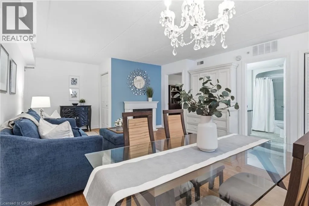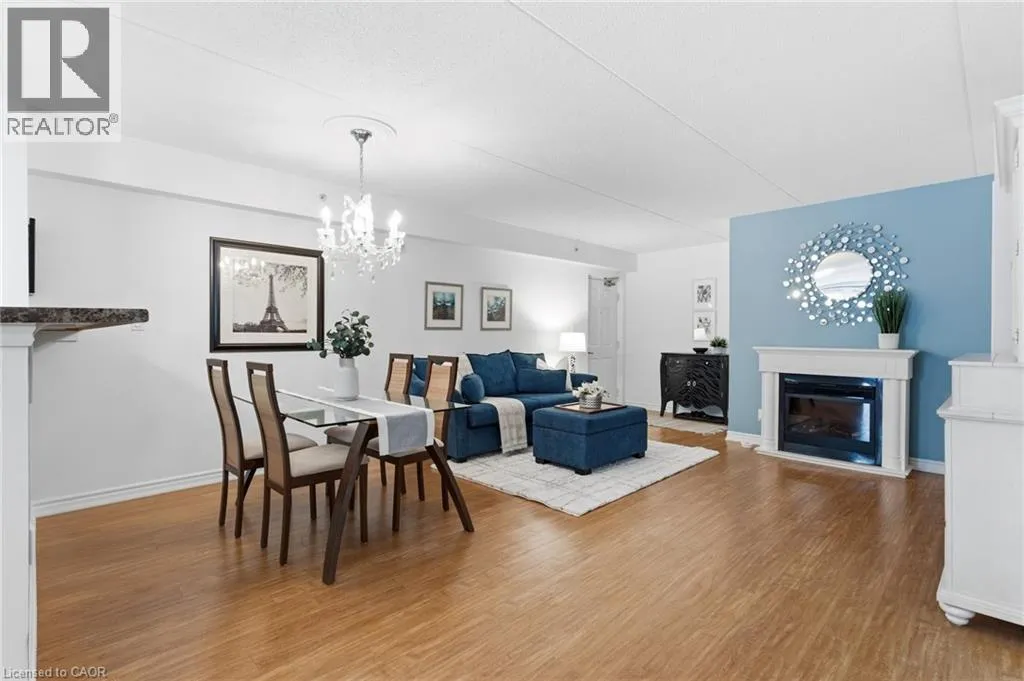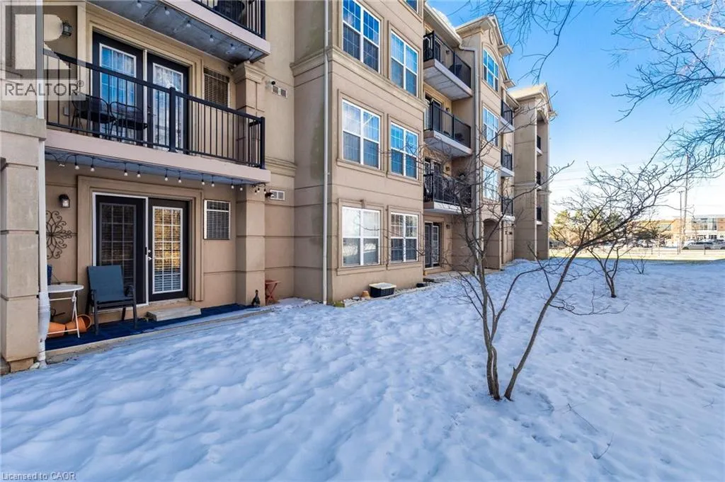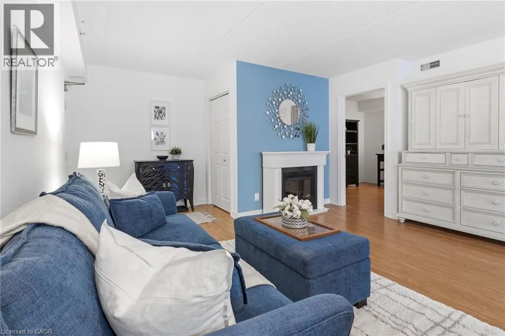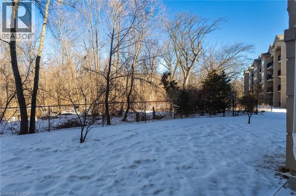 East off Appleby Line, North of Upper Middle Road Spacious one-bedroom plus den, Hampton Model, in the highly desirable Uptown Orchard Condominium, offering over 800 sq. ft. of thoughtfully designed living space. This ground-floor suite features a walkout to a private patio backing onto a protected, treed ravine, the perfect setting for peaceful morning coffee or evening relaxation. Open-concept living and dining area, is complete with an electric fireplace, and flows seamlessly into the bright eat-in kitchen featuring ample cabinetry and generous counter space. The primary bedroom includes a double closet and a charming alcove ideal for enjoying the ravine views. The versatile den, complete with a walk-in closet, is ideal for a home office or guest bedroom. A four-piece bathroom conveniently incorporates an in-suite laundry. This suite includes one underground parking space and a storage locker. The clubhouse, just steps from your door, offers exceptional amenities including a gym, sauna, and party room with kitchen. Ample visitor parking is also available. Ideally located within walking distance to grocery stores, shops, restaurants, daycare, fitness centres, and public transit. Situated in North Burlingtonâs Orchard community, with easy access to the GO Station, QEW, 407, and Bronte Park. Urban convenience meets tranquil ravine living. (id:27476)