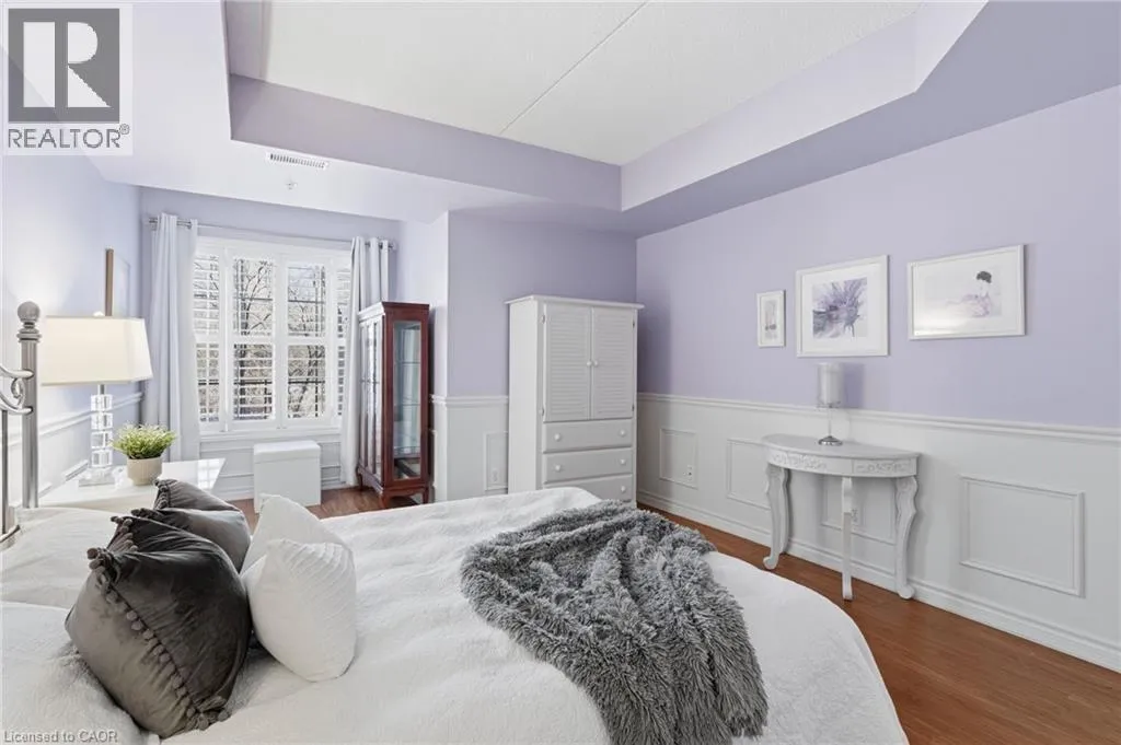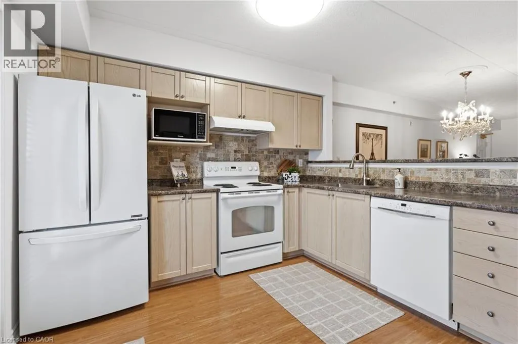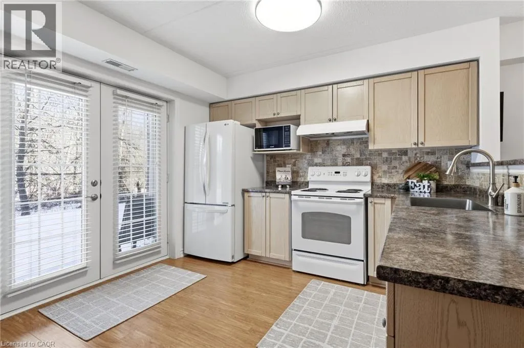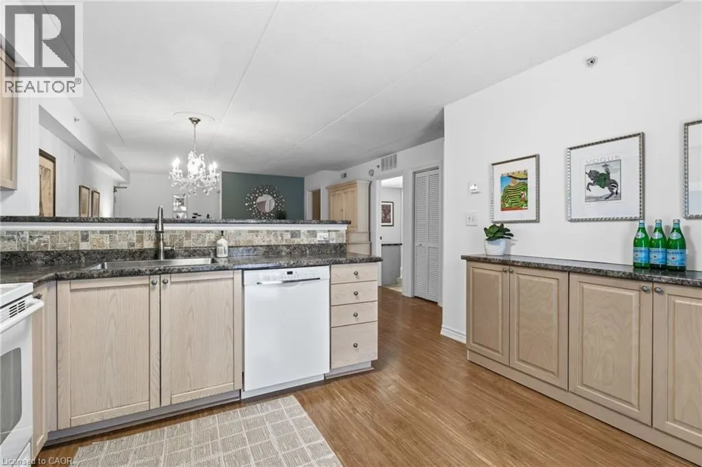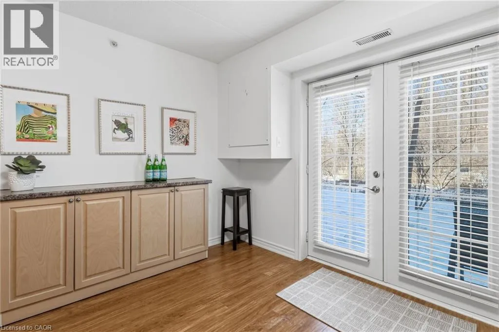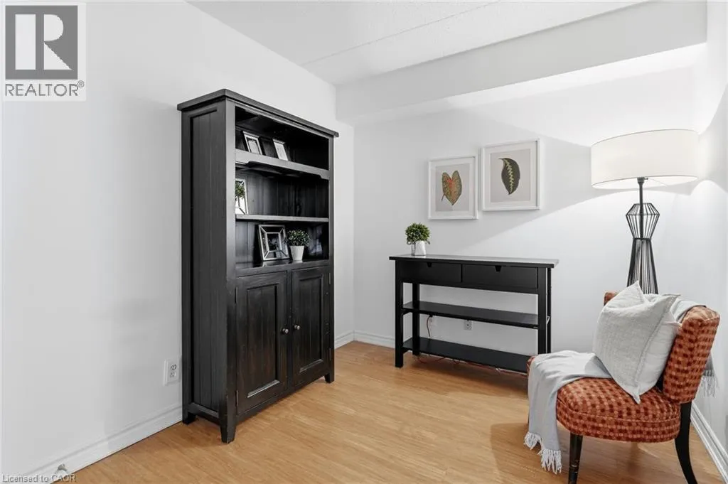 East off Appleby Line, North of Upper Middle Road Spacious one-bedroom plus den, Hampton Model, in the highly desirable Uptown Orchard Condominium, offering over 800 sq. ft. of thoughtfully designed living space. This ground-floor suite features a walkout to a private patio backing onto a protected, treed ravine, the perfect setting for peaceful morning coffee or evening relaxation. Open-concept living and dining area, is complete with an electric fireplace, and flows seamlessly into the bright eat-in kitchen featuring ample cabinetry and generous counter space. The primary bedroom includes a double closet and a charming alcove ideal for enjoying the ravine views. The versatile den, complete with a walk-in closet, is ideal for a home office or guest bedroom. A four-piece bathroom conveniently incorporates an in-suite laundry. This suite includes one underground parking space and a storage locker. The clubhouse, just steps from your door, offers exceptional amenities including a gym, sauna, and party room with kitchen. Ample visitor parking is also available. Ideally located within walking distance to grocery stores, shops, restaurants, daycare, fitness centres, and public transit. Situated in North Burlingtonâs Orchard community, with easy access to the GO Station, QEW, 407, and Bronte Park. Urban convenience meets tranquil ravine living. (id:27476)