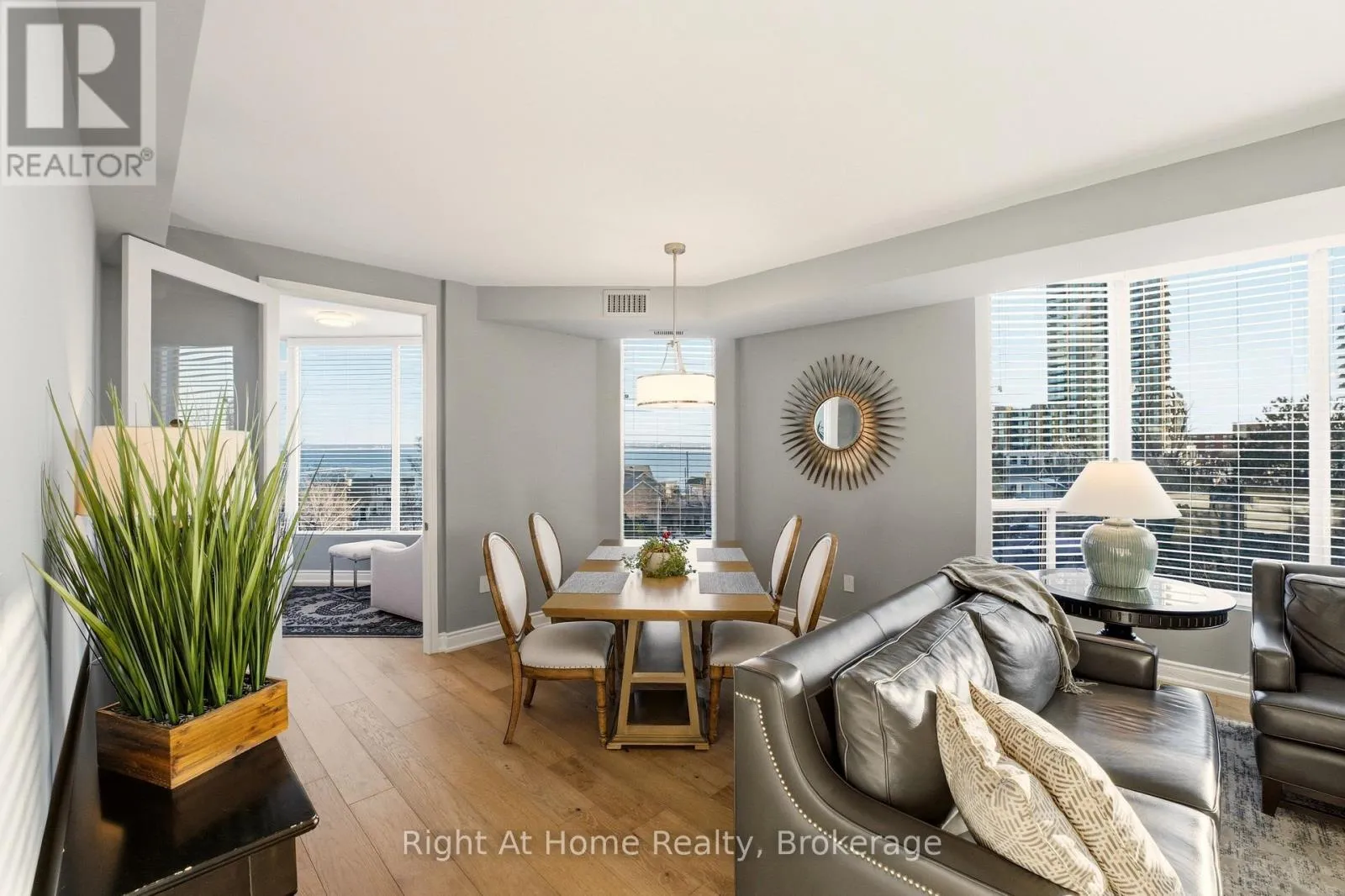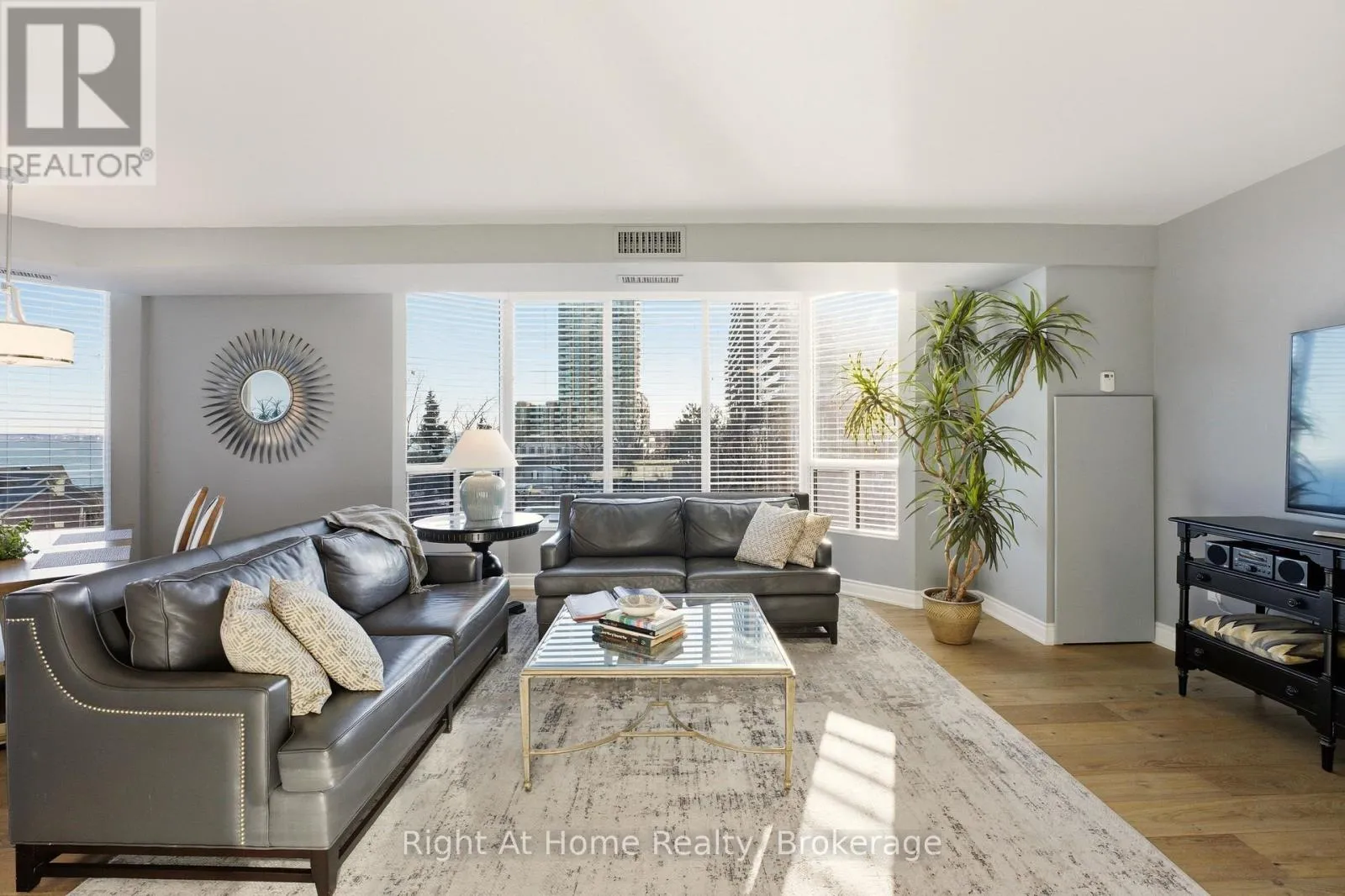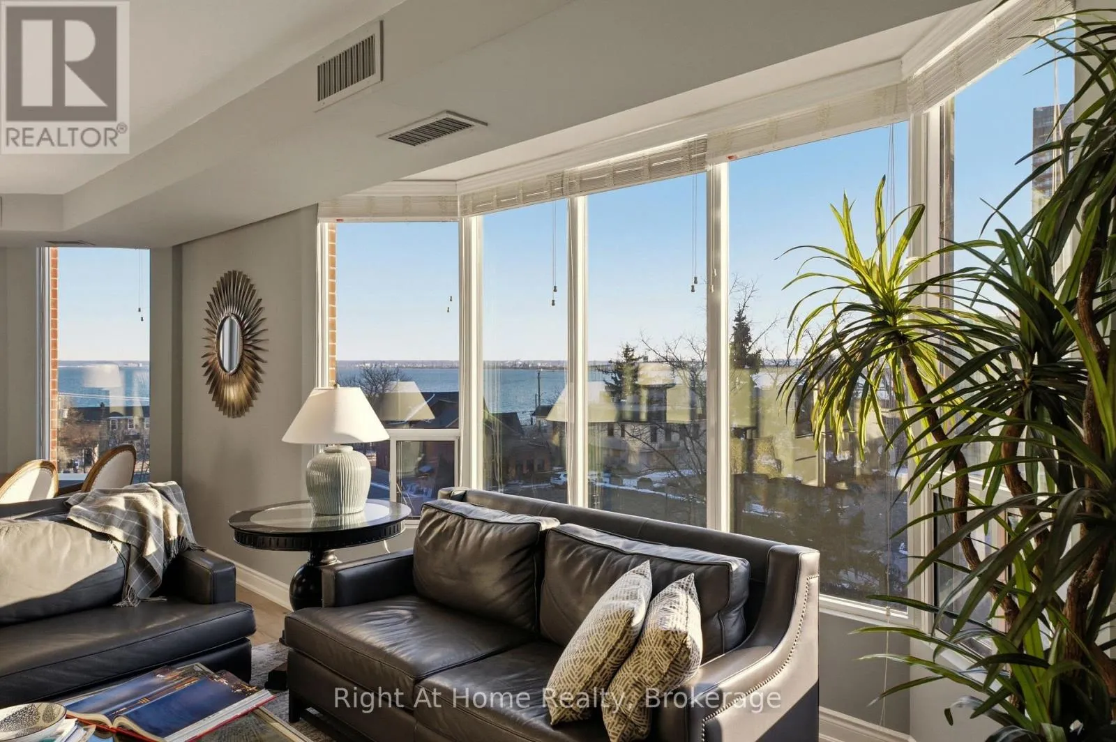 Cross Streets: Lakeshore & Brant. ** Directions: Brant - South, East on Lakeshore. SW Corner Suite at 2121 Lakeshore Road - Burlington. Elevated, Serene, Turn-Key Living - Unit 603 delivers the perfect balance of sophistication, comfort, and location, with beautiful lake and city views as your everyday backdrop. Welcome to Unit 603 a beautifully renovated southwest corner suite in the heart of Burlington - offering lake and city views, abundant natural light, and refined finishes throughout. Elegant & Functional Living Spaces The open-concept Living & Dining Room creates a seamless flow - ideal for entertaining or quiet evenings at home. A separate Den offers a tranquil retreat to relax while enjoying the views. The Custom Kitchen features: - White cabinetry, Quartz countertops, Breakfast bar, Glass tile backsplash, LED pot lights, Stainless steel appliances, Private Bedroom Wing - with a charming hall library that leads to the private quarters. Principal Bedroom Retreat - with a Cozy sitting area framed by a bay window, Custom walk-in closet. Spa-inspired 3-piece ensuite with Quartz vanity, Step-in shower, Heated tile floors & a Linen Closet. Guests will enjoy the spacious 2nd bedroom with a beautiful bay window offering southwest views. The main bath mirrors the upscale finishes of the ensuite, complete with heated floors, quartz counters, and a step-in shower. Highlights of Unit 603: 2 Bedrooms + Den. Soaring 9-foot ceilings, Engineered hardwood flooring, Custom blinds, Tall Interior Doors & Trim, Custom Closets, Linen closets. In-suite laundry. 2 Parking Spaces + Locker. Building Features, Two elevators, Secure FOB lobby access, Visitor parking, Well-maintained building and landscaped grounds. Unbeatable Location - Just steps to everything downtown Burlington has to offer: boutique shopping, cafés & restaurants, Burlington's Performing Arts Centre and Art Gallery, Waterfront Trail, Library, Seniors' Centre, Golf, recreation, transit, hospital and morel. Easy access to major highways. Elevated, Serene, Turn-Key Living. Welcome Home! (id:27476)