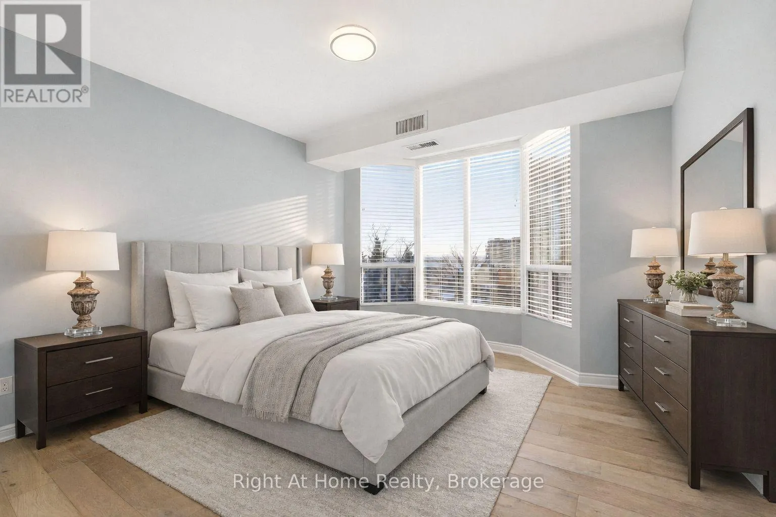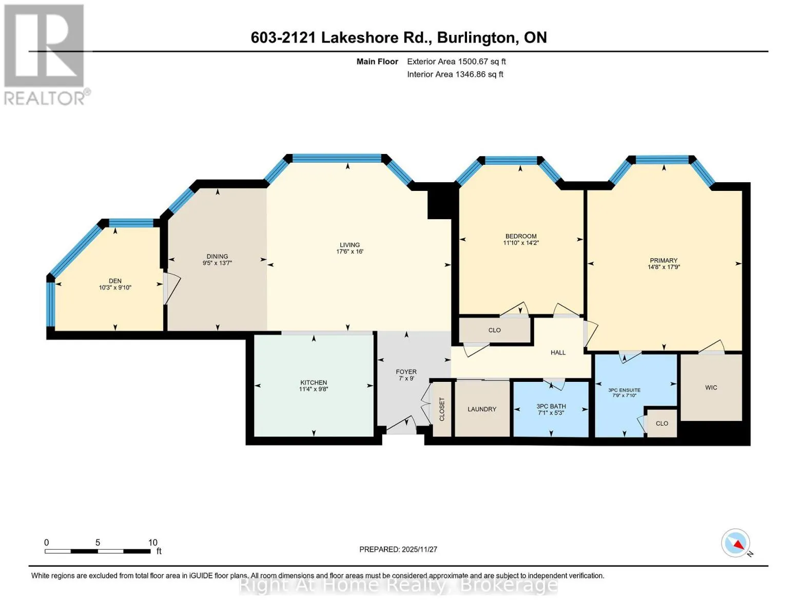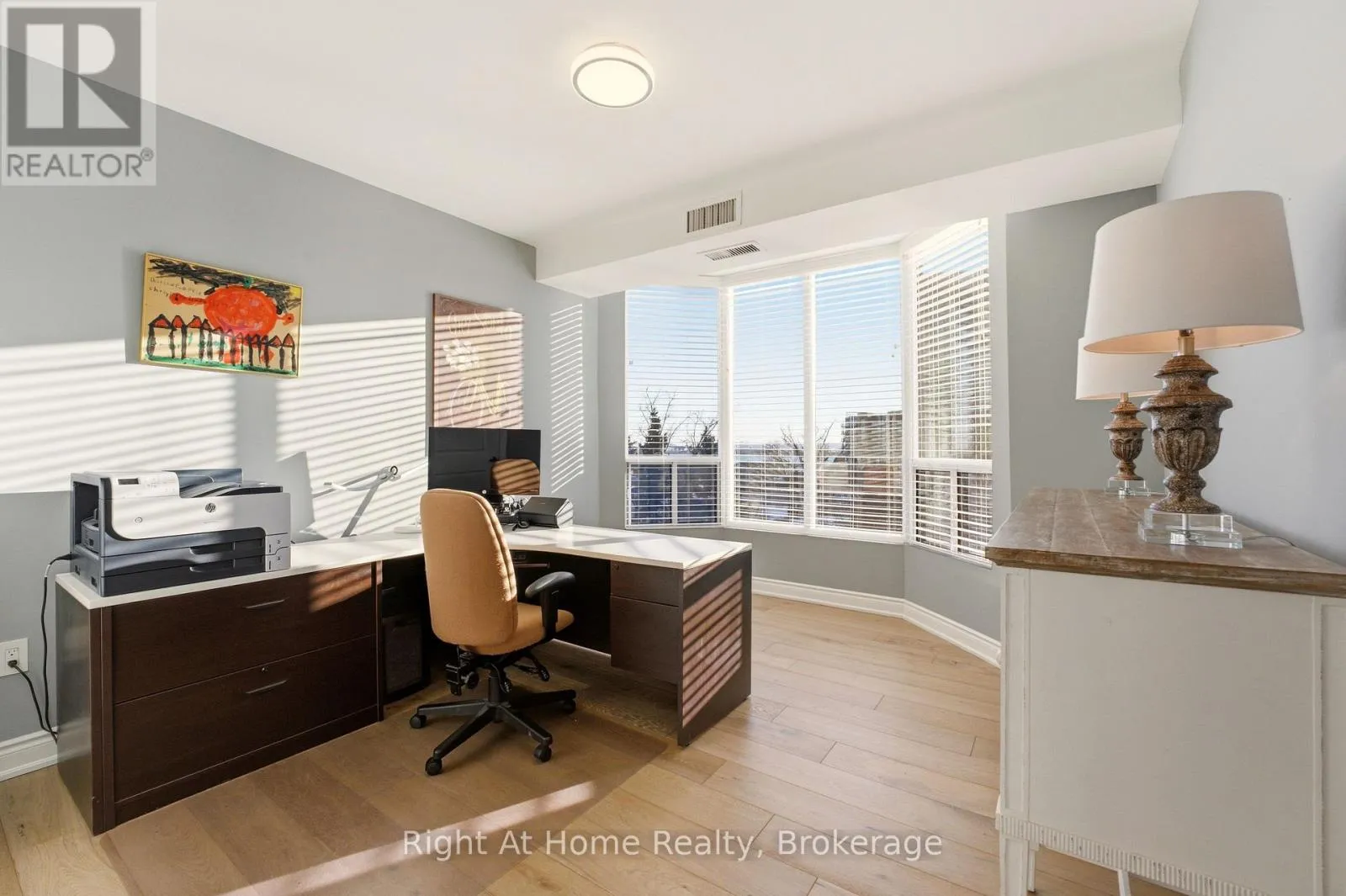 Cross Streets: Lakeshore & Brant. ** Directions: Brant - South, East on Lakeshore. SW Corner Suite at 2121 Lakeshore Road - Burlington. Elevated, Serene, Turn-Key Living - Unit 603 delivers the perfect balance of sophistication, comfort, and location, with beautiful lake and city views as your everyday backdrop. Welcome to Unit 603 a beautifully renovated southwest corner suite in the heart of Burlington - offering lake and city views, abundant natural light, and refined finishes throughout. Elegant & Functional Living Spaces The open-concept Living & Dining Room creates a seamless flow - ideal for entertaining or quiet evenings at home. A separate Den offers a tranquil retreat to relax while enjoying the views. The Custom Kitchen features: - White cabinetry, Quartz countertops, Breakfast bar, Glass tile backsplash, LED pot lights, Stainless steel appliances, Private Bedroom Wing - with a charming hall library that leads to the private quarters. Principal Bedroom Retreat - with a Cozy sitting area framed by a bay window, Custom walk-in closet. Spa-inspired 3-piece ensuite with Quartz vanity, Step-in shower, Heated tile floors & a Linen Closet. Guests will enjoy the spacious 2nd bedroom with a beautiful bay window offering southwest views. The main bath mirrors the upscale finishes of the ensuite, complete with heated floors, quartz counters, and a step-in shower. Highlights of Unit 603: 2 Bedrooms + Den. Soaring 9-foot ceilings, Engineered hardwood flooring, Custom blinds, Tall Interior Doors & Trim, Custom Closets, Linen closets. In-suite laundry. 2 Parking Spaces + Locker. Building Features, Two elevators, Secure FOB lobby access, Visitor parking, Well-maintained building and landscaped grounds. Unbeatable Location - Just steps to everything downtown Burlington has to offer: boutique shopping, cafés & restaurants, Burlington's Performing Arts Centre and Art Gallery, Waterfront Trail, Library, Seniors' Centre, Golf, recreation, transit, hospital and morel. Easy access to major highways. Elevated, Serene, Turn-Key Living. Welcome Home! (id:27476)