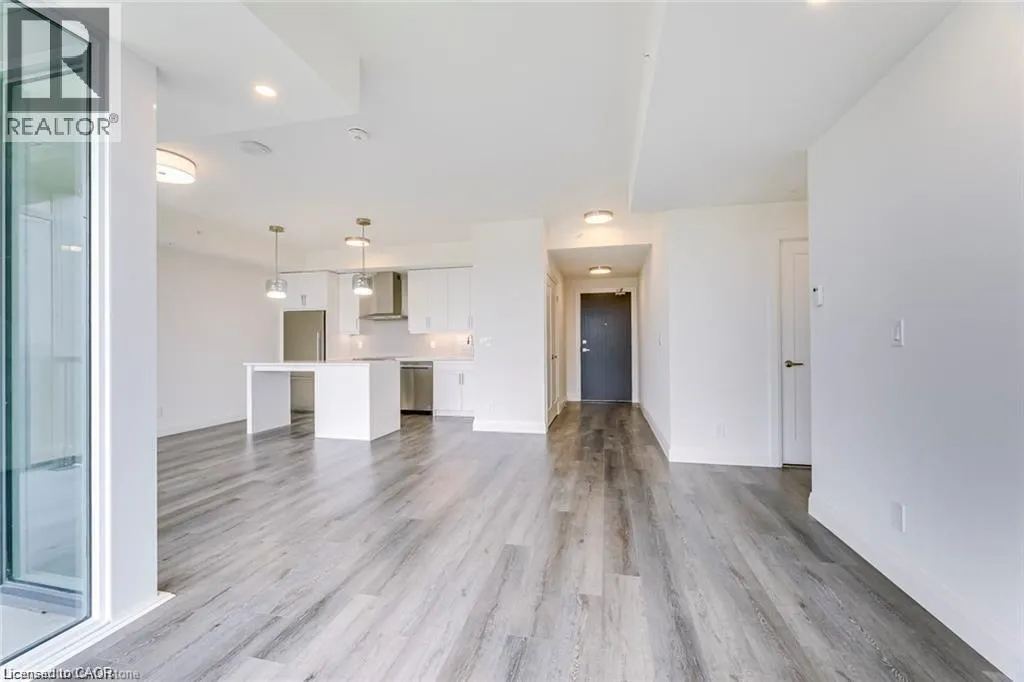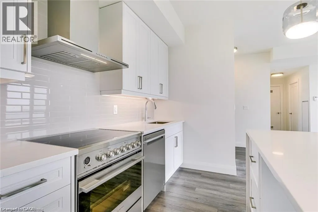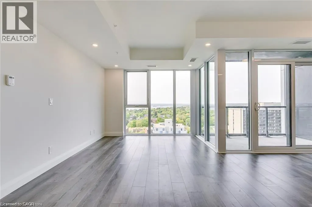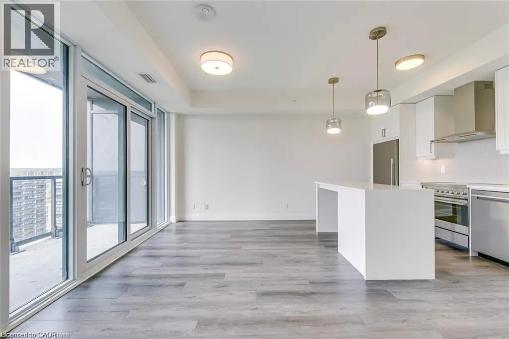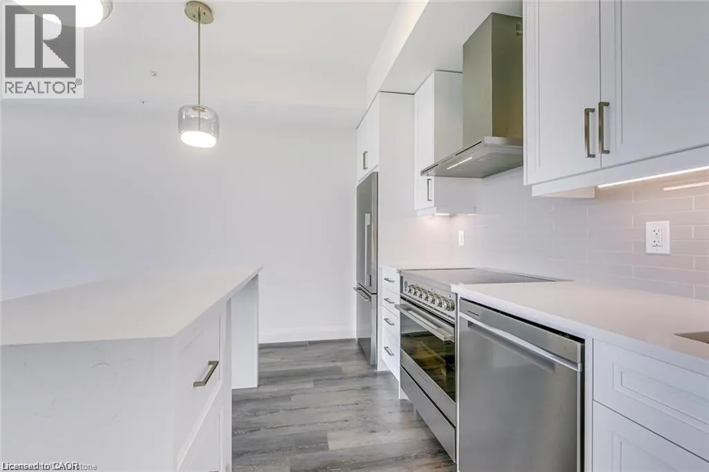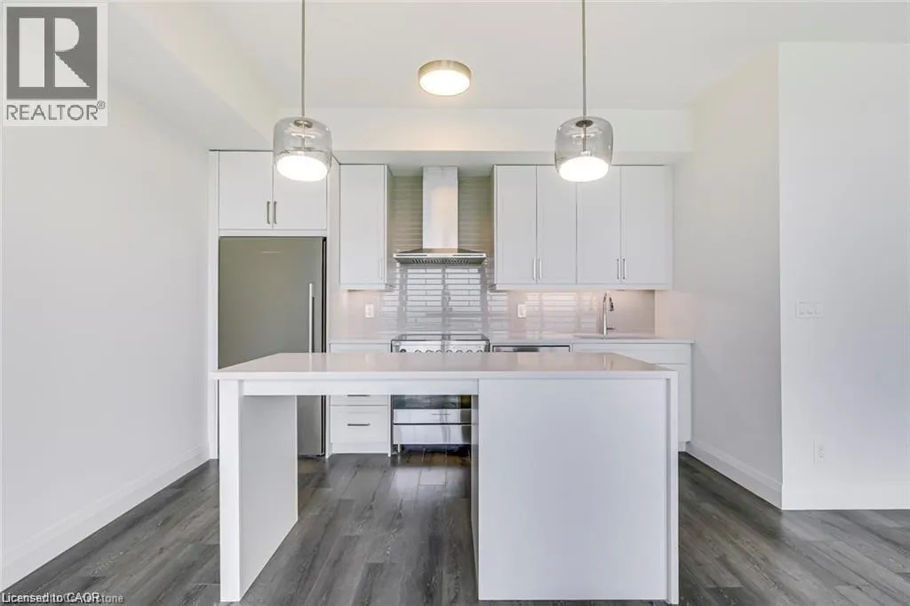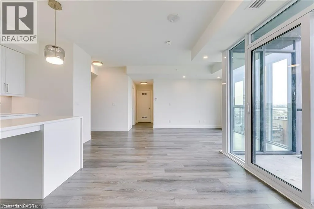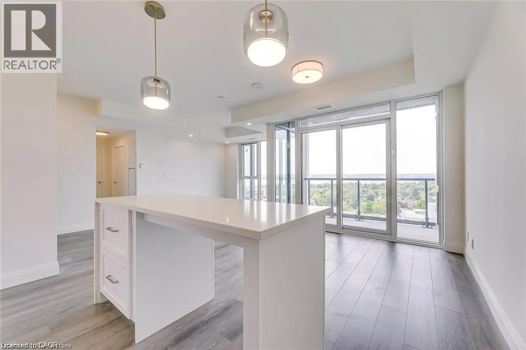 Brock Ave and Ontario Street Rare Opportunity To Live In This new South West Facing One Bedroom + Den Luxury Illumina Condominium In Downtown Burlington, With a Breath-Taking Panoramic View of Lake Ontario From Every Corner of the Unit. Enjoy Living in This Building With Its Cool and Ultra Modern Vibe Just a Stone Away from the Waterfront, Hospital, Restaurants and Everything Downtown Burlington Offers. This 770 sf ft Unit Features Open Concept Kitchen, Dining and Living Space, High Quality Wide Plank Hard Surface Floor. The Kitchen Boasts Fisher Paykel Appliances, White Quartz Waterfall Central Island, Modern White Cabinetry, And Beautiful Extended Subway Tile Backsplash. The Spacious Bedroom Has Two Large Built In Wardrobes, Floor to Ceiling Windows and Access to The Balcony. Second South West Facing Balcony is Next To Living/Dining Space. 1 Underground Parking and 1 Locker Are Included. Building Amenities Include Roof Top Sky Deck And BBQ Area, Party Room, Fitness Centre, Two guest Suites, And 24 Hour Security. A Block Away From The Waterfront, Restaurants, and Downtown Action. Minutes Driving To QEW Highway and Mapleview Shopping Mall. Available May 1, 2026. (id:27476)