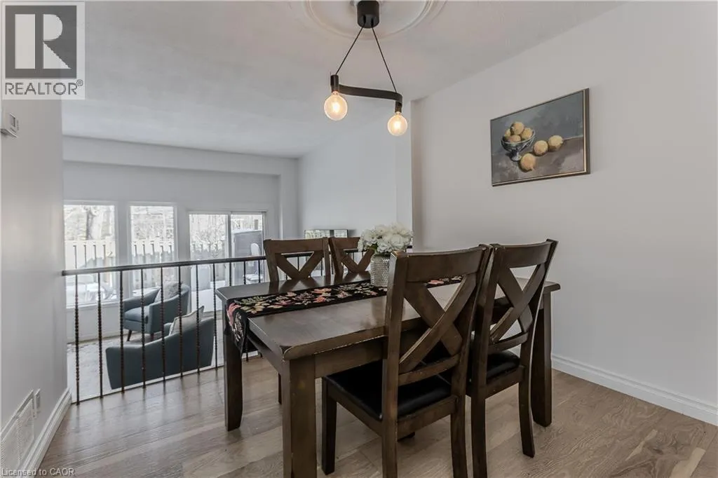 Brant Street and Upper Middle Road Welcome to this beautifully maintained family home set on a private ravine lot in one of Burlingtonâs most sought-after communities. Offering 1,523 sq ft of thoughtfully designed living space, this home is perfectly positioned within walking distance to schools, a shopping plaza, Brant Hills Community Centre, and the indoor pool. Families will especially appreciate being near one of Burlingtonâs most renowned schools, Paul A. Fisher. With quick access to Highways 403 and 407 and just a 10-minute drive to downtown Burlington, Mapleview, and Burlington Centre, convenience truly meets lifestyle here. The front exterior welcomes you with charming gardens, a private walkway, plus two dedicated parking spaces. Inside, youâll find a bright and inviting main level with a functional flow and hardwood flooring throughout. The updated kitchen features subway tile backsplash, quartz countertops, stainless steel appliances, and a sleek range hoodâperfect for everyday family meals and entertaining alike. The dining room overlooks the sunken living room, where wall-to-wall windows fill the space with natural light and a walkout leads directly to the backyard. A convenient 2-piece powder room completes the main floor. Upstairs, hardwood flooring continues throughout. The spacious primary bedroom offers ensuite privileges to the 4-piece main bath, while two additional bedrooms provide comfortable space for children, guests, or a home office. A sunken flex room (currently a playroom) in the basement adds extra versatility for families. Step outside to a fully fenced backyard designed for both relaxation and play. Enjoy the patio, lush gardens, and handy shedâall backing onto a beautiful ravine that offers privacy, tranquility, and a scenic natural backdrop year-round. This is an incredible opportunity to plant roots in a family-friendly neighbourhood surrounded by parks, top schools, and everyday amenitiesâwhere comfort, convenience, and nature come together seamlessly. (id:27476)