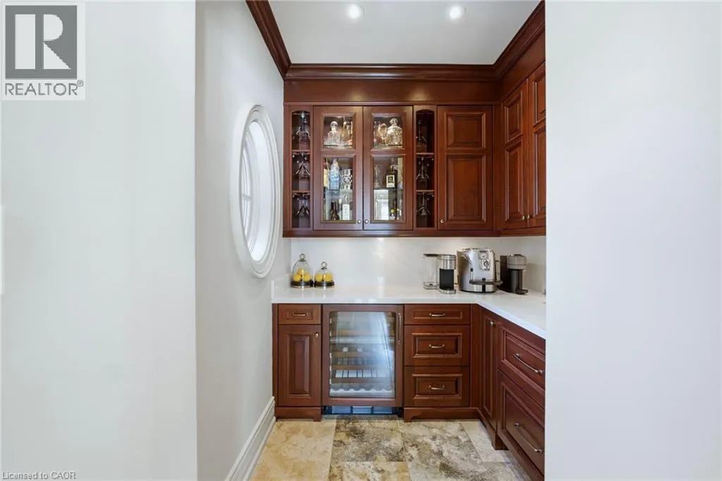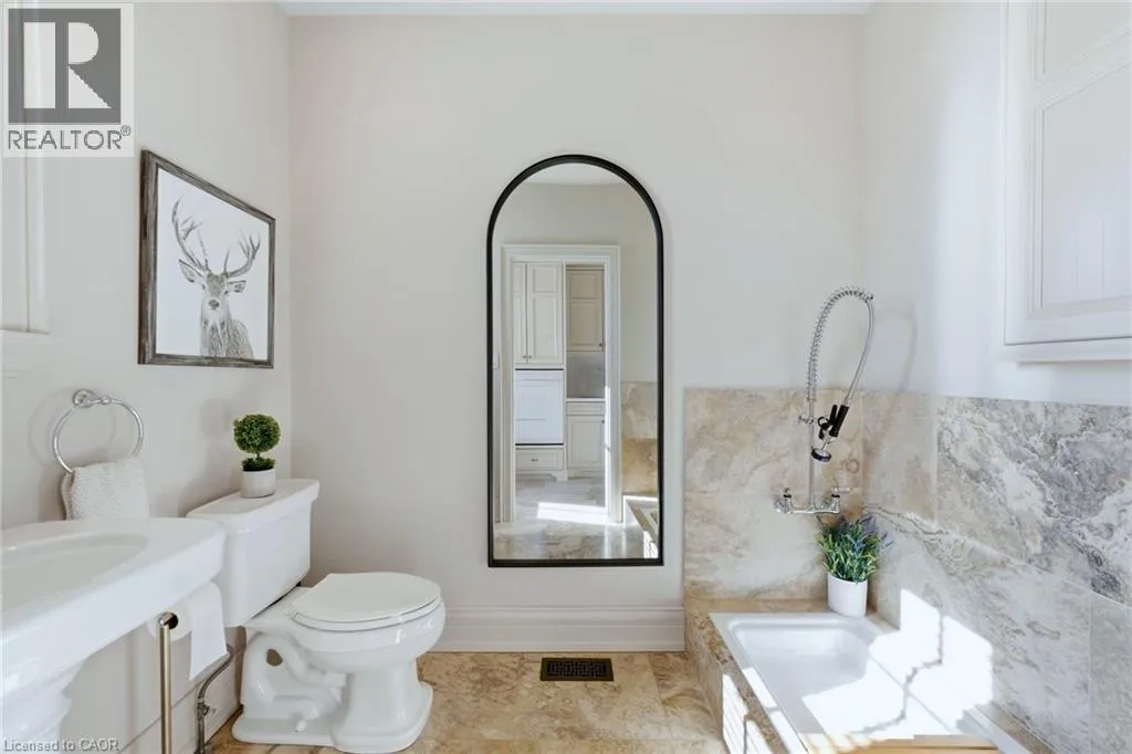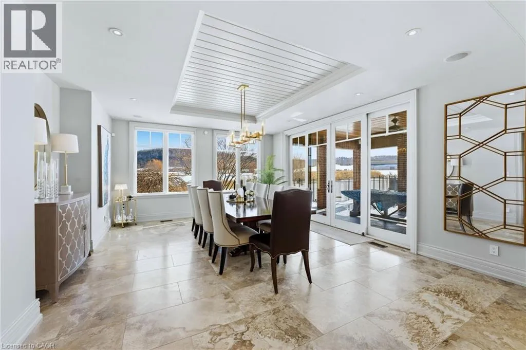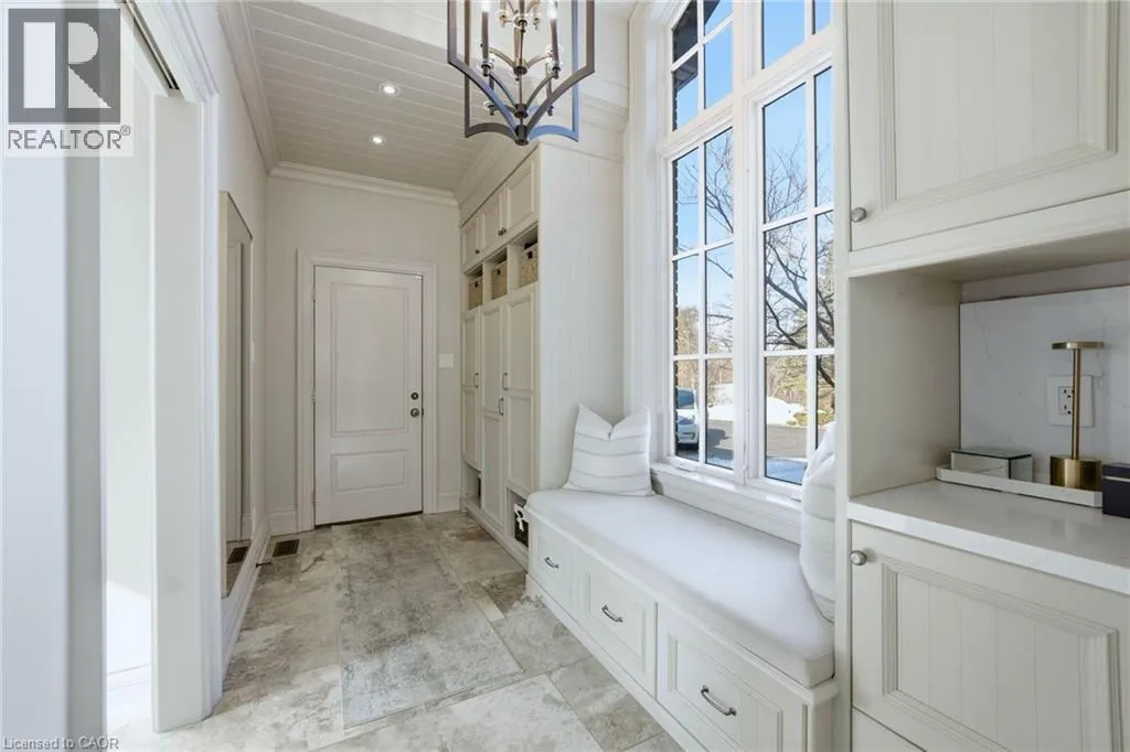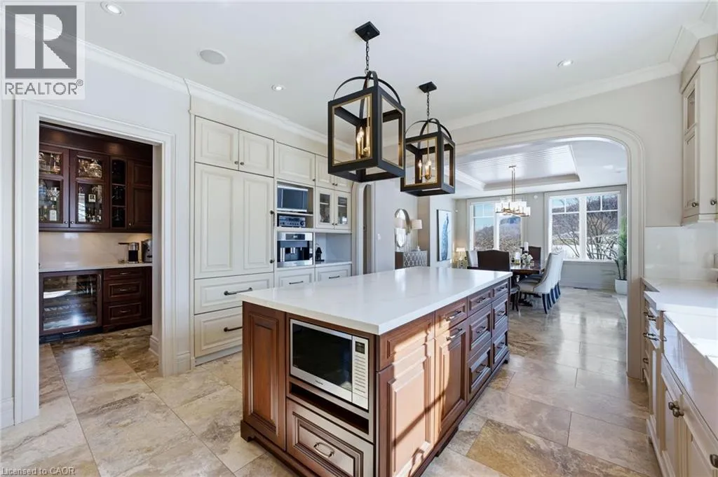 Walkers line to Britannia Road A rare opportunity to enjoy a private, cottage-like escape without ever leaving home. Set on manicured, meticulously maintained grounds, this property offers complete privacy and a serene atmosphere that feels worlds awayâyet remains minutes from top private and public schools, prestigious golf courses, parks, trails, and local farms. This beautifully designed custom two-storey home features over 5,800 sq. ft. of finished living space, crafted with exceptional attention to detail. The moment you enter, youâre greeted by designer finishes and architectural touches, including a sunken family room with wood-beamed ceilings and a striking Owen Sound stone wood-burning fireplace. With 5 bedrooms and 6 bathrooms, the home blends luxury living with true resort-style amenities. Itâs ideal for both intimate family living and large-scale entertaining, indoors and out. The backyard is a private oasis, perfect for hosting gatherings or enjoying peaceful summer days. A large covered porch overlooks the in-ground heated pool, hot tub, cabana, and fire pitâan inviting space for sunset views, roasting marshmallows, or unwinding in total seclusion. The fully finished lower level extends the homeâs entertainment and lifestyle appeal, offering a private gym, oversized bar, expansive media area with surround sound, wine room, dedicated office, and an additional bedroom with a 3-piece bathroom. This is more than a homeâitâs a sanctuary, a retreat, and a place to live, entertain, and escape in complete privacy. (id:27476)