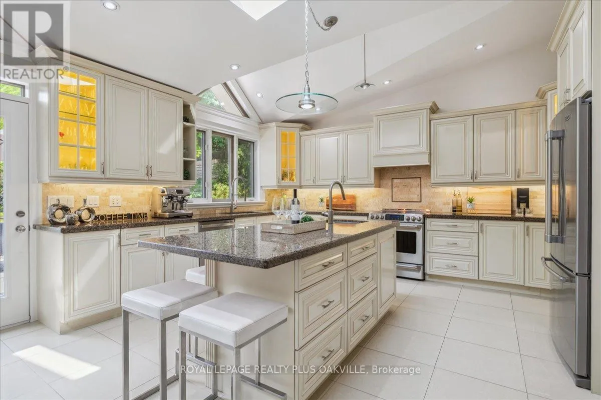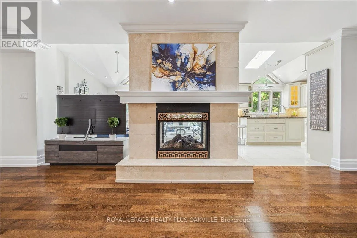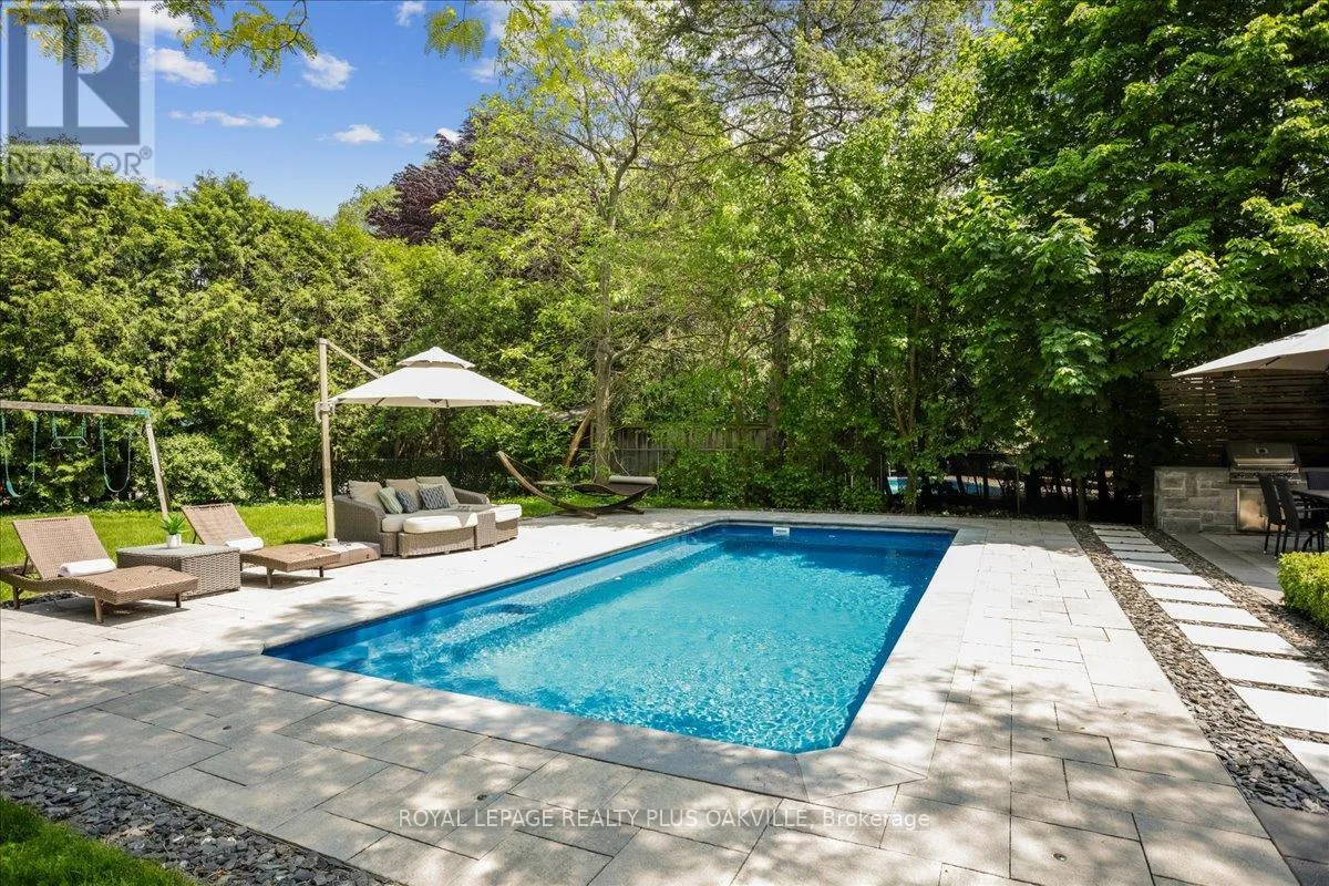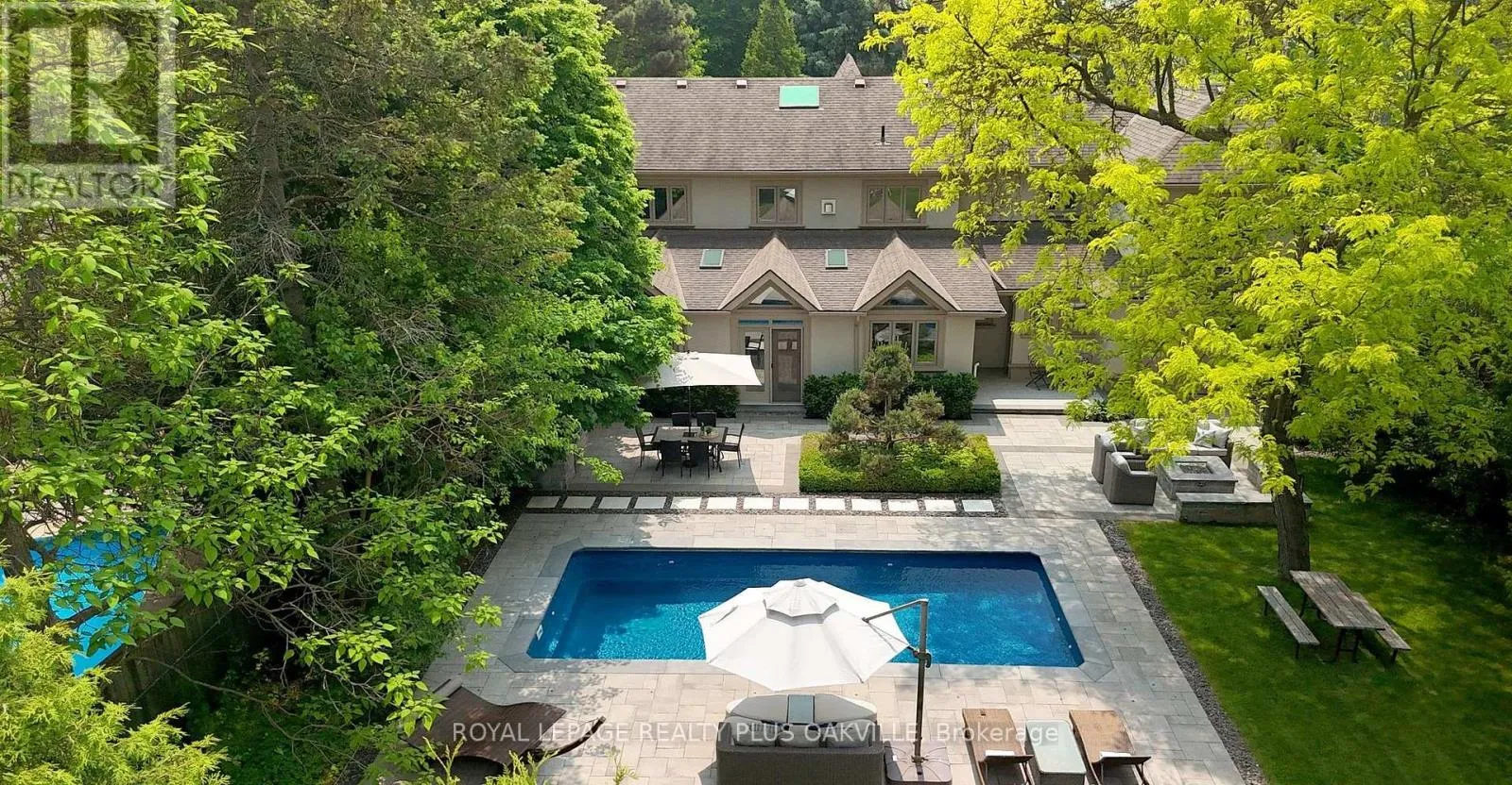 Cross Streets: North Shore Blvd E/King Rd. ** Directions: North Shore Blvd E to King Rd. Architecturally designed and beautifully crafted 4-bedroom, 5-bath builders own custom home in South Burlington offering over 3,740 sqft of luxurious living space on the above ground levels. Nestled in a mature treed setting on a rare 86' x 193' deep lot, this stunning property features an 8-car driveway with hammerhead parking, 3-car garage (with roll-up rear door for backyard access), and exceptional curb appeal. Inside, enjoy hardwood flooring, crown mouldings, and elegant formal living/dining rooms. The open-concept gourmet kitchen boasts granite counters, a large island, stainless steel appliances, pot lights, bright skylights and timeless finishes. The spacious family room is enhanced by vaulted ceilings and a double-sided stone fireplace, perfect for cozy evenings. A rare find, the main floor office with separate entrance offers great flexibility for professionals or multi-generational living. Upstairs, the impressive primary suite features vaulted ceilings, double walk-in closets, a luxurious 5-pc ensuite, and peek-a-boo lake views. Additional bedrooms are generously sized, with ensuite access and skylights providing abundant natural light. The fully finished lower level adds even more living space for recreation or home theatre. Outside, the extra-deep private backyard is an entertainer's dream, featuring a resort-style setting complete with an in-ground salt-water pool, lush landscaping, custom stone gas fire pit with built-in seating, custom stone gas bbq island with granite counter, and multiple seating areas, with separate access through a backyard mudroom with shower. With almost 5000 sqft of living space, there is plenty of room to enjoy this magnificent property! Located just minutes to downtown Burlington, waterfront, beaches, Burlington Golf & Country Club, LaSalle Park Marina, top-rated schools, hospital, parks, and highway access. A rare opportunity to own lakeside luxury in one of Burlington's most sought-after locations. (id:27476)