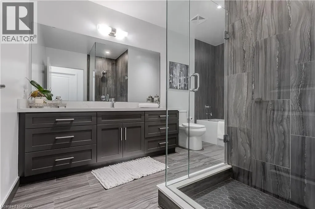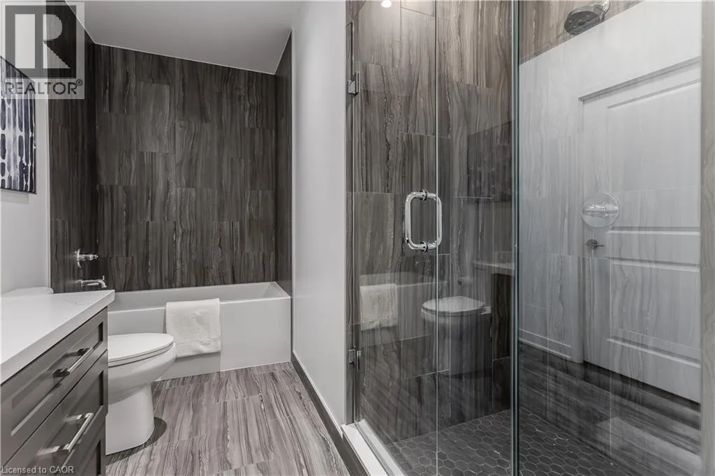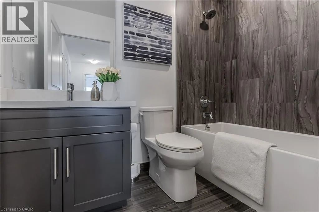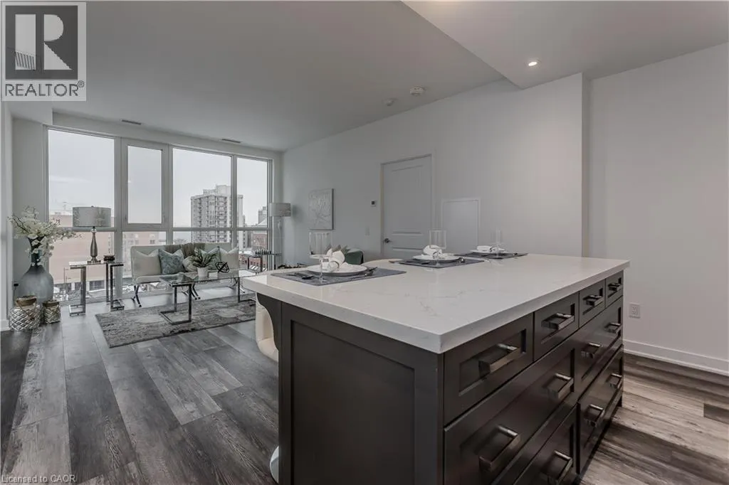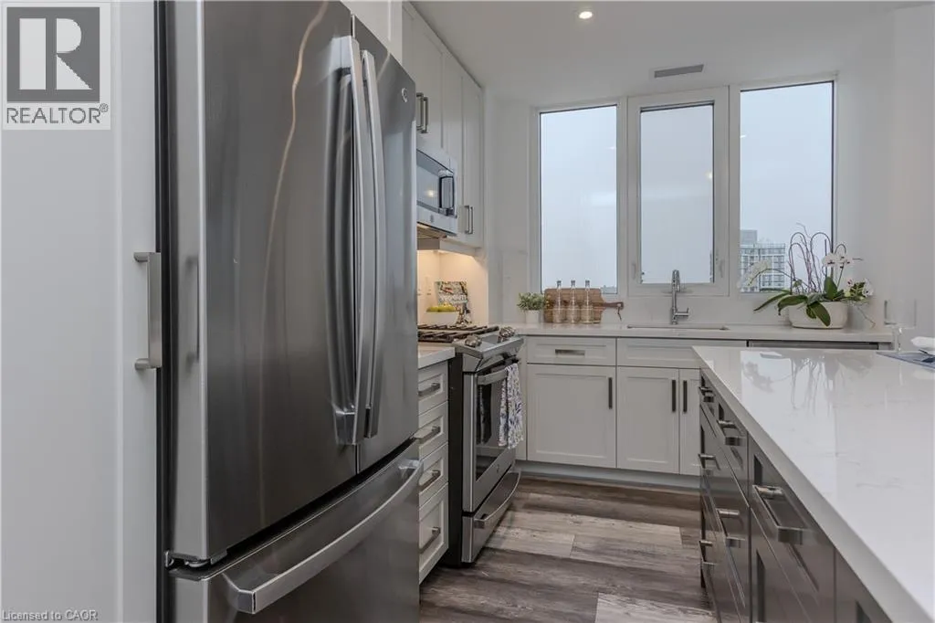 Brant St to James St Experience elevated condo living at Gallery Condos, located in the heart of Burlingtonâs vibrant downtown core, where luxury, lifestyle, and breathtaking lake views come together seamlessly. Spanning 1,064 sqft, this stunning residence offers panoramic waterfront vistas and a front-row seat to one of the cityâs most sought-after urban lifestylesâperfect for young professionals who want it all, just steps from their door. Inside, a modern and highly functional layout is flooded with natural light, complemented by upgraded wide-plank hardwood flooring throughout. The striking eat-in kitchen blends style and practicality with quartz countertops and backsplash, stainless steel appliances, deep pot-and-pan drawers, a pantry cabinet with efficient roll-out shelving, valance lighting, and a generous island with breakfast barâideal for hosting, working, or unwinding. Floor-to-ceiling windows in the spacious living area frame picturesque lake views and open to a private balcony with gas line for BBQ, creating an effortless indoor-outdoor connection. The primary suite is a true retreat, featuring floor-to-ceiling windows, a walk-in closet, and a spa-inspired ensuite with oversized vanity, deep soaker tub, and glass walk-in shower. A second bedroom with floor-to-ceiling windows offers flexibility for guests or a home office, complemented by a sleek four-piece main bath and convenient in-suite laundry. Parking and a storage locker are included. Residents enjoy an impressive collection of amenities including a contemporary lobby lounge, fully equipped fitness centre, co-working and meeting spaces, party and games rooms, media room, indoor lap pool, rooftop terrace with community BBQs, guest suites, concierge service, and a car wash. Set in an unbeatable lifestyle location, youâre steps from exceptional dining, cafés, entertainment, waterfront parks and trails, daily essentials, transit, and quick highway accessâurban living at its most refined. (id:27476)