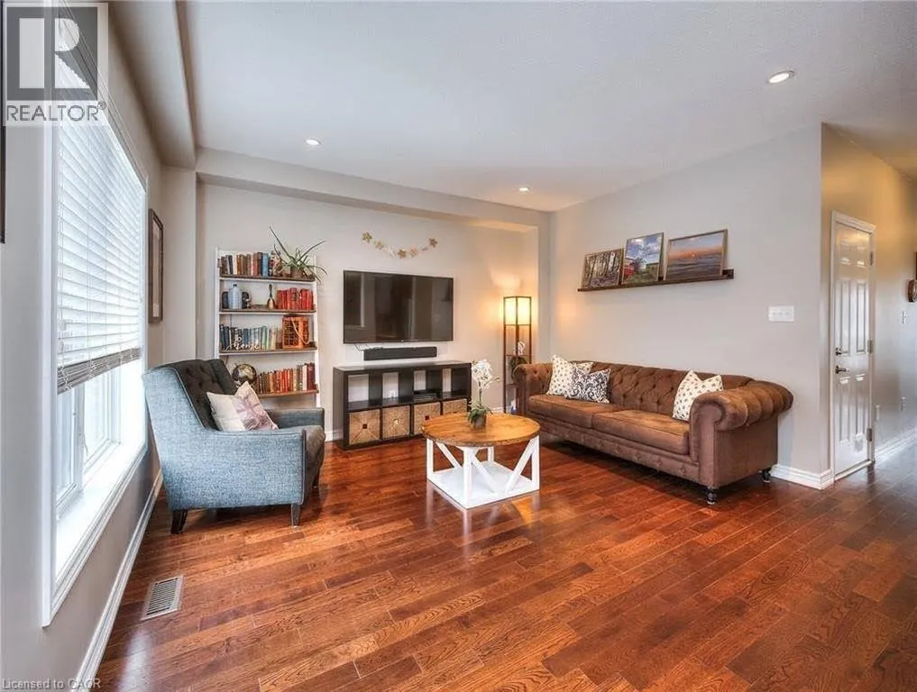 Dundas/Appleby/Thomas Alton Blvd This stunning Branthaven semi-detached home offers a premium lease opportunity in the heart of Burlington's highly sought-after Alton Village, providing approximately 1,650 sq. ft. of bright, functional, and completely carpet-free living space, plus a 732 sq. ft. finished basement. The open-concept main floor features 9-foot ceilings and rich dark hardwood flooring, while the modern kitchen, complete with a reverse osmosis drinking water system (under-sink) and recently replaced stove/range and microwave, walks out to an oversized deck and fully fenced backyard, perfect for entertaining and equipped with a gas grill.Additional conveniences include new vinyl flooring on the upper level, a water softener, Ring security system (access provided), central vacuum, and upstairs laundry. The basement includes one full washroom and a wet bar, which are also included as part of the lease.Ideally located for families and commuters, the property is just steps from top-rated schools including Alton Village Public School and Frank J. Hayden Secondary School, close to major shopping at Dundas Street and Walkers Line, and provides easy access to Highways 407 and QEW, making it perfect for those seeking a stylish, low-maintenance lifestyle in a vibrant, amenity-rich neighbourhood. **Please note: Images are virtually staged to showcase the home's full potential.** (id:27476)