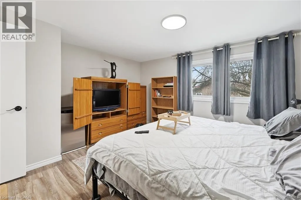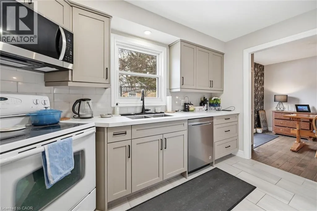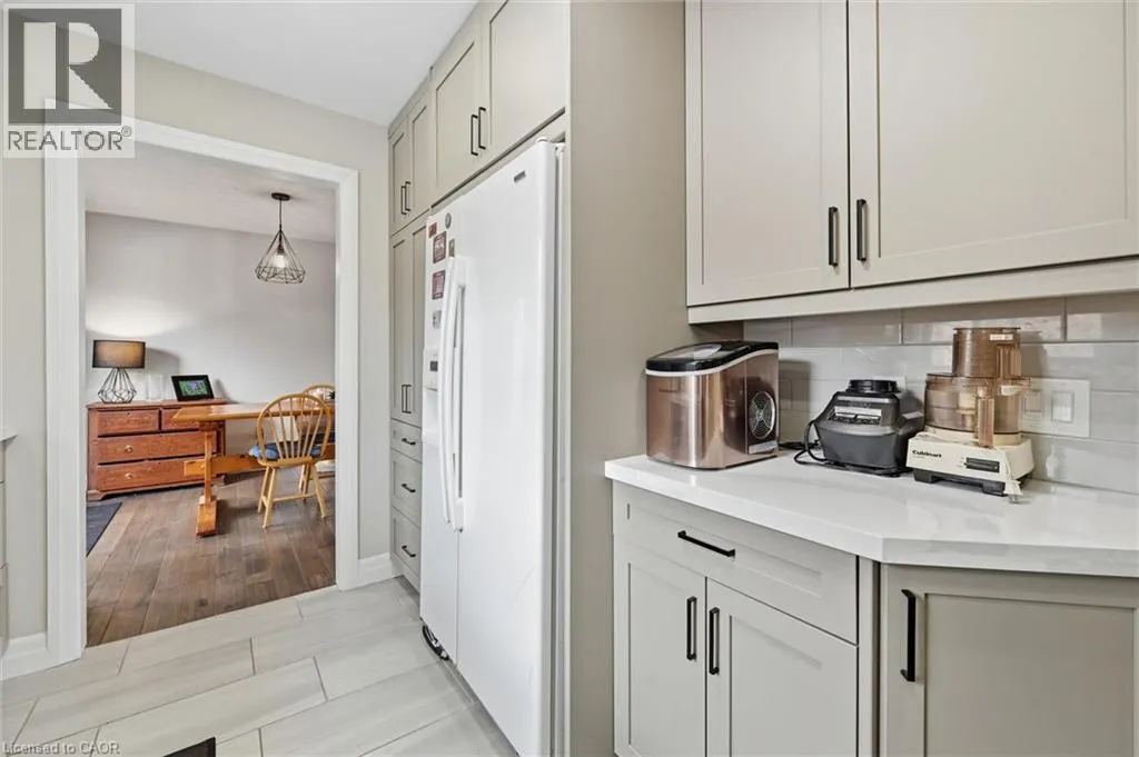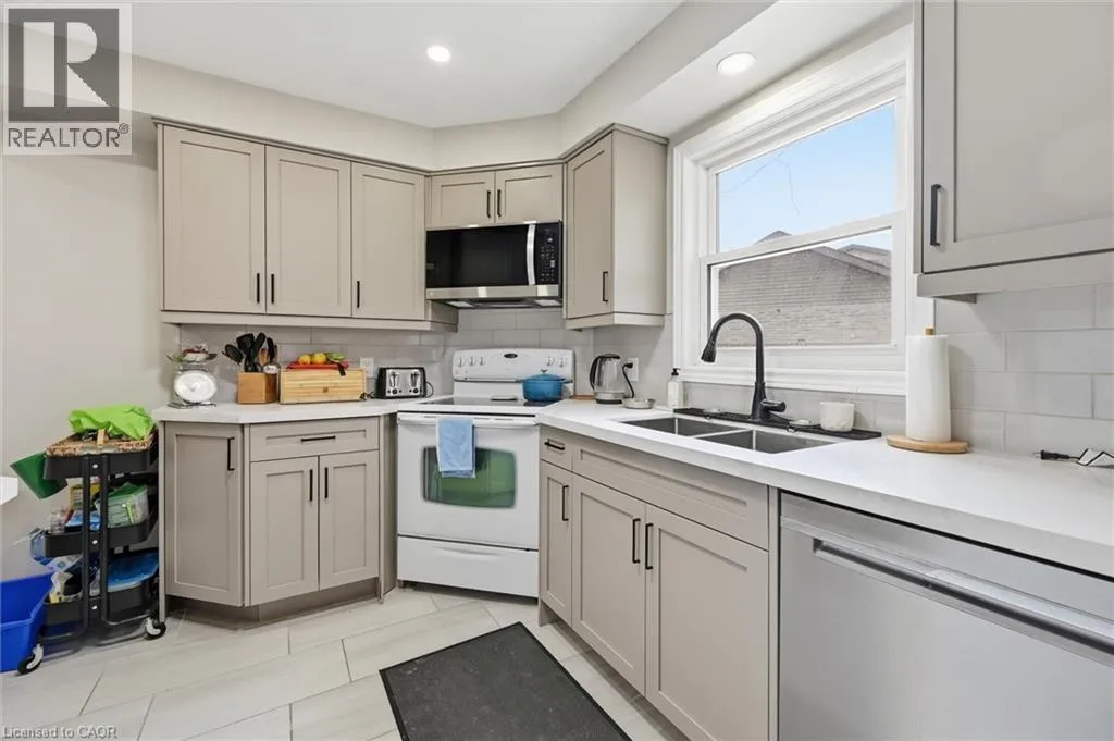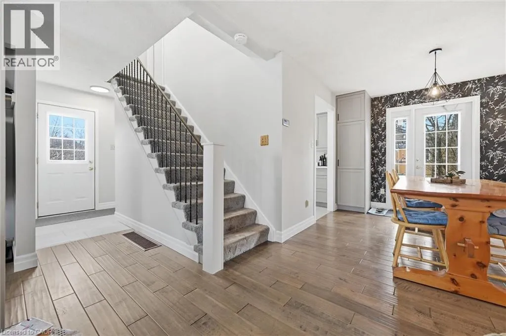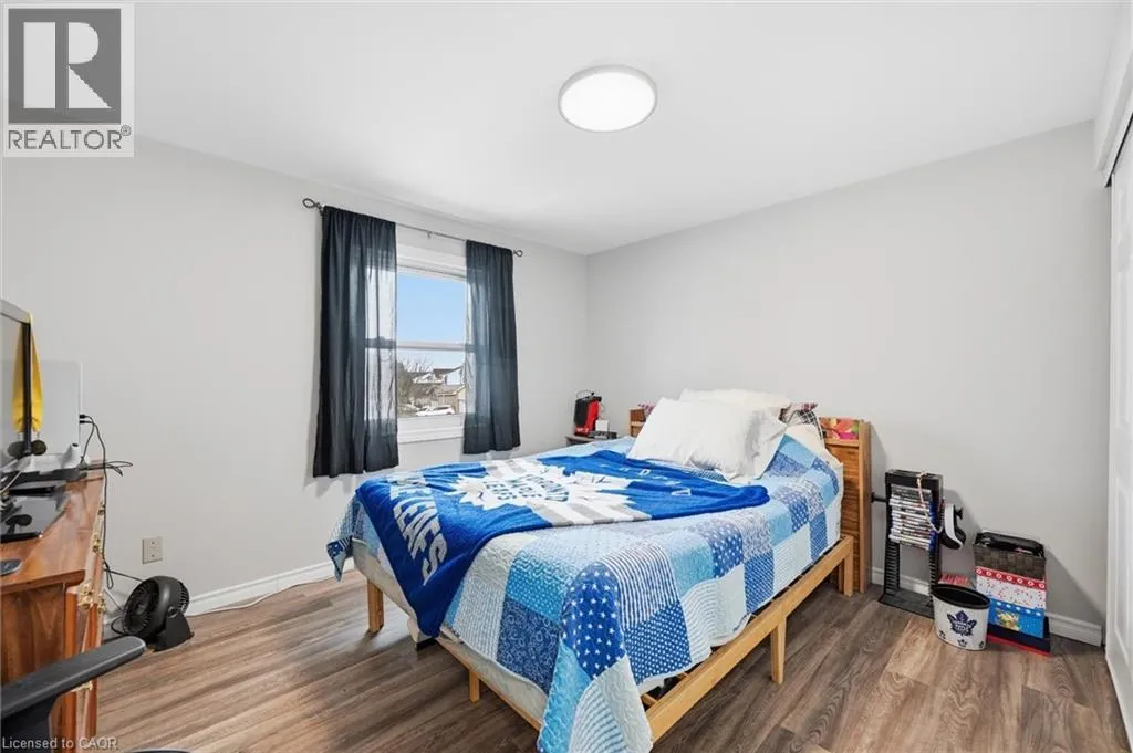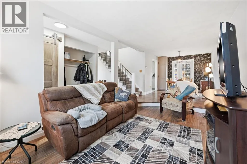Guelph Line - Coventry Way - Malcolm Cres Move-in ready and beautifully updated, this inviting family home sits on an extra-large lot in one of Burlingtonâs most sought-after neighbourhoods! The thoughtfully designed main floor is ideal for everyday living, featuring a custom kitchen (2023) with elegant quartz countertops, an undermount double sink, subway tile backsplash, and other contemporary finishes. Bright living and dining areas are enhanced by engineered hardwood flooring (2023), creating a warm and cohesive space. A French door walk-out to the deck for perfect seamless indoor-outdoor entertaining. An updated two-piece bathroom (2020) adds convenience, and a practical side entrance located near the bathroom and kitchen provides easy everyday access. The versatile main-floor den/bonus roomâcomplete with new vinyl plank flooring (2025)âis ideal as a home office, playroom, gym, or guest space. Upstairs, youâll find three comfortable bedrooms with good-sized closetsâall finished with vinyl plank flooring (2025), a hall linen closet for added storage, and a well-appointed four-piece family bathroom featuring a relaxing jetted tub/shower combination. The finished basement offers a cozy retreat with a welcoming rec room, Berber carpeting, and a charming wood-burning fireplace with a brick surround. A bathroom rough-in provides excellent potential for future expansion. Other updates include a new roof (2025), owned hot water tank, furnace and air conditioning, updated windows, and fresh paint in many roomsâcreating a bright, refreshed feel throughout. Outside, enjoy parking for two vehicles and a large, fully fenced backyard with up to eight hours of daily sunâideal for gardening, and the deck and gazebo create an extended outdoor space to relax or entertain. Perfectly located just steps from highly ranked Bruce T. Lindley School, a neighbourhood park and playground, public transit, grocery stores, and everyday amenities, this home truly checks all the boxes for comfortable, family-focused living. (id:27476)