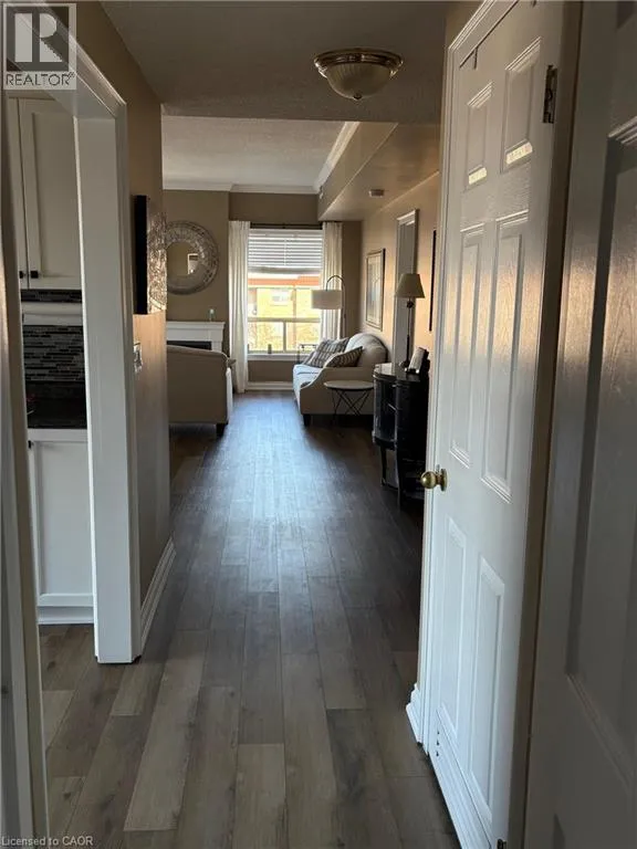 Just west of Walkers Line - Driveway off of Cleaver Ave One floor care free living in the beautiful very well maintained Chelsea building. Great split floor plan with 2 full baths, primary with separate tub & shower. Loads of windows in this corner suite with East and North facing windows. Balcony view looks at the escarpment and on the north quiet side of the building. Kitchen is nicely appointed with stainless appliances/built in microwave and new stylish sink and tap. There is a door to the balcony off the kitchen. New mechanics include AC & Furnace (2024). The main living area is open to the dining rom, great for entertaining many guests complete with easy laminate flooring. The windows are large flooding the room with natural light. There is a second door to the balcony from the dining area. The primary bedroom will certainly allow for large bedroom furniture complete with a large walk-in closet and private bath. The second bedroom currently being used as a den also has a large closet and is conveniently located beside the second 3 piece bath. Easy to lock off for a second semi private bath. Underground parking will be appreciated in the winter as well as a car wash. The Locker is on the same level as the Condo. Just steps to shopping, parks with easy access to the Highway. Truly a great place for your next home! (id:27476)