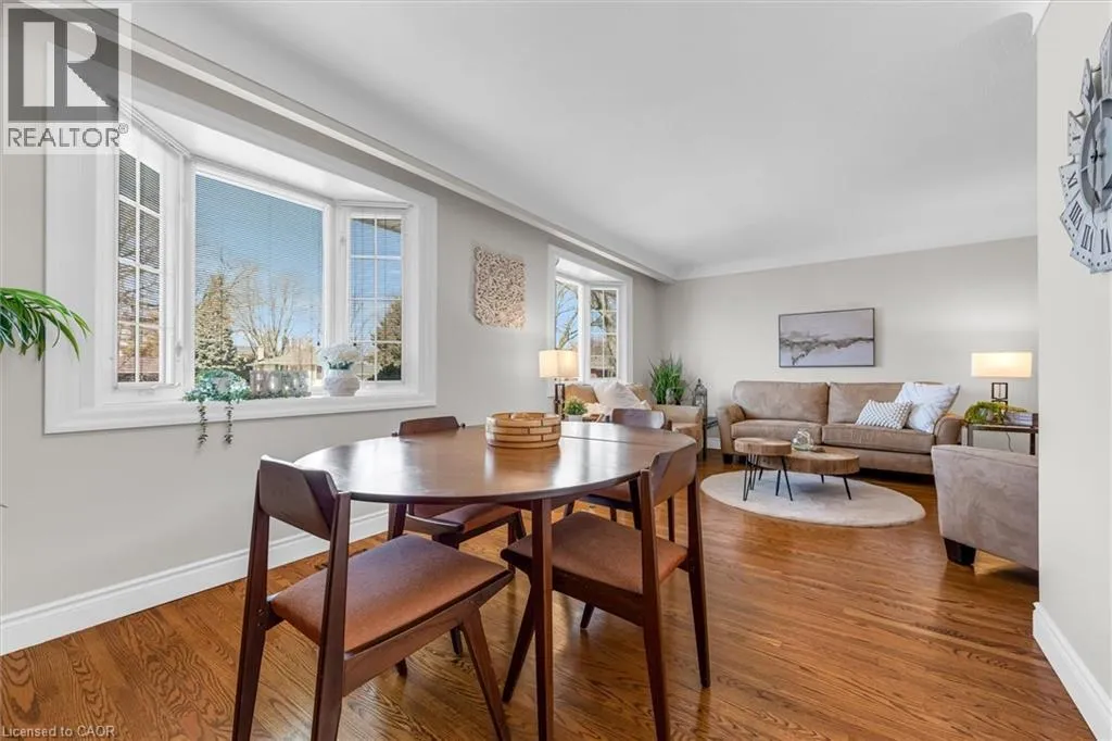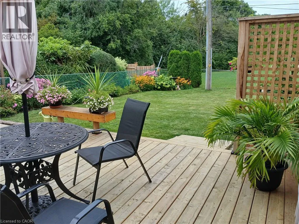 Appleby Ln to Fern Dr to Bryant Cres Welcome to 411 Bryant Crescent in the highly desirable Elizabeth Gardens neighbourhood, south of New Street just off Appleby Line. This meticulously maintained raised bungalow showcases exceptional pride of ownership & attention to detail throughout. Backing directly onto Pineland Park, with Pineland Public School just steps behind the home, this location is ideal for families & also wonderful for downsizers looking for one floor living. The property is also within the boundaries for Nelson High School & Assumption Catholic Secondary School, both ranked among the top schools in the area. The main level features a large, sun-filled living room & spacious dining room, perfect for entertaining, along with 3 generously sized bedrooms with gleaming hardwood floors. The beautifully renovated kitchen (approx 2019) is complete with granite countertops, ceramic tile flooring, stainless steel appliances, & a skylight that fills the space with natural light. An updated 4-piece bathroom (approx 2019) completes the upper level. The fully finished lower level offers above-grade windows & includes a large additional bedroom or office, a bright rec room with a cozy gas fireplace, a 3-piece bathroom, dedicated laundry area, & separate storage space - ideal for extended family living, guests, or additional entertaining. Step outside to enjoy the fully fenced backyard featuring an updated deck (approx 2023), storage shed, & direct access to the park - providing both privacy & convenience. Additional highlights include a 1-car garage with durable resin flooring, parking for up to 4 small vehicles in the driveway, shingles replaced in approx 2016, & furnace & A/C updated in approx 2021. Close to Lake Ontario, walking trails, grocery shopping, restaurants, transit & the QEW. A truly move-in-ready home in one of Burlingtonâs most sought-after, family-friendly communities! (id:27476)