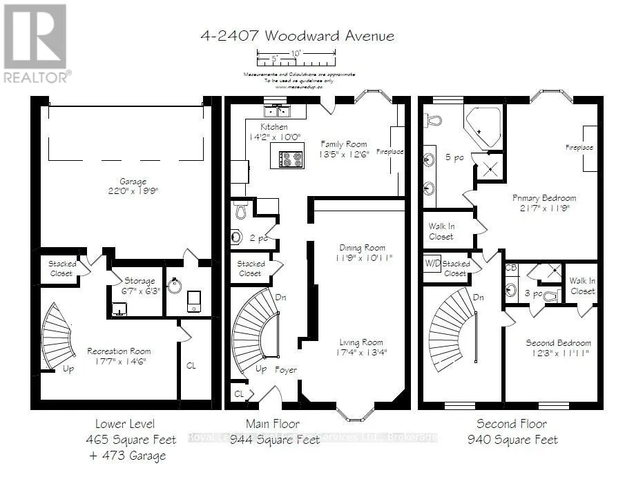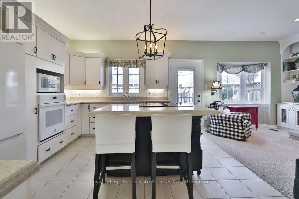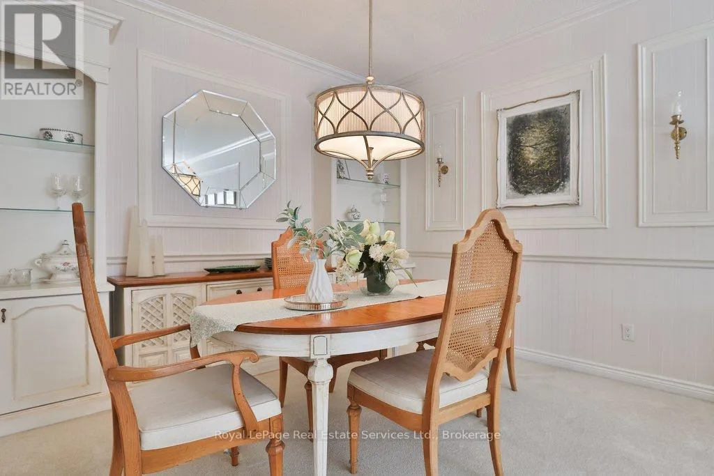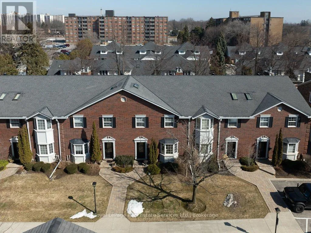 Guelph Line/Woodward Ave Discover the balance of city accessibility and peaceful living in this well-maintained executive townhouse, part of a private complex with only 24 units. Located just moments from the downtown core, this home is ideal for professionals or downsizers looking for comfort, space and convenience. The main level is thoughtfully designed with a functional layout, featuring a formal living and dining room filled with natural light, along with a convenient main floor guest bathroom. The open-concept kitchen and family room offer a comfortable everyday living space with a seamless walkout to the private yard-perfect for relaxing or outdoor dining. The home offers two spacious bedrooms, each with its own private ensuite, providing comfort and privacy for residents and guests. The lower level includes direct access to the double car garage, along with a versatile office or den area and plenty of storage space throughout the home. Two secure underground parking spaces with direct interior entry add convenience. Just outside the downtown core, you are steps from cafés, boutique shops, and transit, while still enjoying the quiet of a small, private community. (id:27476)