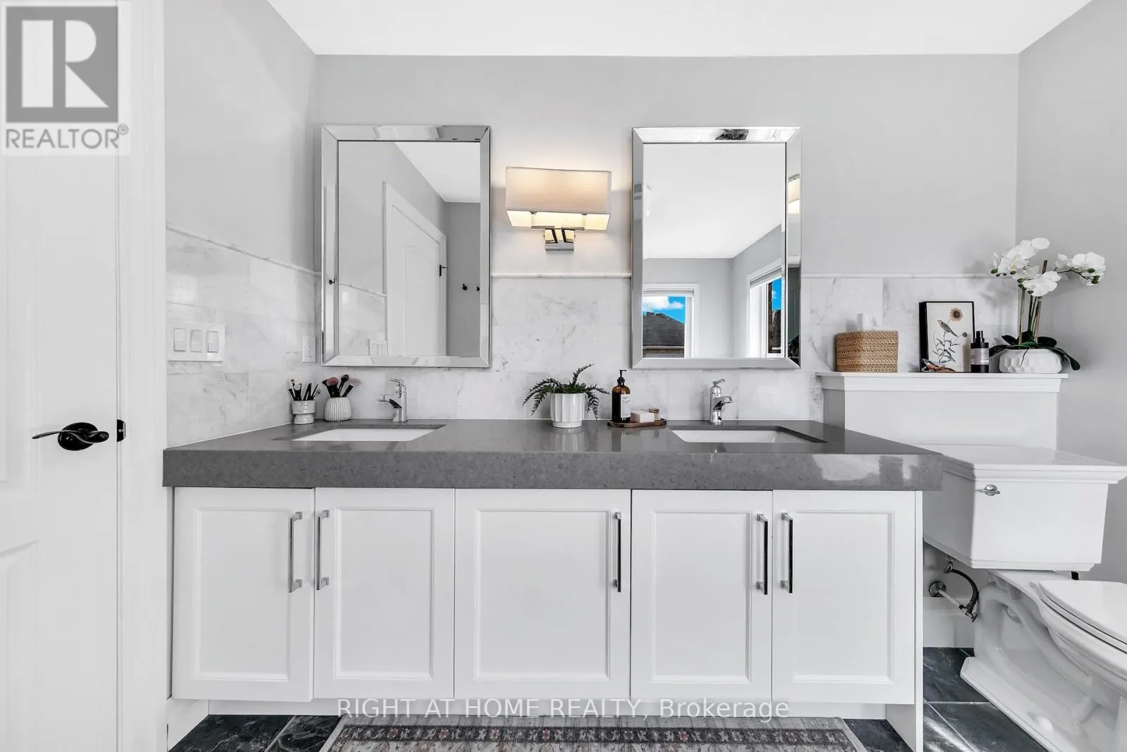 Cross Streets: Dundas St & Appleby Line. ** Directions: 3342 Moses Way Burlington. Welcome to Luxury Living in Prestigious Alton VillageExperience nearly 3,000 square feet of beautifully finished luxury living where no detail has been overlooked. Located in the highly sought-after Alton Village, this professionally designed home is entirely move-in ready, showcasing freshly painted interiors, refinished hardwood floors, elegant waffle ceilings, and designer light fixtures equipped with Lutron dimmers throughout.Property Highlights:The Chef's Kitchen: The heart of the home features sleek, soft-close white cabinetry with modern hardware, gleaming quartz countertops, and a striking herringbone backsplash. It is fully equipped with stainless steel appliances (updated in 2018), a stylish coffee bar, and a large centre island with comfortable seating for four.Finished Basement: An entertainer's dream, the professionally finished lower level includes a custom wet bar and a luxurious full bathroom.Outdoor Oasis: Step outside to a professionally landscaped exterior featuring a completely private rear yard with elegant stamped concrete-perfect for summer hosting.Fully Finished Garage: A pristine, fully finished double garage adds extra polished space and convenience. (id:27476)
