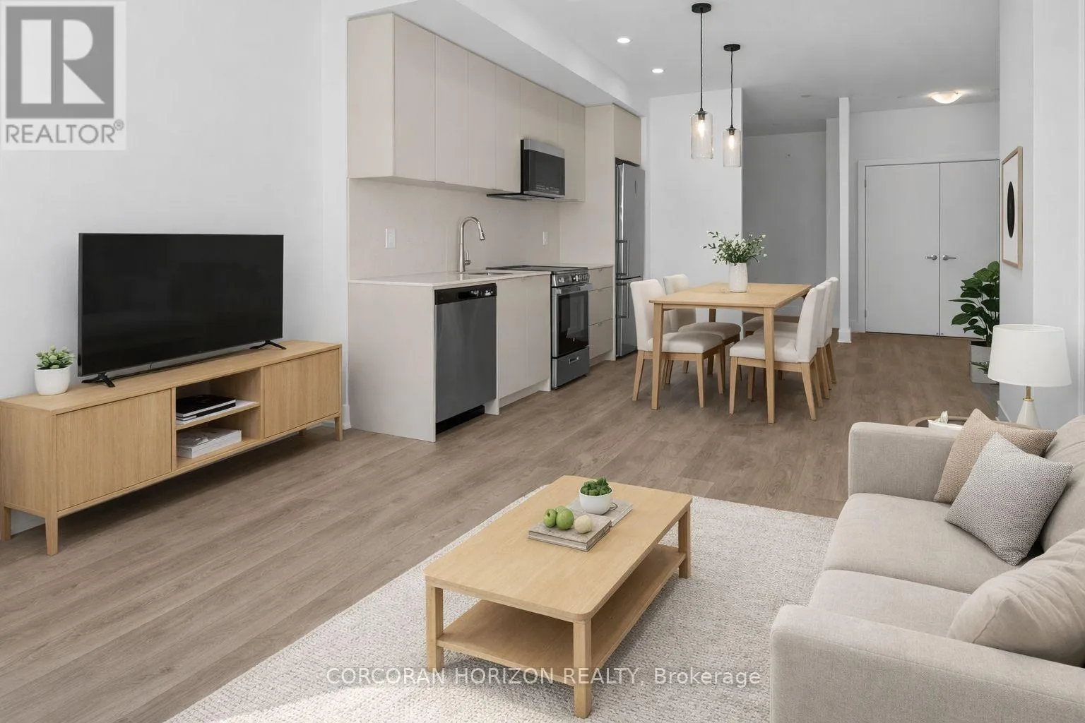 Marth St & James St Landlord offering the month of March for free! High Speed 1GB internet included! Live in the heart of downtown Burlington just steps from the waterfront at Martha James by Mattamy! This brand new, never lived in south facing 1 Bedroom + Den suite features bright, open concept living with floor to ceiling windows that fill the space with natural light. The modern kitchen offers stainless steel appliances and contemporary finishes that flow seamlessly into the living and dining area ideal for both everyday living. The versatile den provides the perfect work from home space, while two full bathrooms add extra comfort and functionality. Residents enjoy premium amenities including concierge service, a fitness centre with yoga studio, rooftop terrace with BBQs, co-working lounge, social lounge, and pet spa. Enjoy an unbeatable location within walking distance to Spencer Smith Park, the waterfront promenade, cafés, restaurants, boutique shops, and vibrant downtown events. Includes 1 underground parking space and 1 storage locker. Some photos have been virtually staged. (id:27476)