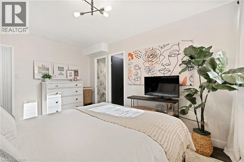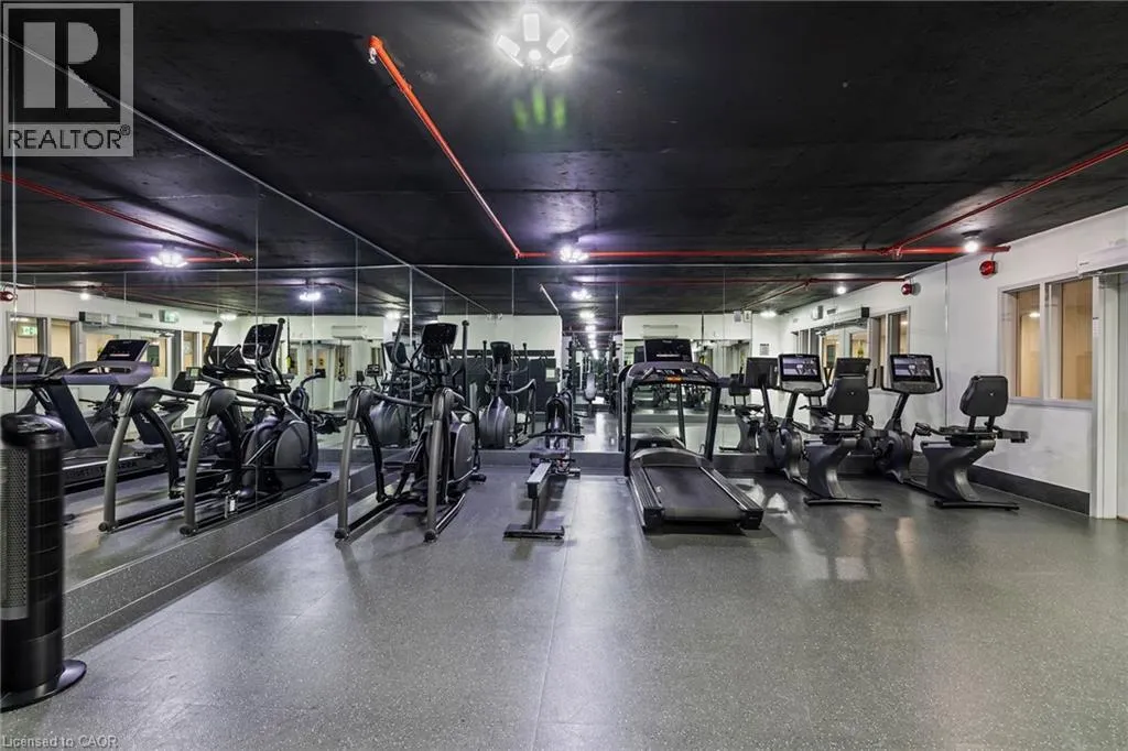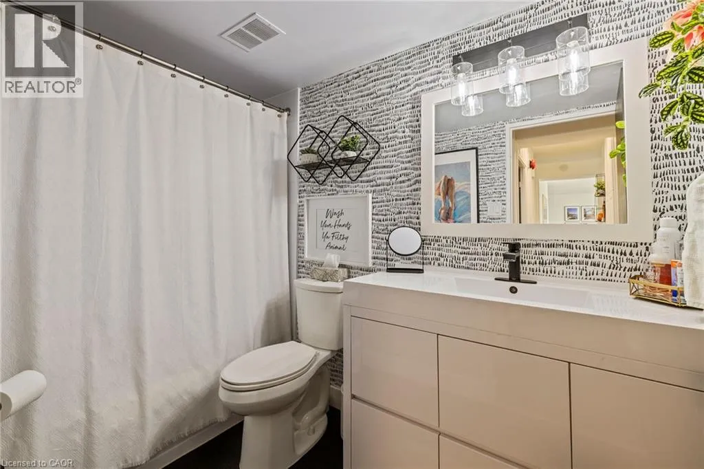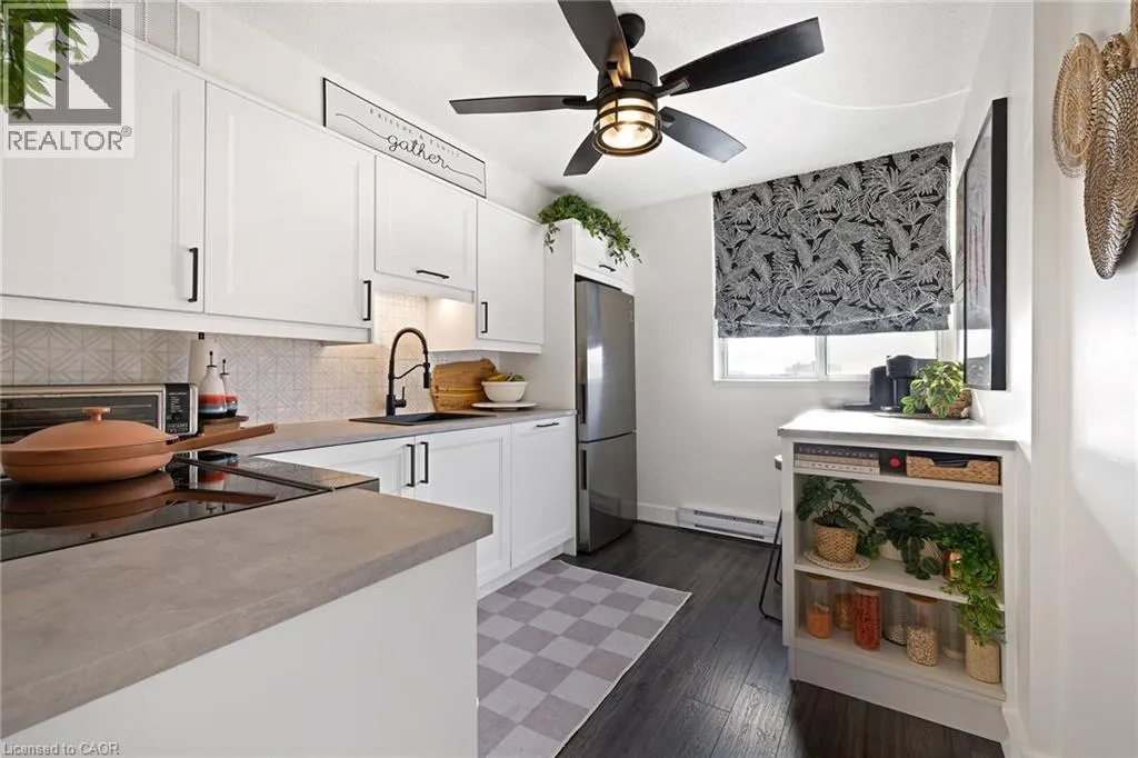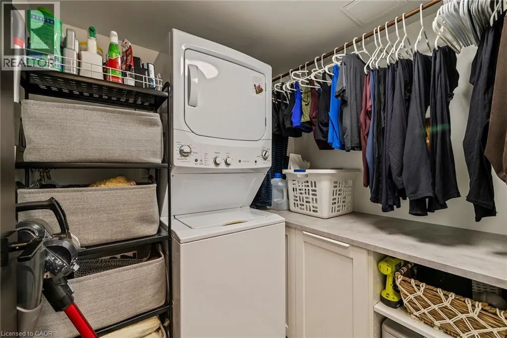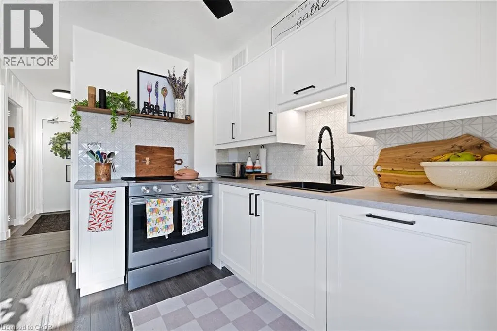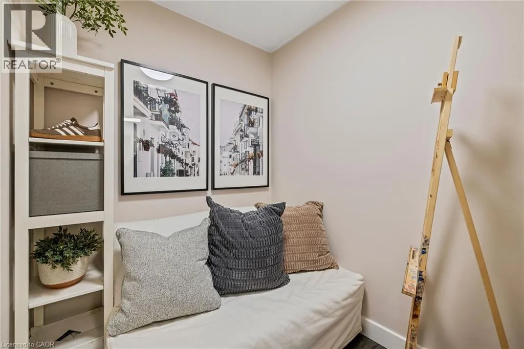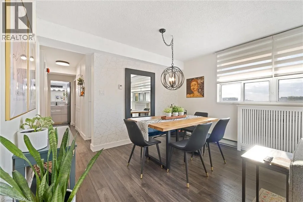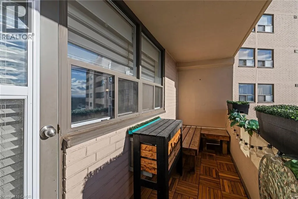 Guelph to Prospect to Dynes Welcome to the Empress, a well-managed condominium with 24 hour concierge, steps from Burlington Centre, Farm Boy, Denningers, public transit, parks, and quick highway access. This beautifully renovated 1+ Den, 2 bath suite boasts outstanding value and exceptional livability. The unit features newer flooring throughout, upgraded lighting, and a luxurious main bathroom. The sleek, renovated kitchen includes a custom built-in pantry, modern finishes, island and thoughtful storage solutions that maximize every inch. The spacious living room features a comfortable layout with a walkout to the private balcony, while the separate den is ideal for an office or quiet reading space. The dining area easily accommodates a full-sized dining table, making entertaining effortless. The primary bedroom includes a rare walk-in closet and convenient two-piece ensuite. Additional features include a full laundry room, PAX wardrobe system in the front hall closet, and custom built-in storage throughout the suite creating a highly functional and organized home. The Empress provides excellent amenities, including a renovated party room & gym, outdoor pool, and underground parking. Beautifully updated, move-in ready, and located in one of Burlington's most convenient neighbourhoods-this condo is a must-see. (id:27476)