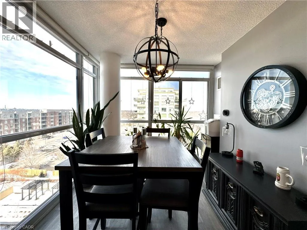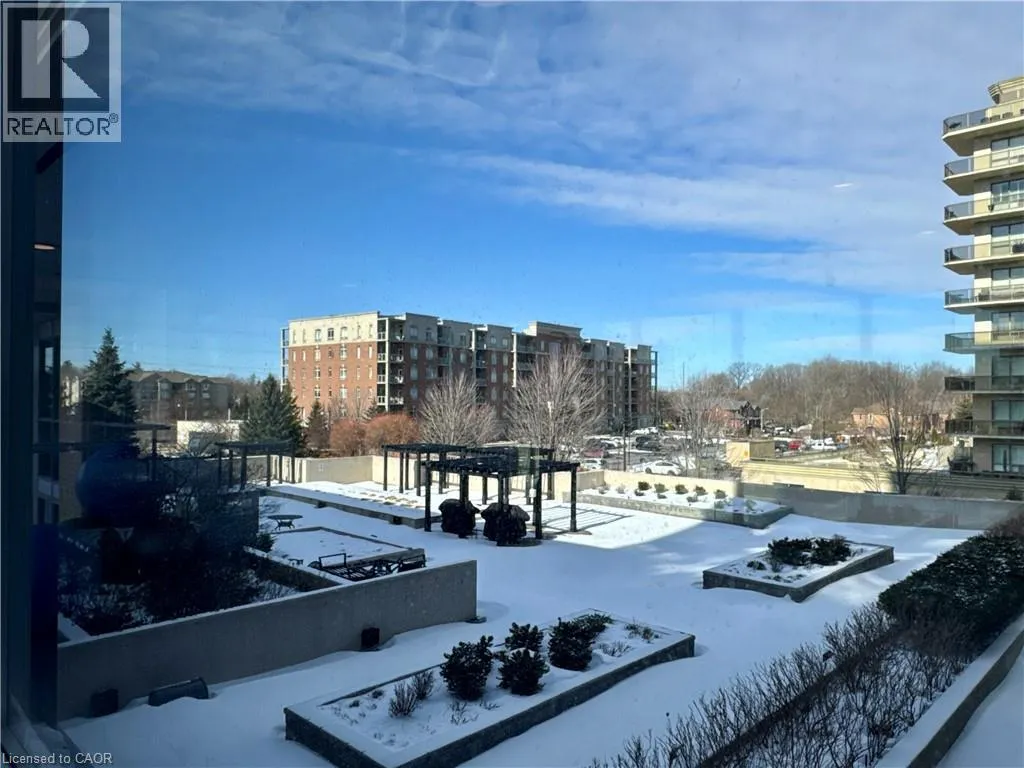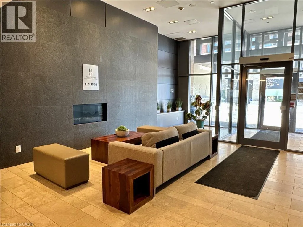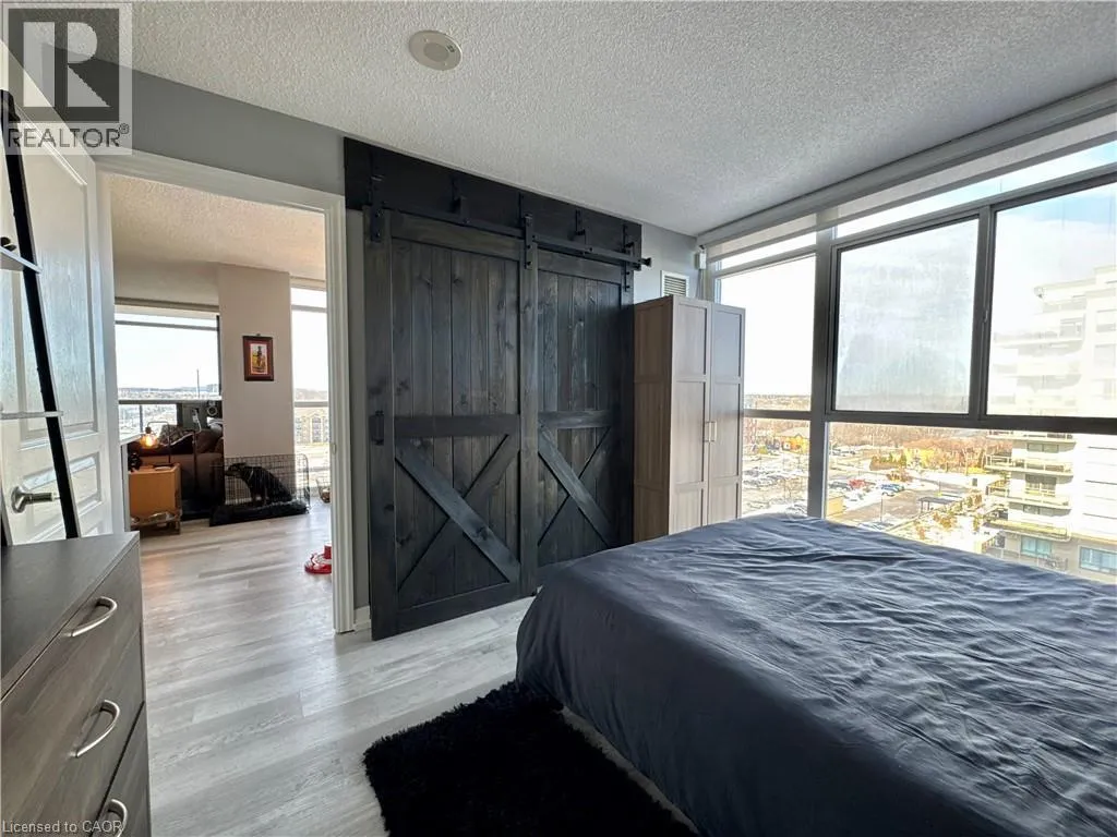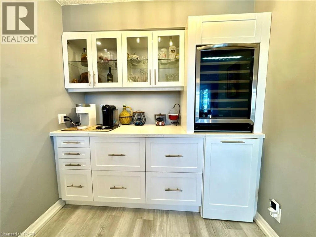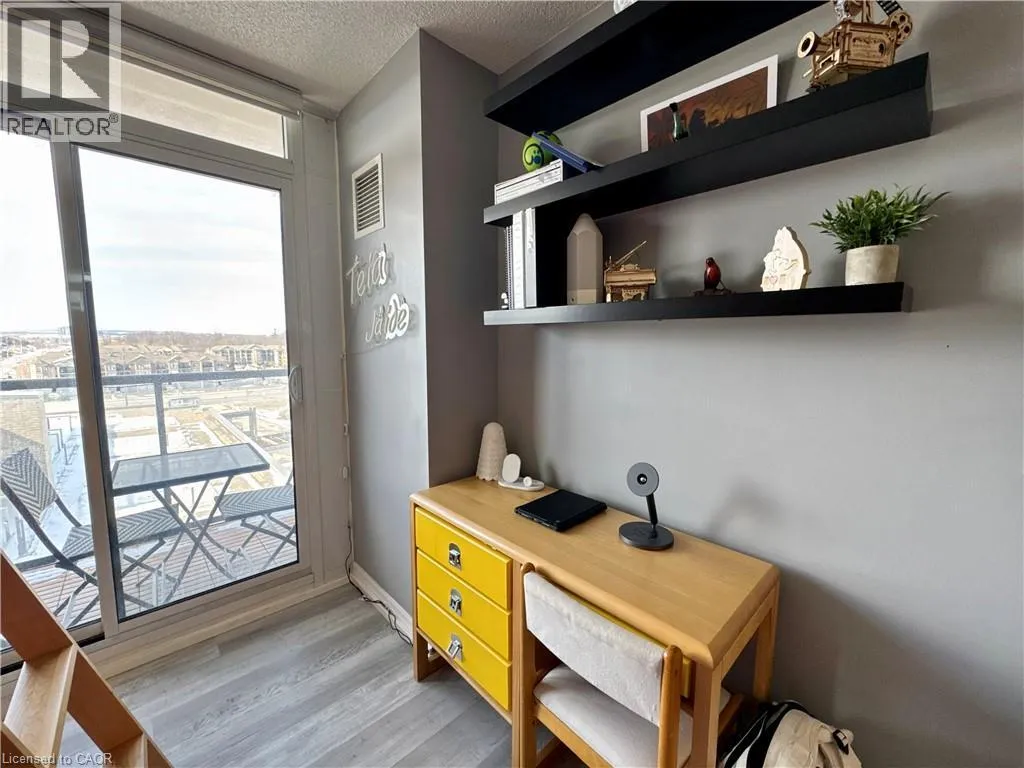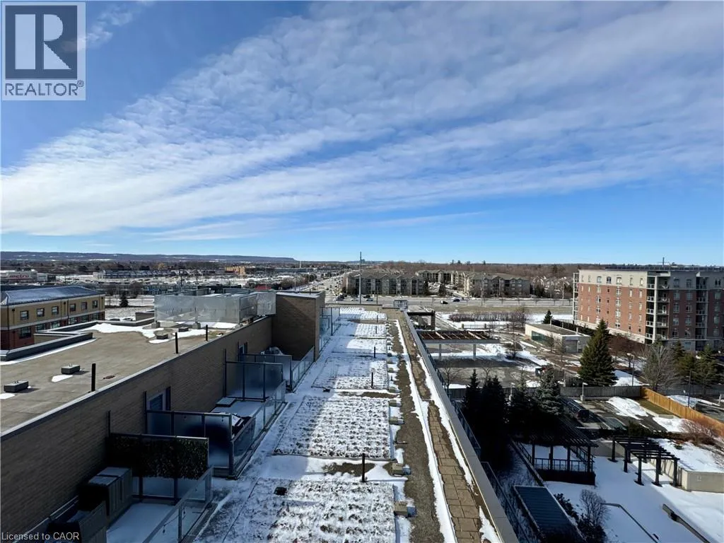 Near Appleby and Upper Middle Welcome to Unit 809 at the prestigious Ironstone Condominiums, located at 1940 Ironstone Drive in desirable Uptown Burlington. This bright and spacious corner suite features 918 square feet of living space, including 2 bedrooms plus a versatile den and 2 full bathrooms, thoughtfully upgraded with stylish finishes throughout. The modern kitchen showcases white cabinetry, white quartz countertops, a double under-mount sink, and a mosaic tile backsplash. The adjacent den has been cleverly converted into an extended pantry and beverage station complete with beverage fridge and wine coolerâperfect for entertaining and everyday convenience. Neutral grey vinyl flooring and upgraded lighting fixtures flow seamlessly throughout the suite. Floor-to-ceiling windows fill the living spaces with natural light and lead to a large private balcony accessible from both the living room and second bedroom. A separate dining area provides a comfortable space for hosting and family meals. The primary bedroom features double closets with stylish barn-style doors and a 4-piece ensuite bathroom. Additional conveniences include a stacked washer and dryer, upgraded fixtures and finishes, one underground parking space, and a storage locker. Residents enjoy an impressive selection of building amenities including a fully equipped fitness centre, yoga room, games room, media room, library, party room, rooftop terrace with community BBQs, concierge service, contemporary lobby with fireplace and seating area, mail room, and covered visitor parking. Ideally situated close to a wide variety of restaurants, cafés, shopping, and everyday services, with easy access to major highways, parks, walking trails, schools, a community recreation centre, and public transit. A fantastic opportunity to enjoy modern condo living in one of Burlingtonâs most convenient neighbourhoods. (id:27476)