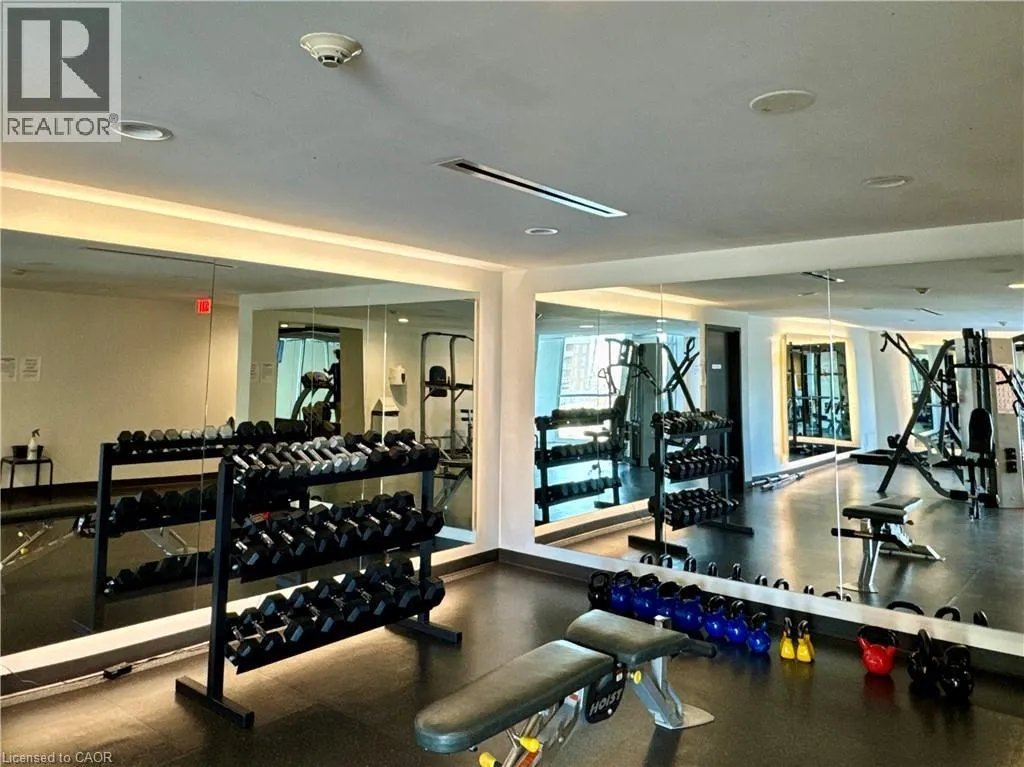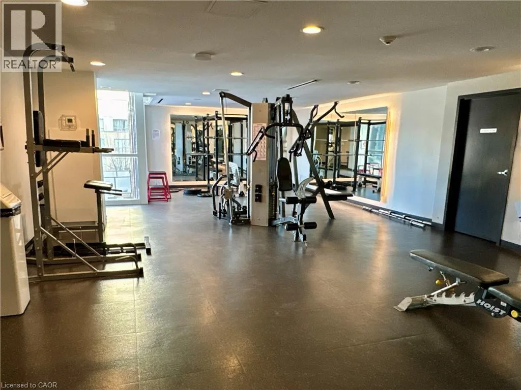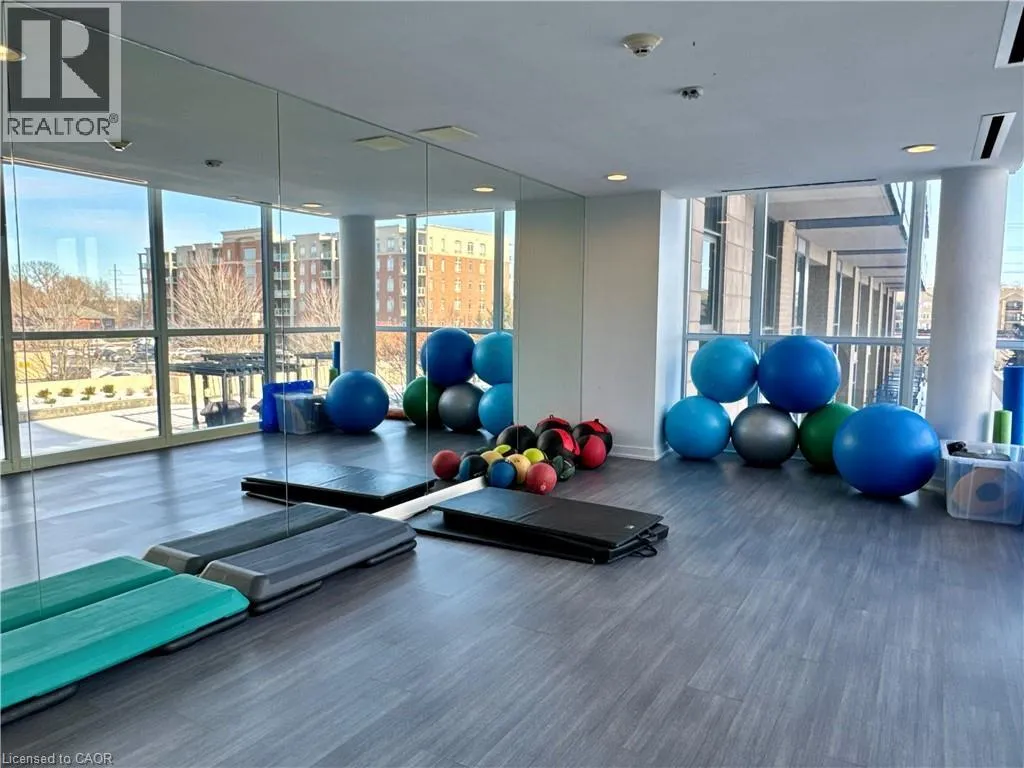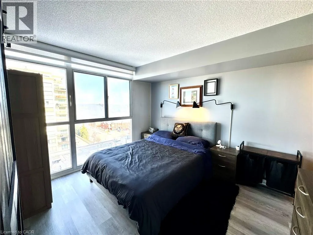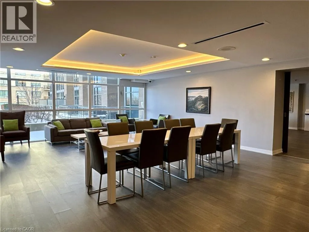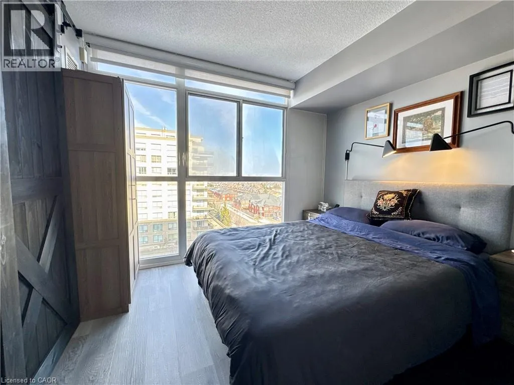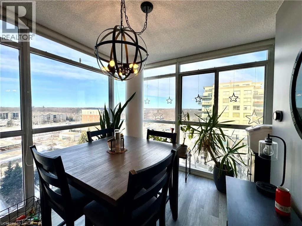 Near Appleby and Upper Middle Welcome to Unit 809 at the prestigious Ironstone Condominiums, located at 1940 Ironstone Drive in desirable Uptown Burlington. This bright and spacious corner suite features 918 square feet of living space, including 2 bedrooms plus a versatile den and 2 full bathrooms, thoughtfully upgraded with stylish finishes throughout. The modern kitchen showcases white cabinetry, white quartz countertops, a double under-mount sink, and a mosaic tile backsplash. The adjacent den has been cleverly converted into an extended pantry and beverage station complete with beverage fridge and wine coolerâperfect for entertaining and everyday convenience. Neutral grey vinyl flooring and upgraded lighting fixtures flow seamlessly throughout the suite. Floor-to-ceiling windows fill the living spaces with natural light and lead to a large private balcony accessible from both the living room and second bedroom. A separate dining area provides a comfortable space for hosting and family meals. The primary bedroom features double closets with stylish barn-style doors and a 4-piece ensuite bathroom. Additional conveniences include a stacked washer and dryer, upgraded fixtures and finishes, one underground parking space, and a storage locker. Residents enjoy an impressive selection of building amenities including a fully equipped fitness centre, yoga room, games room, media room, library, party room, rooftop terrace with community BBQs, concierge service, contemporary lobby with fireplace and seating area, mail room, and covered visitor parking. Ideally situated close to a wide variety of restaurants, cafés, shopping, and everyday services, with easy access to major highways, parks, walking trails, schools, a community recreation centre, and public transit. A fantastic opportunity to enjoy modern condo living in one of Burlingtonâs most convenient neighbourhoods. (id:27476)