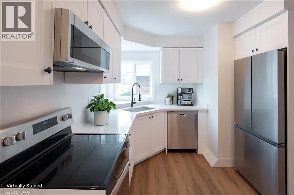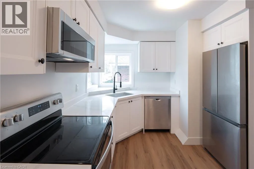 Brant St & Mt Forest Dr Beautiful +/- 1,100 sqft upper floor 3-bedroom, 1 bathroom apartment in desirable Burlington location. Fully renovated with modern finishes, updated flooring, fresh paint, and a bright, functional layout throughout. Kitchen features quartz countertops and modern appliances, including fridge, stove, dishwasher, and microwave. In-suite laundry. Separate A/C and soundproofed construction for added comfort and privacy. Additional fees for two tandem parking spaces and storage shed. Partial outdoor space (~160 sq ft, accessible via rear stairs to be built Spring 2026). Conveniently located close to GO Transit and bus route. (id:27476)
