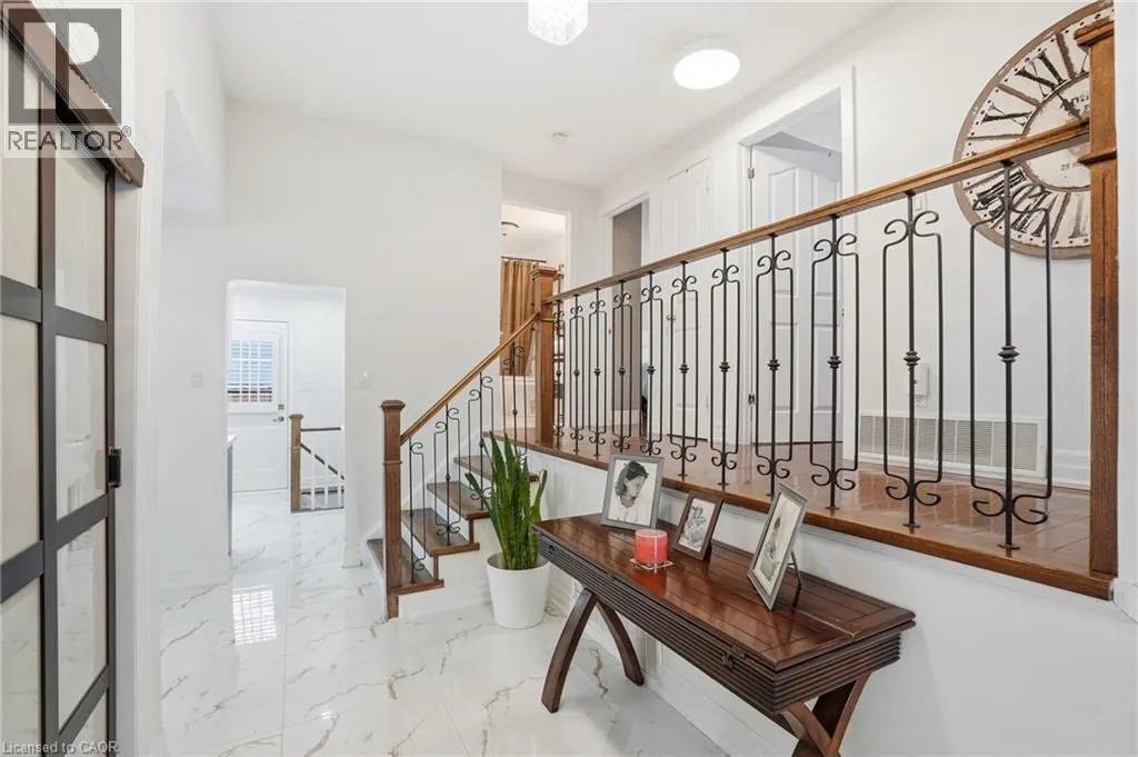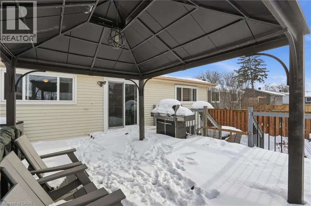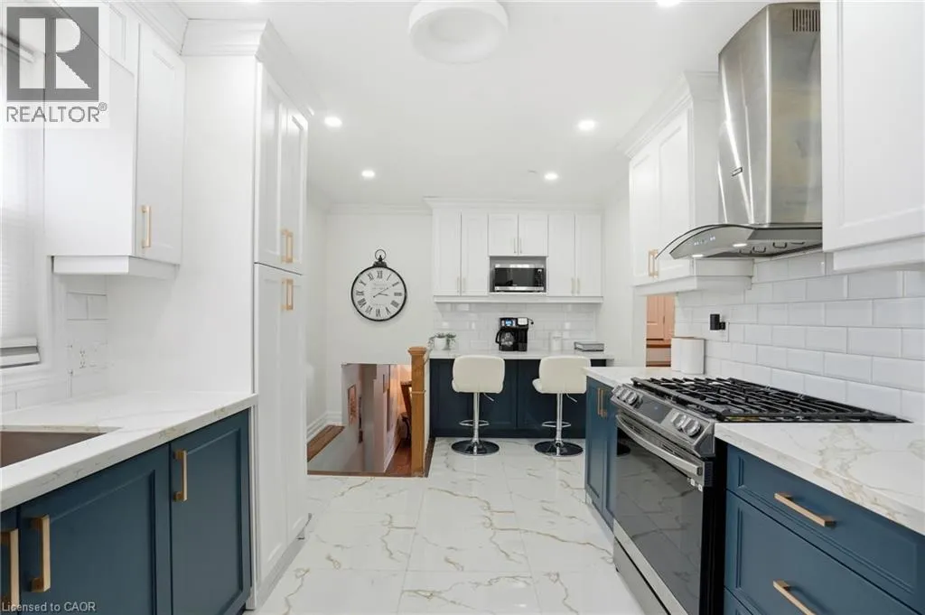Welcome to this beautifully maintained backsplit nestled in a lovely, family-friendly neighbourhood in Burlington. The bright and open main floor offers an inviting layout, perfect for everyday living and entertaining. This charming home features three spacious bedrooms and two updated bathrooms, with the main bathroom and kitchen thoughtfully renovated in 2024. The modern kitchen showcases new appliances, soft-close cabinetry, a gas range, and stylish finishes, complemented by all-new flooring throughout the main floor (2024). Some major updates include a newer roof (2020) and windows and doors (2011), providing peace of mind for years to come. The lower level boasts a sun-filled rec room with large windows, creating a warm and welcoming space to relax or entertain. Set on a generous sized lot, the backyard is a true retreat with a large deck, beautiful gardens, and plenty of room to enjoy the outdoors. Meticulously cared for from top to bottom, this move-in-ready home reflects true pride of ownership. Located on a quiet street, don't miss your chance to call this one home! Donât be TOO LATE*! *REG TM. RSA. (id:27476)