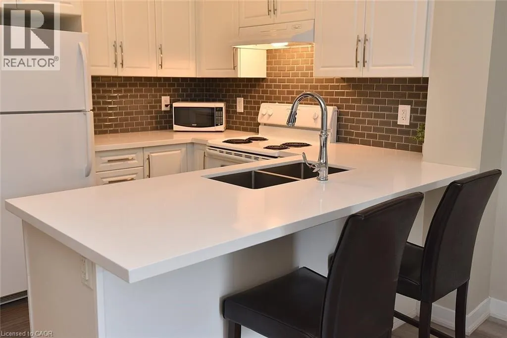 Burloak becomes Upper Middle Rd. Turn Right at Sutton to Haven Condos on left. Lots of Visitor parking at the back. Updated One Bedroom PLUS DEN unit in desirable Orchard area. Within Walking Distance to Bronte Creek Prov Park! Gorgeous Quartz counters/breakfast bar & stylish backsplash. Carpet free with Luxury Vinyl Flooring & Open/Concept Floorplan. Convenient In Suite Laundry and a Lrg 5' x 8' owned Storage Locker just down your hallway. Owned Secure Underground Parking Spot #69 not far from the door to the elevator. Enjoy the Escarpment & Lake Views from the Rooftop Terrace while you BBQ or practice your putting. Other amenities Includes a Party Room with kitchenette & an Exercise Room. Ample Visitor Parking! Geothermal powers the A/C. Condo fees incl everything except hydro/electricity & TV/Internet. Dogs under 25 lbs permitted. (id:27476)