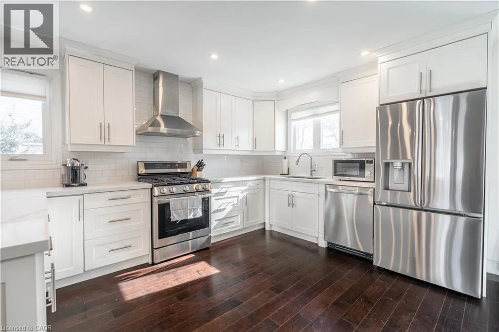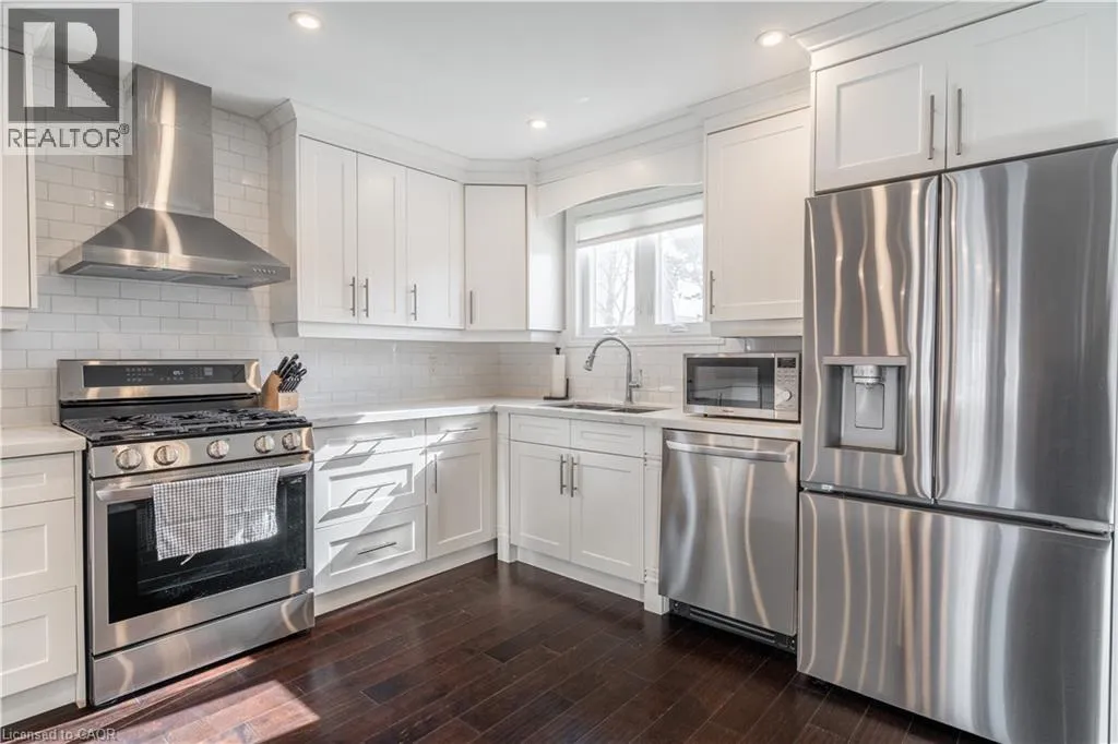 Appleby Line to Sheraton Rd to Brady Ave Pristinely maintained 4-bedroom home for lease in Burlingtonâs sought-after Pinedale neighbourhood, ideally situated on a quiet, family-friendly street with minimal through traffic and just minutes to the lake. This bright home features dark hardwood floors, freshly painted white interiors, a classic rod spindle staircase, and oversized hallways that enhance the spacious feel. The main floor offers a large kitchen with built-in stainless steel appliances, including a gas range and double-door fridge with water and ice dispenser. An oversized island seats 3 to 4, and the adjoining breakfast area overlooking the backyard is perfect for a coffee nook or work-from-home space. Down the hall is interior access to the single-car garage, a powder room, and a walkout to the backyard patio. The combined living and dining area is filled with natural light from a large bay window. Upstairs, the primary bedroom offers ample closet space, along with three additional well-sized bedrooms. A four-piece family bathroom with double sinks completes the upper level. The unfinished basement provides plenty of storage and a dedicated laundry area. The professionally landscaped backyard features a stone patio ideal for outdoor dining, a designated trampoline area, and low-maintenance flower beds. Additional highlights include parking for three vehicles (two driveway, one garage) and Bell Fibe 1 Gig Internet with Better TV package included, adding over $200 per month in value. Close to excellent schools, parks, recreation centres, restaurants, amenities, and the paved Burlington bike trail, this is a fantastic opportunity to lease a spacious home in a quiet, established neighbourhood. (id:27476)