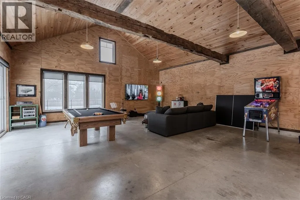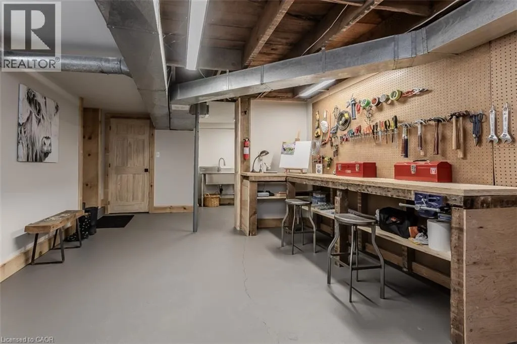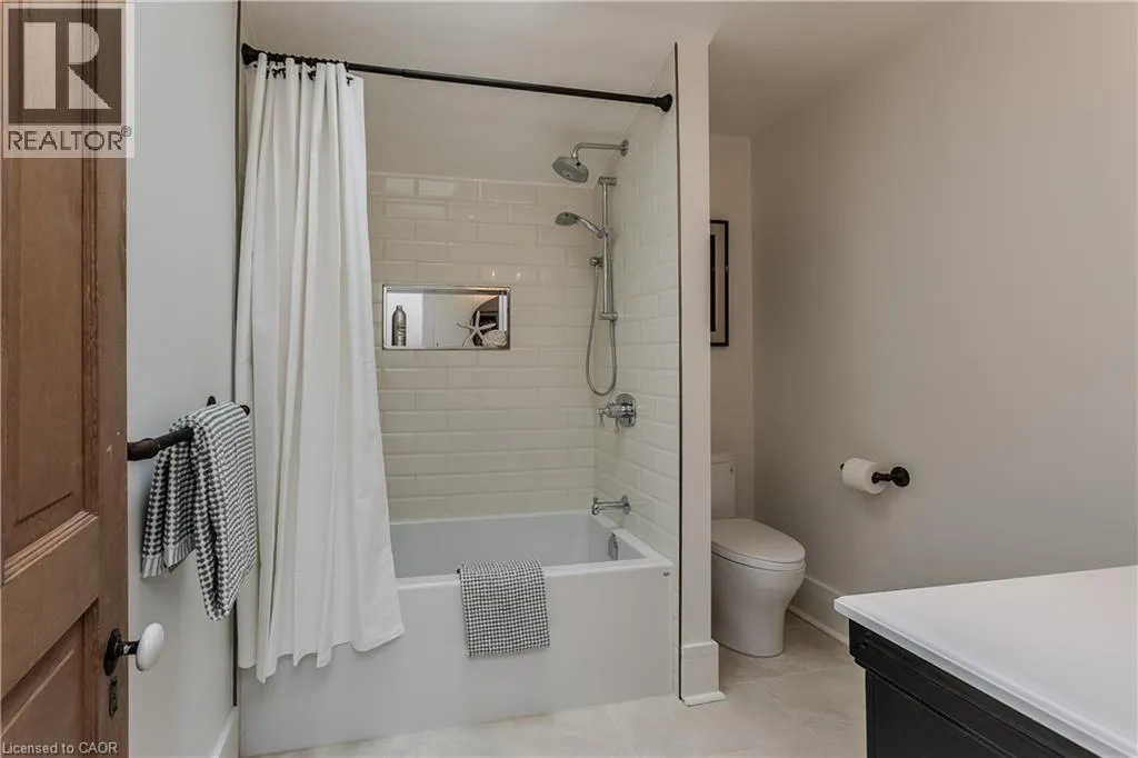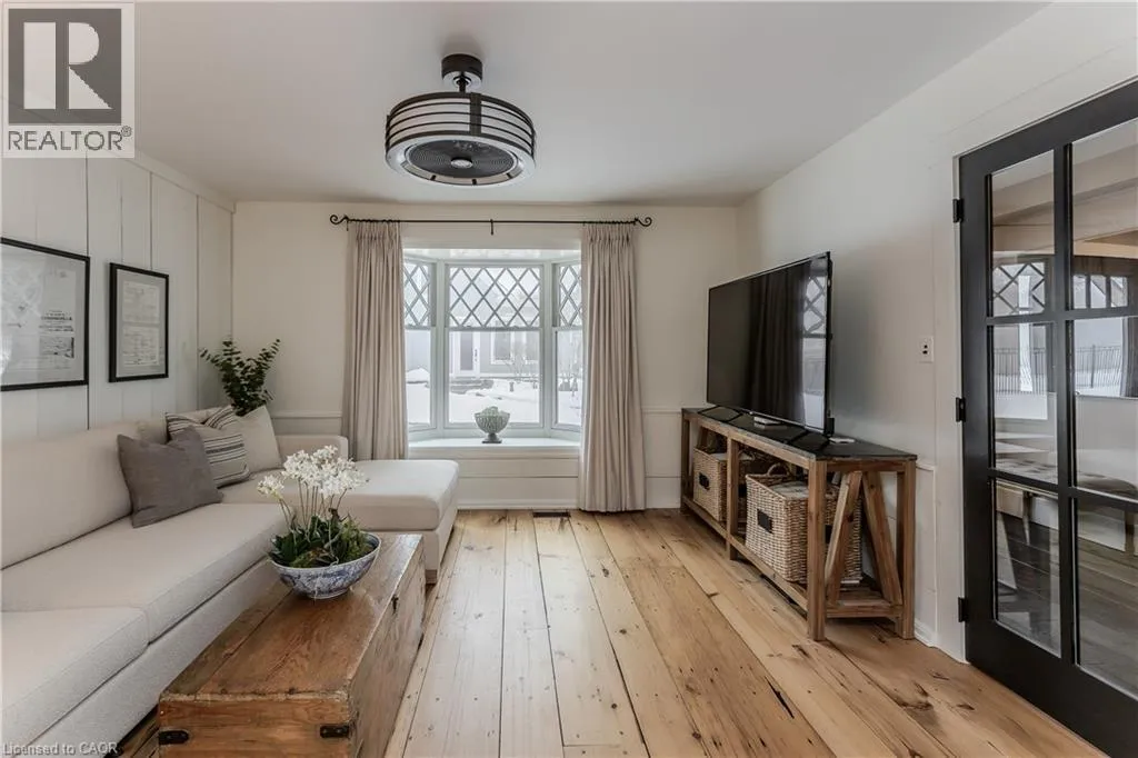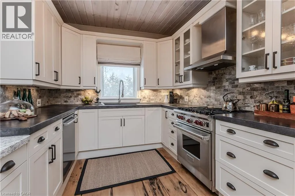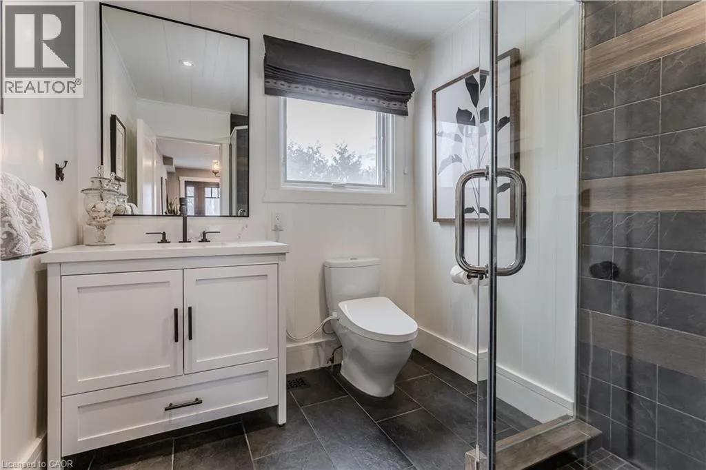 Cedar Springs Rd to McNiven Discover the perfect blend of rural charm and refined luxury on an exceptional property that offers the tranquility of country living while remaining just mins from Burlingtonâs everyday amenities, schools, shopping, and hwys. Set behind automated wrought iron gates is one of the most historic homes in the area originally from 1875. Inside, rustic character meets modern comfort. A welcoming foyer with heated floors sets the tone, while beautiful 1875 wood floors (2020), 8â baseboards, and designer lighting add warmth throughout. The heart of the home is the kitchen featuring concrete countertops, custom cabinetry, SS appliances, wood beam accents, tile backsplash, and a breakfast bar, seamlessly connecting to a bright breakfast area with a bay window. Multiple gathering spaces offer flexibility for living and entertaining, including a family room with stone-surround fireplace, formal dining room, and a living room with wood paneling, French doors, and a bay window. A main-floor bedroom and beautifully renovated 3pc bath with heated floors and glass shower provide ideal space for guests or multigenerational living. Upstairs, the expansive primary retreat impresses with vaulted 12â ceilings, automated blinds, private balcony, and a custom California Closets walk-in. The spa-inspired ensuite features a freestanding tub, and glass walk-in shower. 2 additional spacious bedrooms and a stylish 4pc bath complete the level. The heated garage is a dream entertainment space, and offers polished concrete floors, automated blinds, and an EV charger rough-in. The partially renovated lower level provides excellent storage, laundry with new machines, a workbench, and walkout cellar doors. Outdoors, the fully fenced backyard is a true private retreat with a professionally landscaped stone patio, flagstone pathways, inground pool, hot tub, fire pit, and large shedâperfect for family gatherings, summer entertaining, and peaceful evenings under the stars. (id:27476)