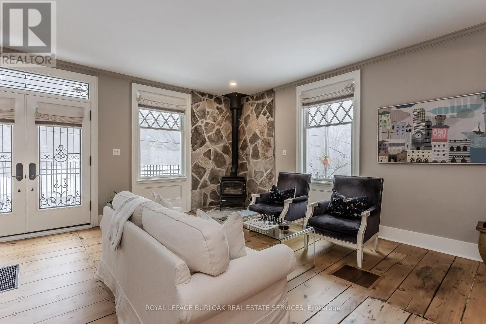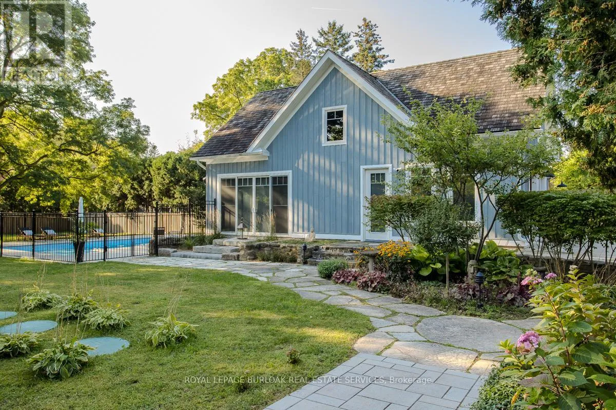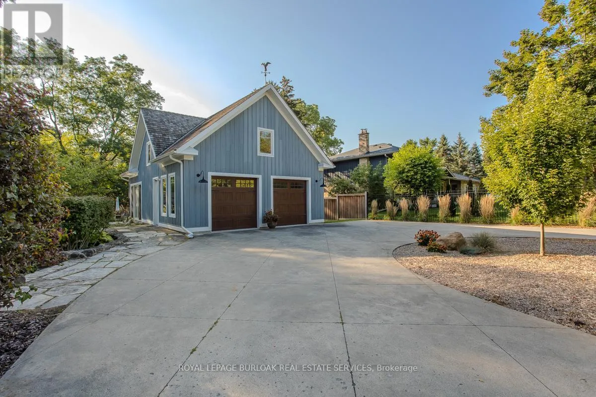 Cross Streets: Cedar Springs/McNiven. ** Directions: Cedar Springs to McNiven. Discover the perfect blend of rural charm and refined luxury on an exceptional property that offers the tranquility of country living while remaining just mins from Burlington's everyday amenities, schools, shopping, and hwys. Set behind automated wrought iron gates is one of the most historic homes in the area originally from 1875. Inside, rustic character meets modern comfort. A welcoming foyer with heated floors sets the tone, while beautiful 1875 wood floors (2020), 8" baseboards, and designer lighting add warmth throughout. The heart of the home is the kitchen featuring concrete countertops, custom cabinetry, SS appliances, wood beam accents, tile backsplash, and a breakfast bar, seamlessly connecting to a bright breakfast area with a bay window. Multiple gathering spaces offer flexibility for living and entertaining, including a family room with stone-surround fireplace, formal dining room, and a living room with wood paneling, French doors, and a bay window. A main-floor bedroom and beautifully renovated 3pc bath with heated floors and glass shower provide ideal space for guests or multigenerational living. Upstairs, the expansive primary retreat impresses with vaulted 12' ceilings, automated blinds, private balcony, and a custom California Closets walk-in. The spa-inspired ensuite features a freestanding tub, and glass walk-in shower. 2 additional spacious bedrooms and a stylish 4pc bath complete the level. The heated garage is a dream entertainment space, and offers polished concrete floors, automated blinds, and an EV charger rough-in. The partially renovated lower level provides excellent storage, laundry with new machines, a workbench, and walkout cellar doors. Outdoors, the fully fenced backyard is a true private retreat with a professionally landscaped stone patio, flagstone pathways, inground pool, hot tub, fire pit, and large shed-perfect for family gatherings, summer entertaining, and peaceful evenings under the stars. (id:27476)