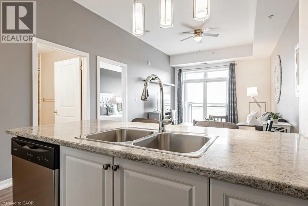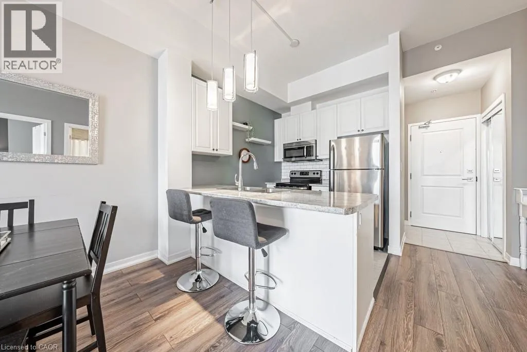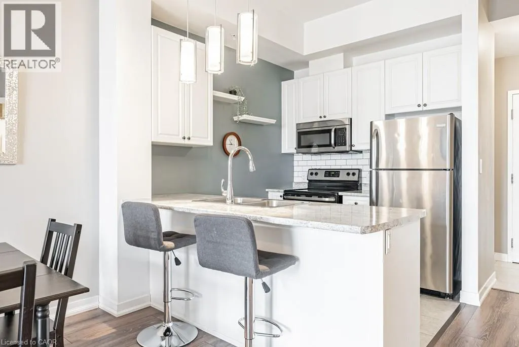 APPLEBY LINE & CORPORATE DR This move in ready 1 bed + den, 1 bath penthouse condo in the Vibe Condos is positioned perfectly between ample amenities and convenient highway access. The luxurious 10' ceilings provide a grand entrance with tons of natural lighting from this South facing unit. Open concept living flows from the kitchen through the dining and living space directly to the large balcony with unparalleled views. The spacious bedroom is paired nicely with a large 4 piece bath making this the perfect place to call home. Book your showing today and Let's Get Moving!⢠(id:27476)
