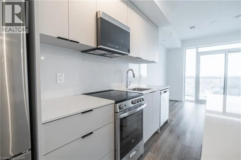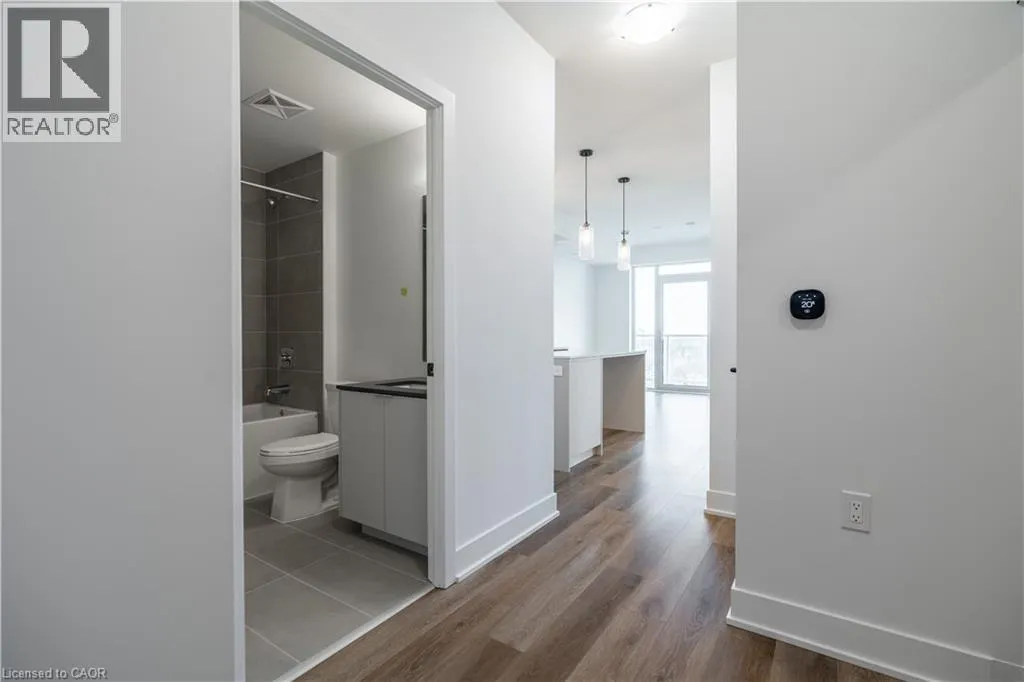 QEW to Brant St South, turn on James St. Pristine 1 Bed + Den, 2 Full Bathroom Residence With Loads of Upgrades At Martha James Boutique Condos in Prime Burlington Location. This Never-Before-Occupied Home Offers Approx. 700 Sq Ft Of Sun-Drenched, Open-Concept Living Space With Soaring Ceilings, Expansive Windows, and Stunning Lake Views from The Balcony. The Gourmet Kitchen Showcases Elegant Quartz Countertops, Premium Stainless-steel Appliances With Built-In Microwave, And A Chic Backsplash. Internet And State-Of-The-Art Smart Home Technology Provided Throughout The Building Including Facial Entry. Exceptional Amenities Include A Concierge-Serviced Lobby, Automated Parcel Lockers, A Stylish Social And Co-Working Lounge, A Fully Equipped Fitness Centre With Yoga Studio, And A Roof-Top Terrace With BBQ Facilities. Ideally Situated Near The QEW, GO Transit, Upscale Shopping, And Fine Dining, This Residence Delivers Unparalleled Convenience And Contemporary Luxury Living. In-Suite Laundry, And One Parking Space Directly In Front of Locker Are Included. (id:27476)