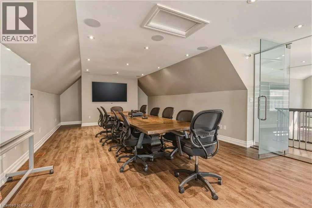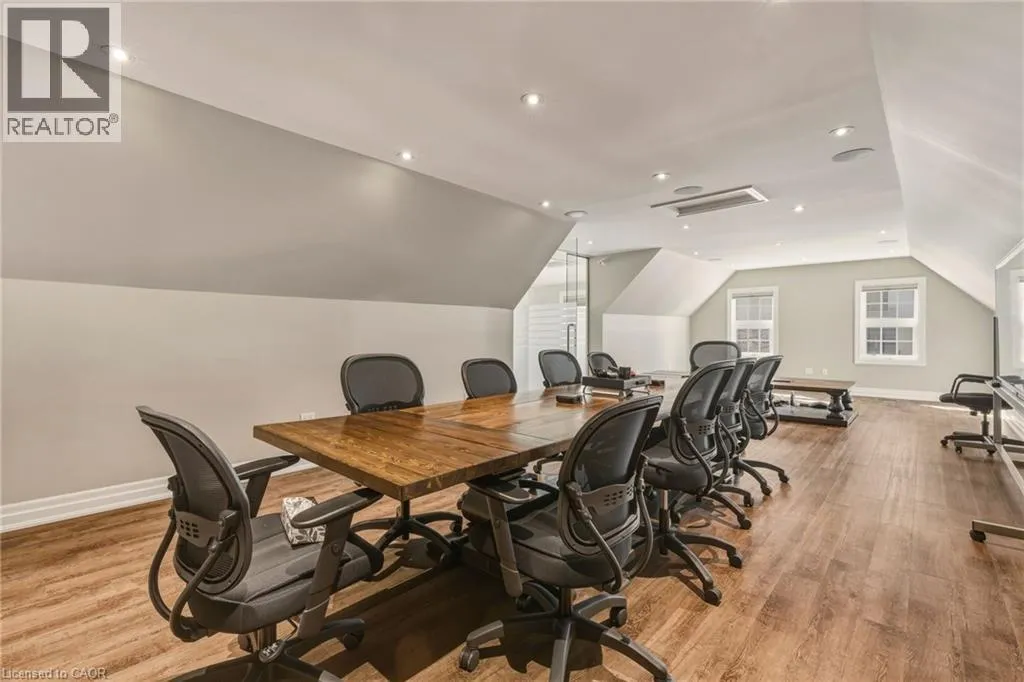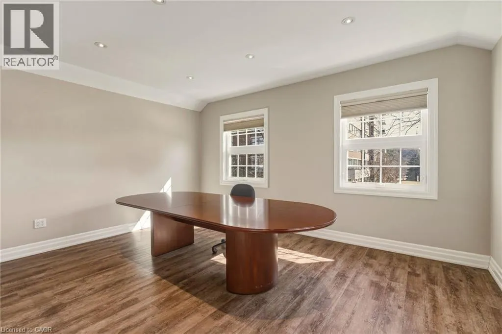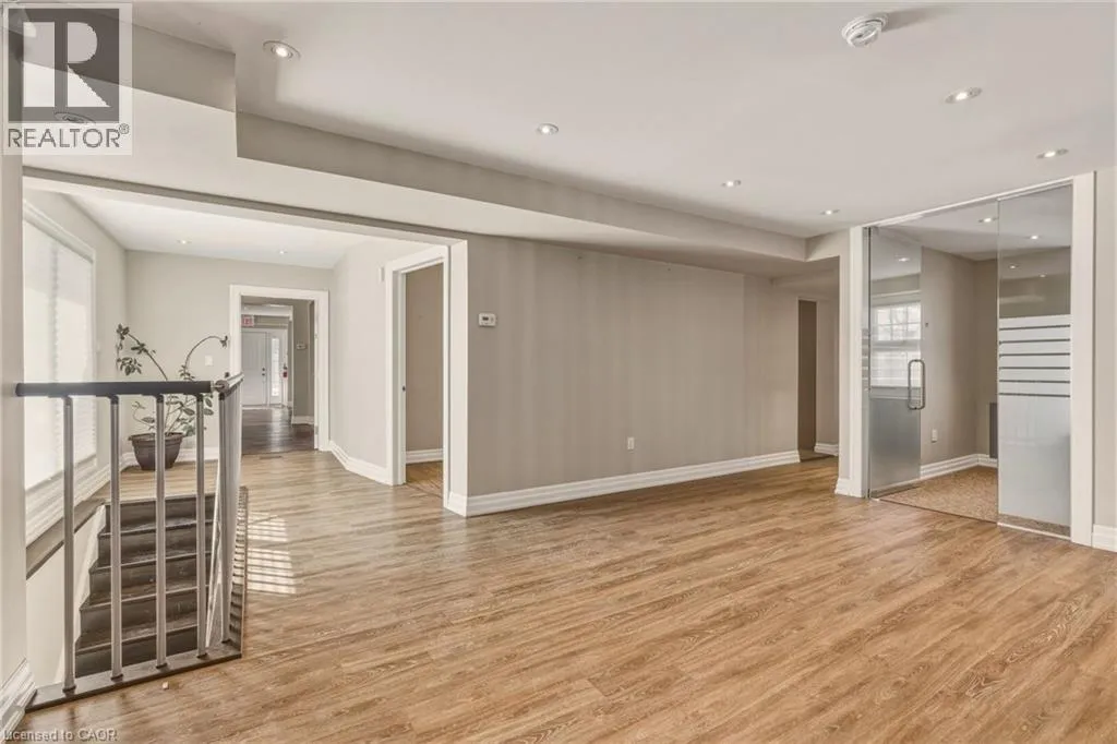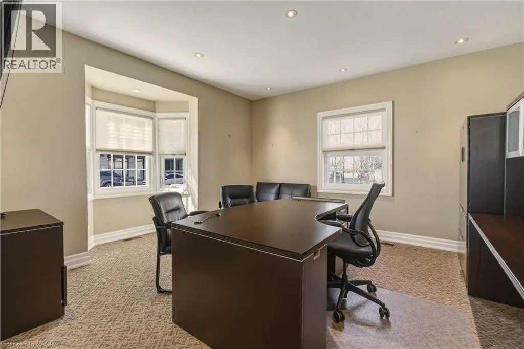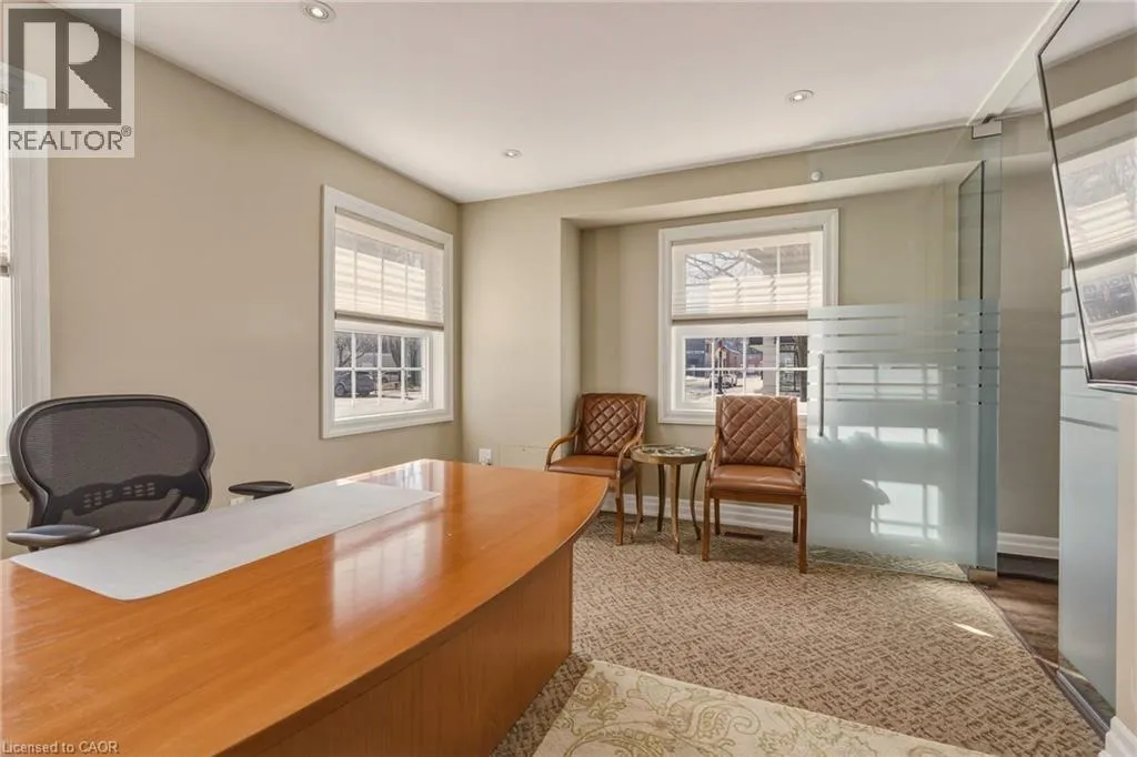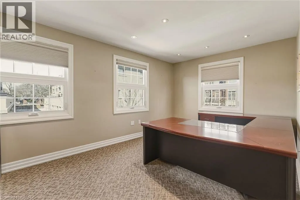 From Caroline St South on Elizabeth, at the corner of Maria St Discover the perfect blend of modern elegance & prime location with this exceptional property in downtown Burlington. Updated from top to bottom, this striking office space boasts *incredible curb appeal*, making it a standout choice for businesses seeking visibility & accessibility. Spanning approximately 6,867 sq. ft., the layout is designed for functionality & flow. Featuring **16 offices**, this space accommodates teams of any size, ensuring privacy & productivity. Four well-appointed boardrooms provide ideal settings for meetings & presentations, while four full washrooms enhance convenience for staff & clients alike. Ample on-site parking with **12 dedicated spaces**, a rarity in this bustling area, allowing easy access for employees & visitors. The property benefits from **four main floor entrances** & an additional lower-level egress entrance, streamlining traffic & enhancing accessibility for everyone. Storage needs are met with **three designated areas**, perfect for keeping your office organized & efficient. Plus, the location is unbeatable. Just a short stroll away, you'll find the stunning waterfront, delightful restaurants, & charming shops, making it easy to unwind or entertain clients after a productive day. This property is more than just an office space; itâs a strategic investment in a vibrant community. Whether you're looking to expand your business or seeking a prime location for your new venture, this property offers the ideal setting to thrive. Donât miss your chance to own a piece of downtown Burlingtonâwhere opportunity meets lifestyle. Seize this opportunity & elevate your business to new heights! (id:27476)