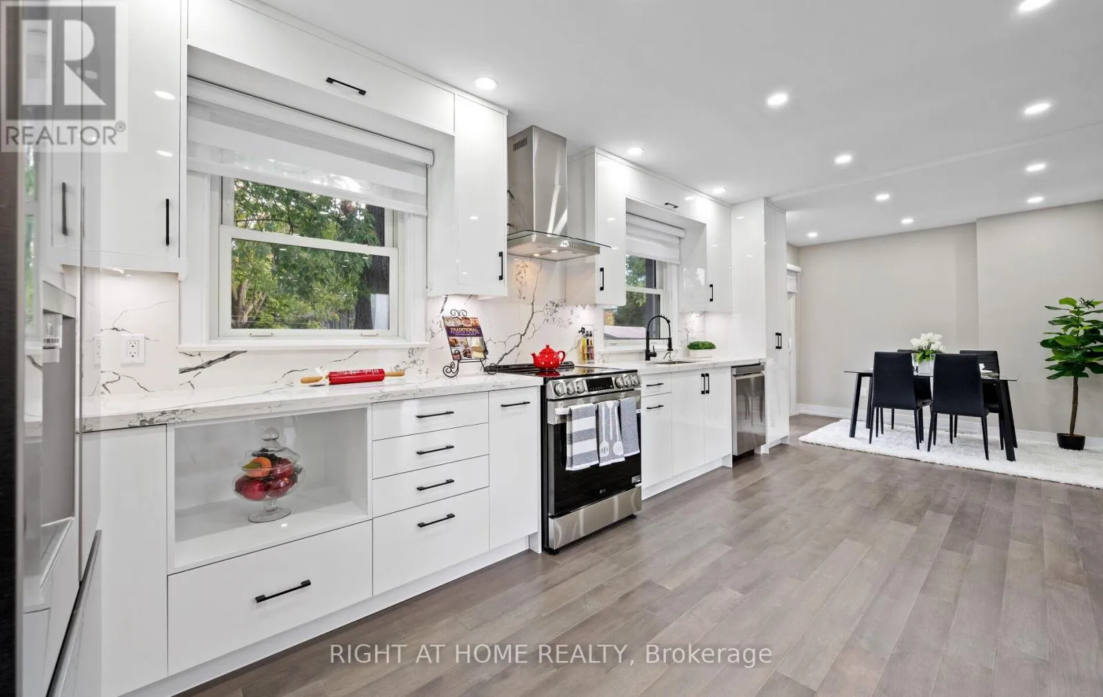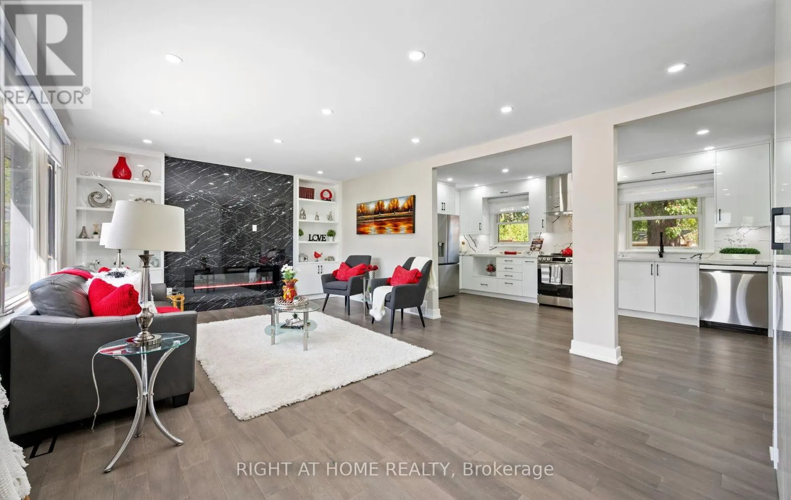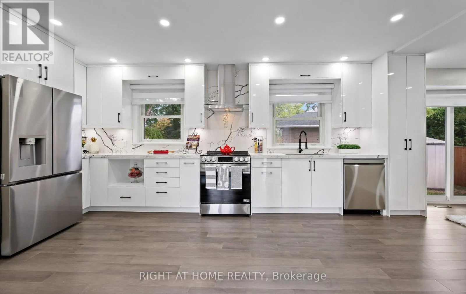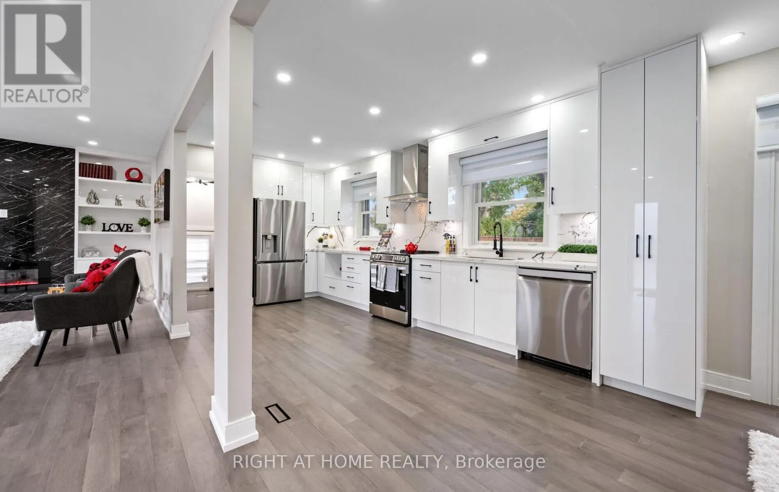 Cross Streets: Brant st & Mt forest dr. ** Directions: Brant & MT forest. Step inside to an inviting open-concept layout featuring rich hardwood floors and a cozy electric fireplace. The modern kitchen boasts quartz countertops, stainless steel appliances, custom cabinetry, and a dining area with walkout to the backyard, ideal for gatherings. Three spacious bedrooms offer custom-built closets, while the 3-piece bathroom includes a stand-up shower and convenient laundry closet.The finished basement offers excellent in-law or income potential, featuring laminate flooring, a bright recreation area, open-concept living, and a spacious bedroom with a custom-built closet. A second kitchen with quartz countertops, custom cabinetry, a 4-piece bathroom, and an additional laundry closet make this lower level completely self-sufficient.Enjoy incredible curb appeal with new stucco all around, a new concrete driveway with space for up to 8 vehicles, and a newly fenced backyard with fresh sod. The concrete patio and two storage sheds provide both comfort and convenience, while the large corner lot ensures privacy and plenty of outdoor space.Located in a highly desirable neighborhood close to top-rated schools, parks, shopping centers, and public transit, this home offers both peace and accessibility. Easy access to major highways makes commuting effortless, while nearby restaurants, community centers, and walking trails add to the vibrant local lifestyle. Whether youre raising a family or seeking a high-demand rental property, this area delivers exceptional value and convenience (id:27476)