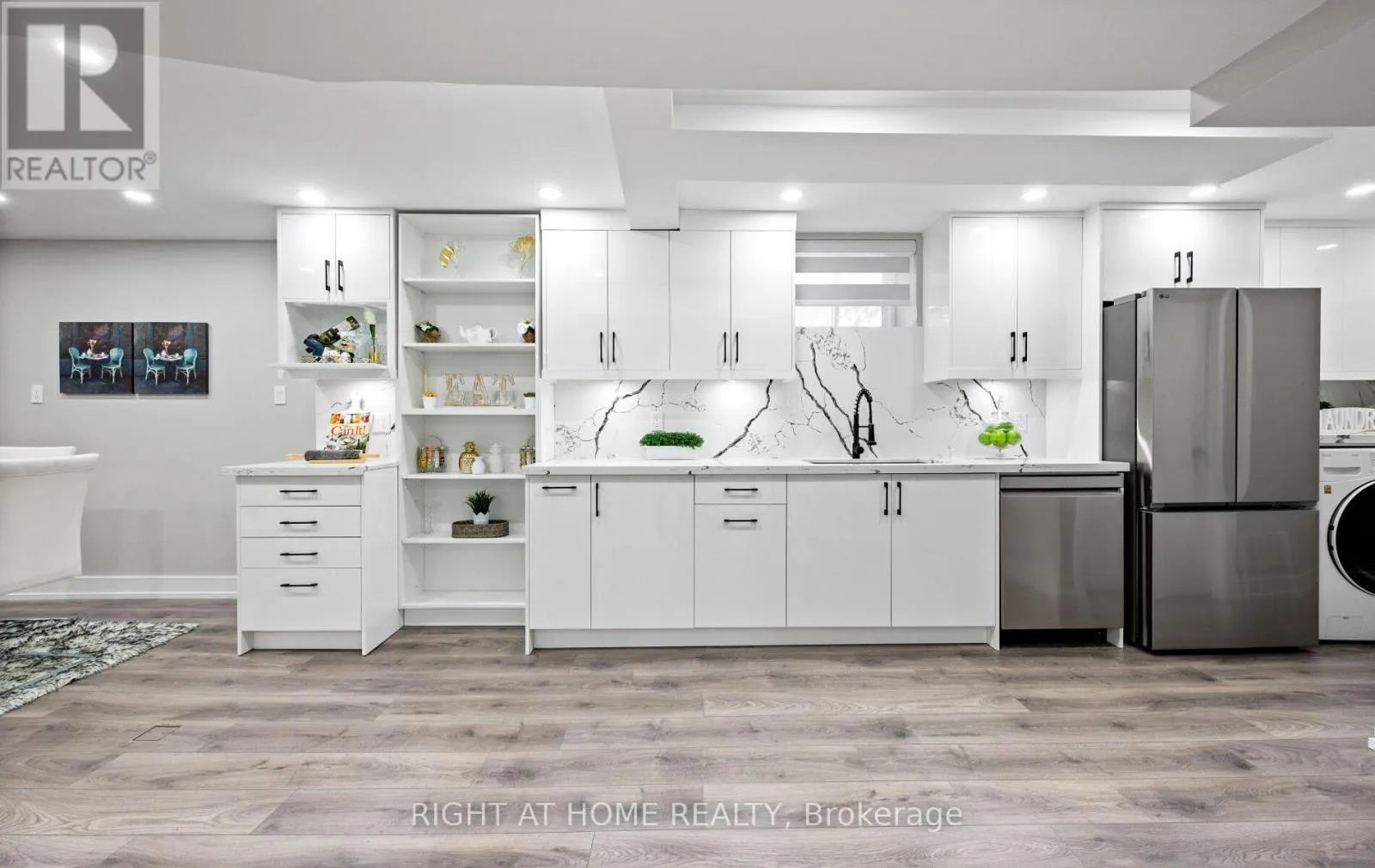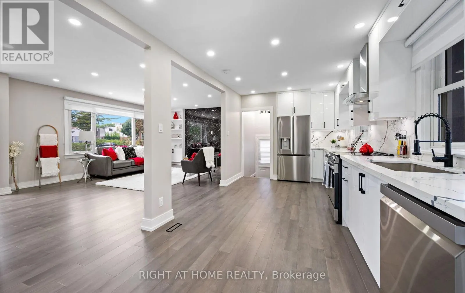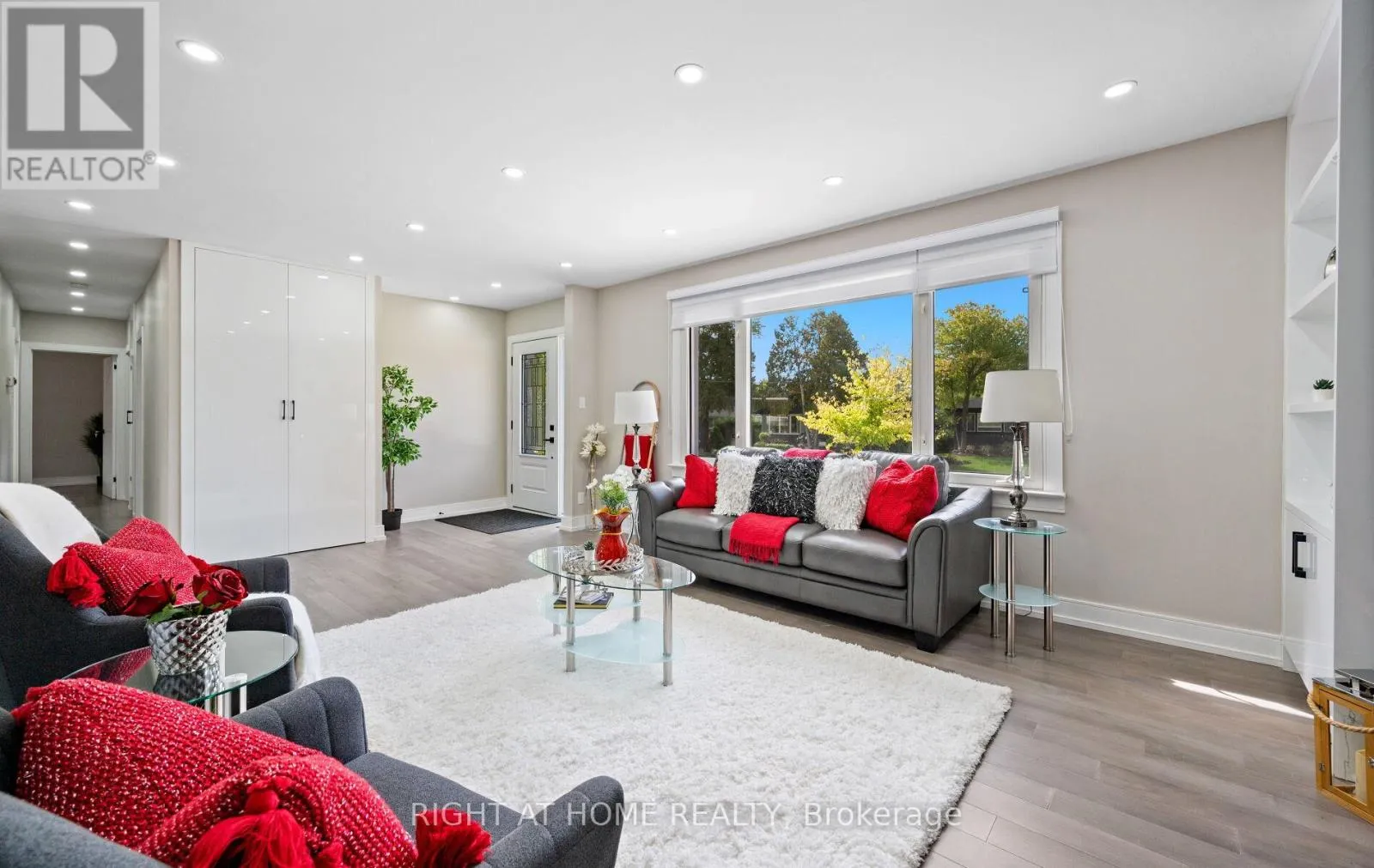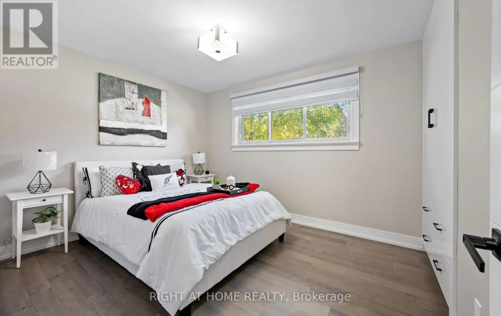 Cross Streets: Brant st & Mt forest dr. ** Directions: Brant & MT forest. Step inside to an inviting open-concept layout featuring rich hardwood floors and a cozy electric fireplace. The modern kitchen boasts quartz countertops, stainless steel appliances, custom cabinetry, and a dining area with walkout to the backyard, ideal for gatherings. Three spacious bedrooms offer custom-built closets, while the 3-piece bathroom includes a stand-up shower and convenient laundry closet.The finished basement offers excellent in-law or income potential, featuring laminate flooring, a bright recreation area, open-concept living, and a spacious bedroom with a custom-built closet. A second kitchen with quartz countertops, custom cabinetry, a 4-piece bathroom, and an additional laundry closet make this lower level completely self-sufficient.Enjoy incredible curb appeal with new stucco all around, a new concrete driveway with space for up to 8 vehicles, and a newly fenced backyard with fresh sod. The concrete patio and two storage sheds provide both comfort and convenience, while the large corner lot ensures privacy and plenty of outdoor space.Located in a highly desirable neighborhood close to top-rated schools, parks, shopping centers, and public transit, this home offers both peace and accessibility. Easy access to major highways makes commuting effortless, while nearby restaurants, community centers, and walking trails add to the vibrant local lifestyle. Whether youre raising a family or seeking a high-demand rental property, this area delivers exceptional value and convenience (id:27476)