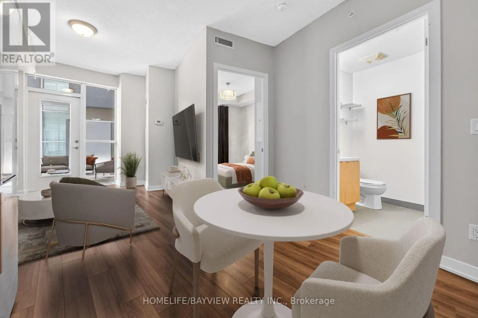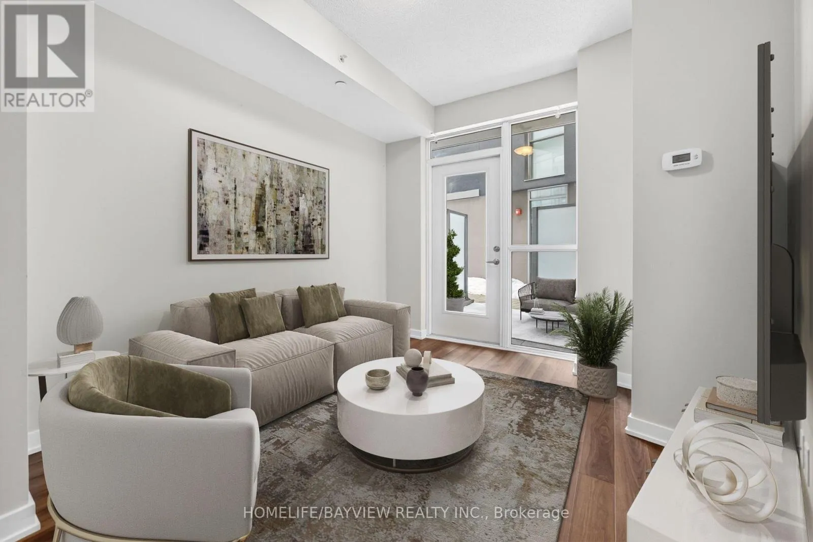 Sutton and Dundas Stunning and bright one bedroom in Link Condos, located in the highly desirable Bronte Creek / Orchard community. Extremely functional layout with ample storage. Upgrades including wide plank laminate flooring throughout, quartz countertops and new backsplash in kitchen. Floor to ceiling windows allow ample natural light. This end unit with walkout to a large terrace creates a very private oasis in the city. Direct access from the terrace to the courtyard, bbq area and exceptional amenities. Enjoy concierge service and amenities, including a fitness centre/gym, games room, plunge pools (hot and cold), saunas (dry and steam), meeting room, party room and landscaped courtyard. Ideally situated close to Bronte Provincial Park trails, transit, schools and shopping. Some photos have been virtually staged. A must-see! (id:27476)