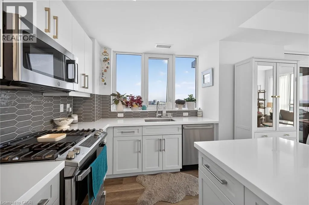Lakeshore Road to Brant Street to James Street Experience stunning views and luxurious downtown living with hotel-like amenities in this 2-bedroom, 2-bathroom suite. Enjoy a spacious primary bedroom with a 4-piece ensuite, separate walk-in shower, and walk-in closet. Unobstructed views of the lake enhance your living experience. The building provides exceptional amenities including an indoor pool, 24-hour concierge, gym, yoga studio, party room with a full kitchen, billiard table, TV room, and a roof terrace with BBQ facilities, multiple seating areas, and fire pits. Conveniently located near shops, cafes, restaurants, the mall, and GO Transit for easy access to all that downtown has to offer. (id:27476)