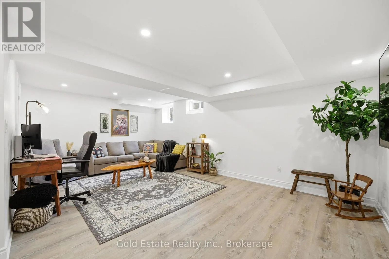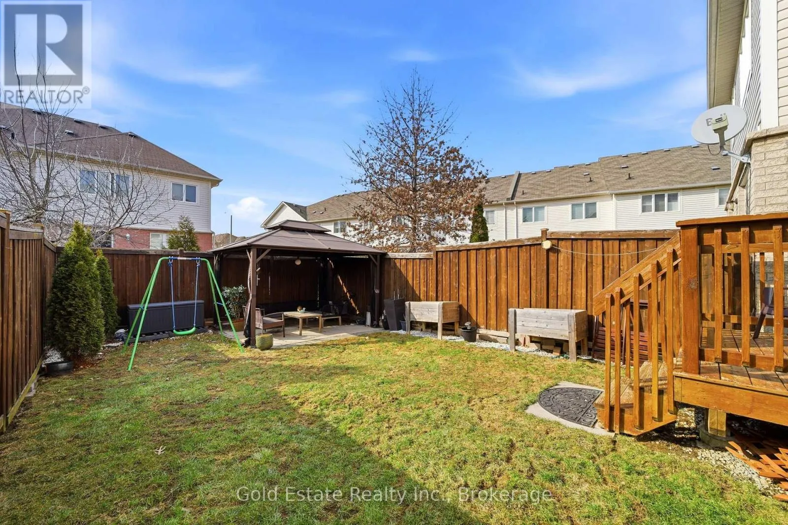 Cross Streets: THOMAS ALTON AND VALERA. ** Directions: THOMAS ALTON TO VALERA. Welcome to this beautifully ( approx. 1437 sft above grade) upgraded freehold townhome in Burlington's highly desirable Alton Village, offering modern finishes and true turnkey living. Ideally positioned as the second-last unit in the row, this home provides added privacy while being just minutes from everyday conveniences. Step inside to discover hardwood flooring throughout (2021) and a thoughtfully upgraded kitchen featuring quartz countertops, white cabinetry, stylish backsplash, and stainless steel appliances-perfect for both everyday living and entertaining. The home features 3 spacious bedrooms and 4 well-appointed bathrooms, including a luxurious primary ensuite with a glass shower and quartz vanity (2024), creating a spa-inspired retreat. The professionally finished basement (2022) significantly expands the living space with a large recreation area, dedicated home office, and full 3-piece bathroom, making it ideal for work-from-home professionals, entertaining, or extended family use. Enjoy the fully fenced backyard with a gazebo, providing the perfect setting for relaxing evenings or outdoor gatherings. Ideally located within minutes of Walmart, No Frills, Winners, Shoppers Drug Mart, restaurants and many shops, while also offering walking access to scenic trails and a nearby pond. Families will appreciate the school bus stop just steps away. Recent upgrades include: hardwood flooring (2021), French door refrigerator (2021), professionally finished basement (2022), bathroom vanities (2024), carpet removed from stairs (2025), and over-the-range microwave (2026). A fantastic opportunity to own a beautifully upgraded, move-in-ready home in one of Burlington's most family-friendly neighbourhoods, ideal for young families and professionals seeking comfort, convenience, and proximity to schools, parks, and everyday amenities. (id:27476)