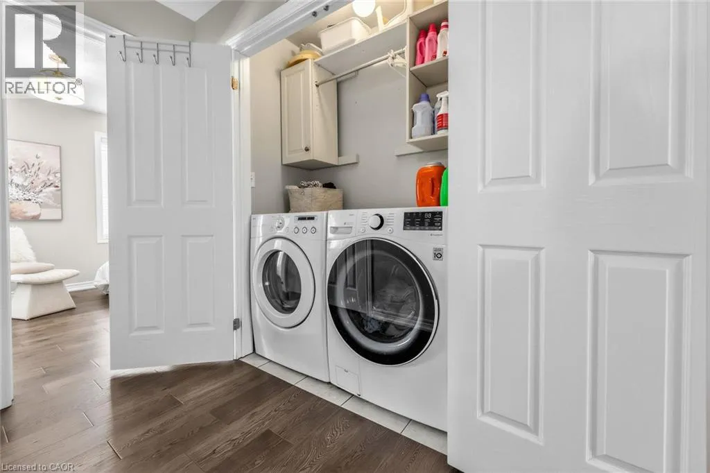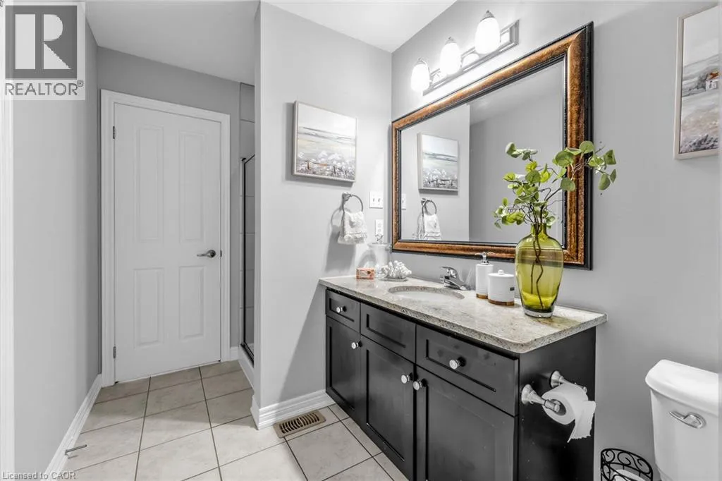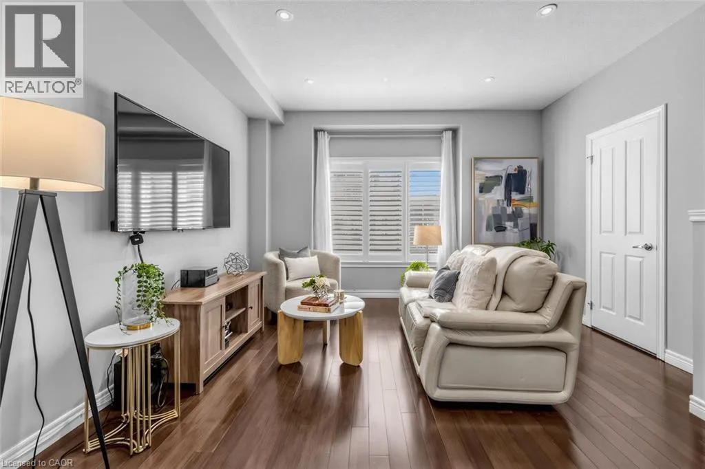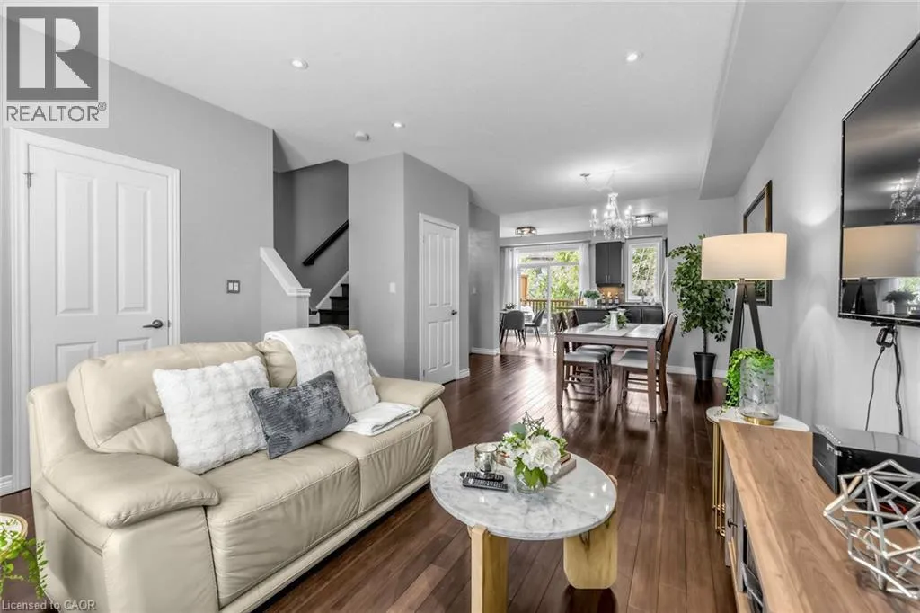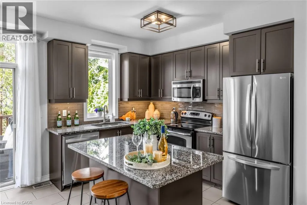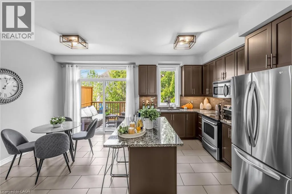 Between Walkers Line & Appleby Line (Near William O'Connell Blvd.) Bright and spacious, beautifully upgraded Branthaven luxury townhome located in the desirable Millcroft community. This home offers 3 bedrooms and 2.5 bathrooms with a functional and stylish layout. The main level features a versatile third bedroom with a 4-piece bathroom, convenient inside access to the garage, and a walkout to the private backyard wooden deck. The second level offers 9-ft ceilings and an open-concept living and dining area with hardwood floors and pot lights, creating a bright and welcoming space. The spacious kitchen includes a dinette area, centre island, stainless steel appliances, granite countertops, and extended cabinetry, with a walkout to an elevated private deck-perfect for entertaining or enjoying morning coffee. Convenient third-level laundry includes a front-load washer and dryer. The upper level also features an updated bathroom with a separate tub and shower, upgraded lighting throughout, and generous bedroom space. Wood staircases, engineered hardwood flooring, and the main level deck were updated, along with an upgraded powder room vanity. The home backs onto a private, treed common area, providing added privacy and a peaceful setting. Low condo road maintenance fees. Situated in Burlington's highly sought-after Millcroft neighbourhood, known for its tree-lined streets, executive homes, and the renowned Millcroft Golf Course. Close to top-rated schools, Tansley Woods Community Centre, shopping, restaurants, and with easy access to Highways 403, 407, and the QEW, Appleby GO for convenient commuting to Toronto, Oakville, and Hamilton. (id:27476)