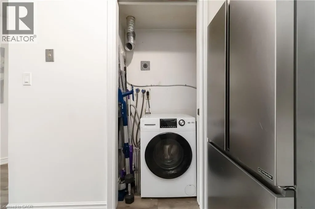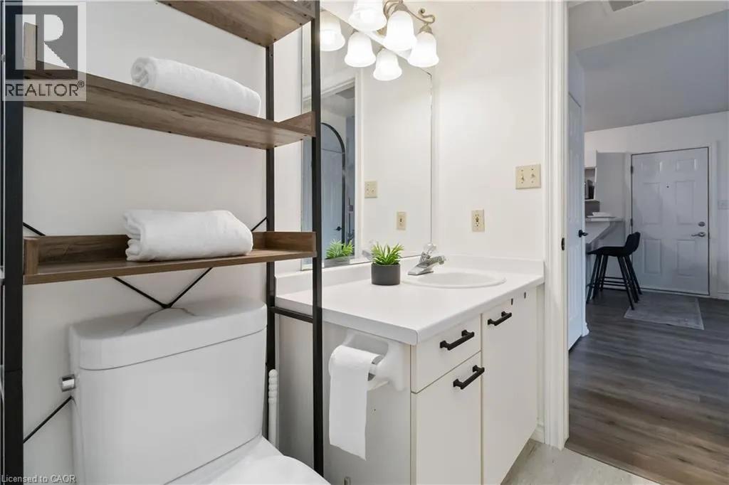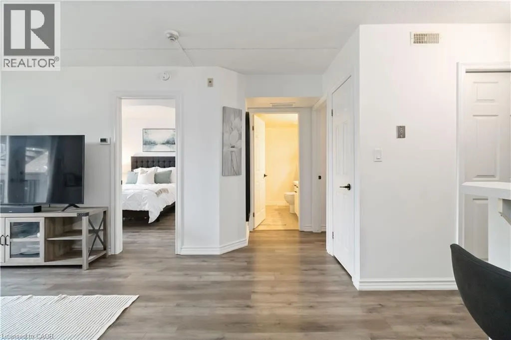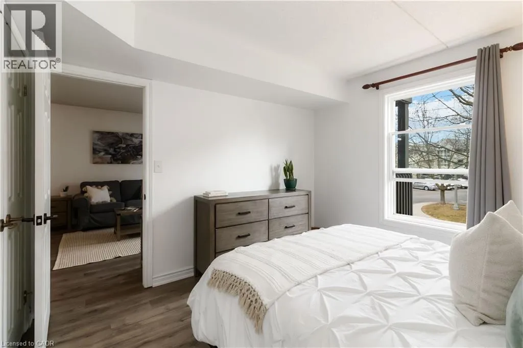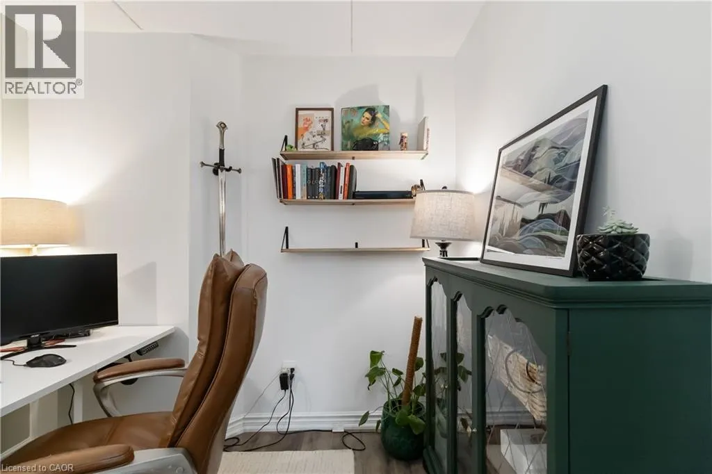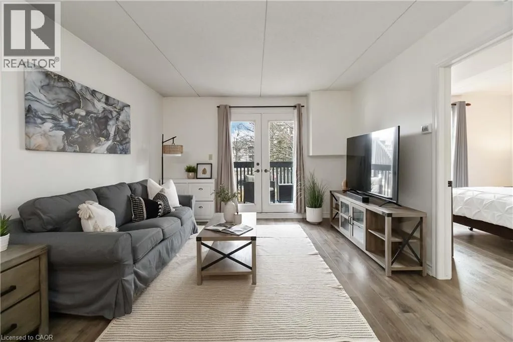 Upper Middle Rd to Cleaver Ave Welcome home to this beautifully appointed open-concept 1 bedroom plus den condo, privately nestled in the sought-after Headon Forest community of Burlington. Surrounded by mature trees and tranquil greenery, this bright and inviting one-bedroom plus den residence offers an exceptional blend of style, comfort, and convenience. Designed with modern living in mind, the spacious open-concept layout creates seamless flow between the kitchen, dining, and living areas ideal for both everyday living and entertaining. The peninsula-style kitchen serves as the heart of the home, offering generous counter space, additional seating, and a natural gathering place for casual meals or hosting guests. The sun-filled living area extends to a private covered balcony, providing a peaceful outdoor retreat to enjoy your morning coffee or unwind at the end of the day. The well-proportioned primary bedroom is complemented by a versatile den, perfect for a home office, guest space, or reading nook. A four-piece bath and convenient in-suite laundry enhance everyday functionality. Ideally located close to shopping, restaurants, parks, and everyday amenities, this residence offers refined condo living in one of Burlingtonâs most desirable neighbourhoods. (id:27476)