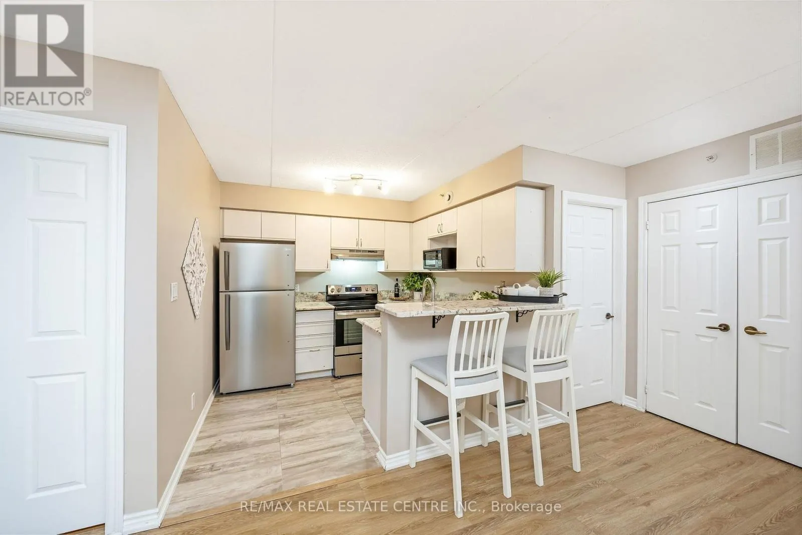 Cross Streets: Upper Middle/Walkers Line. ** Directions: Walkers Line- Kilmer Drive. Functional, effortless and perfectly located- this beautifully maintained 1 bedroom + den condo offers the ideal blend of comfort and convenience in one of Burlington's most sought-after communities. Step inside to discover an open-concept layout designed for easy living. The kitchen with brand new appliances & breakfast bar is open concept to the spacious living room and flows seamlessly to your personal terrace- the perfect spot for morning coffee, evening wine, or simply unwinding after a long day. The bedroom offers comfort and privacy, while the versatile den provides the ideal space for a home office, exercise space, or guest area. A full bathroom and convenient in-suite laundry add to the everyday ease this unit provides. Storage won't be an issue with this condo, you have BOTH a storage locker in the common area as well as a storage closet located on your balcony. Whether you're a first-time buyer, downsizer, or investor, this thoughtfully designed condo delivers low-maintenance living without compromise. Located in Burlington's sought-after Tansley Woods neighbourhood, offering the perfect balance of convenience and community. Steps to shopping, restaurants, parks and trails, and just minutes to the QEW, 407 and GO Transit, this location is ideal for commuters and everyday living alike. Enjoy a quiet, well-established area close to schools, transit, green space and all essential amenities. (id:27476)