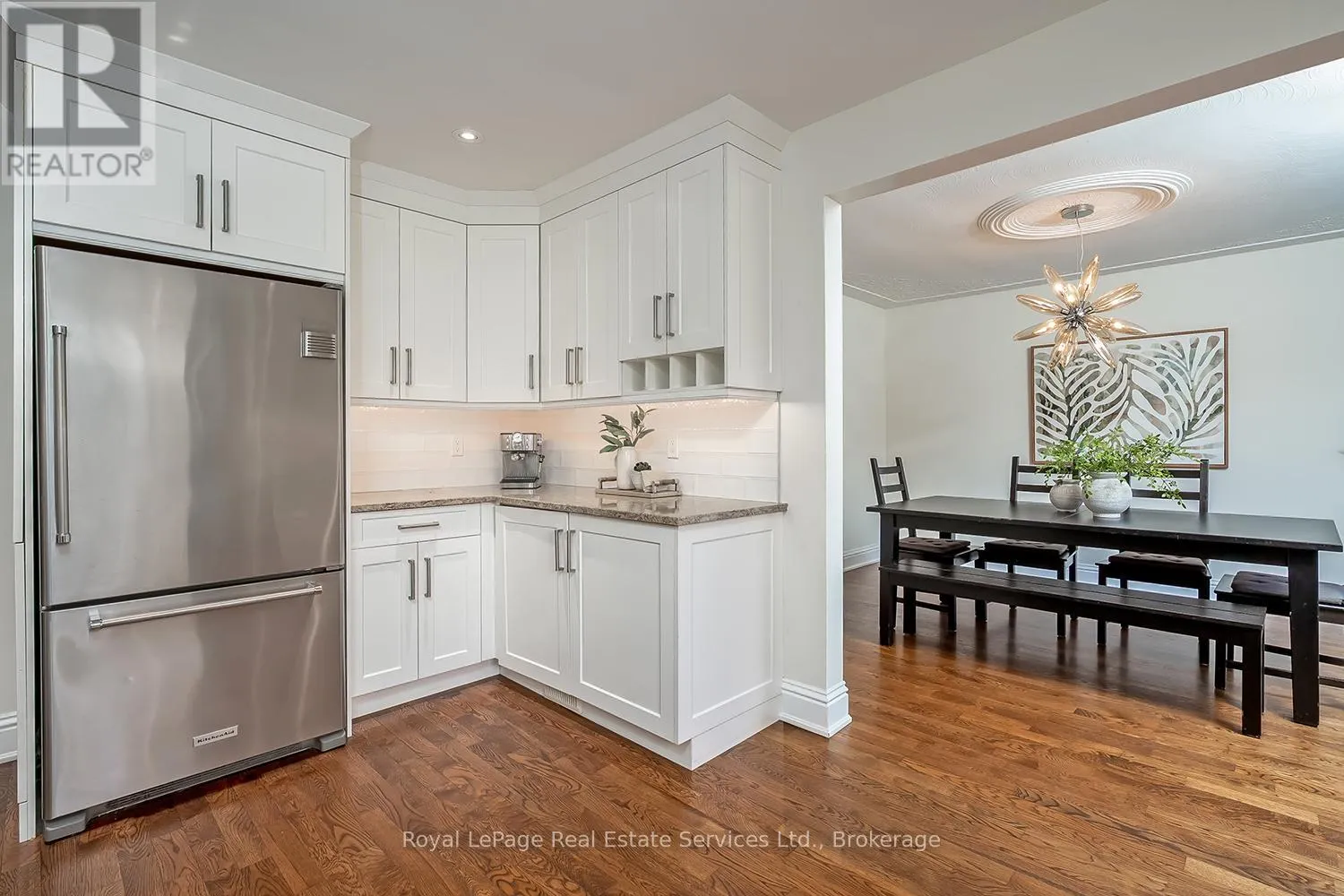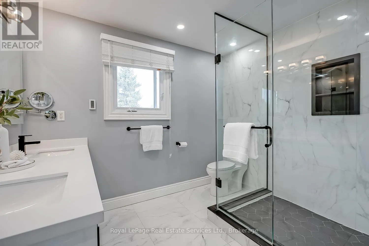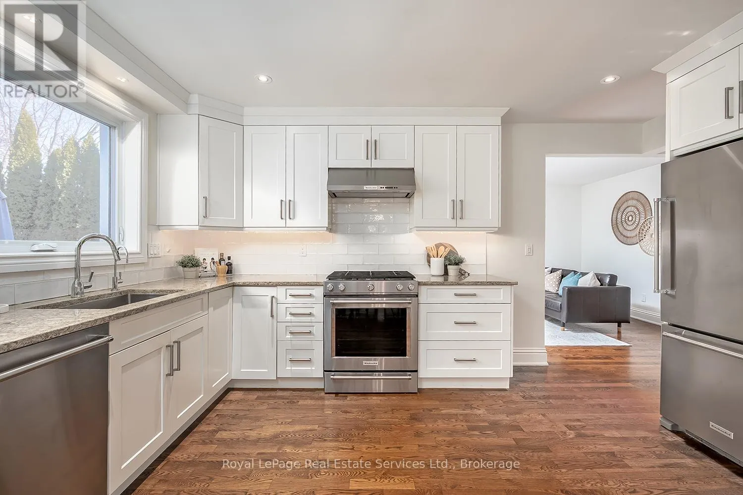 Cross Streets: Lakeshore/Appleby. ** Directions: Lakeshore Road towards Appleby, home will be on the North Side of Lakeshore. Wow! Live on Prestigious Lakeshore Rd amongst Multi-Million Dollar Homes. This Beautifully Renovated 4 Bed, 3 Bath, 2 Storey Home sits on a Mature Lot almost 170' deep. The traditional layout offers Hardwood flrs. & smooth ceilings T/O, a Sep. Living & Dining rms. w direct access to back deck, Renovated Kitchen w shaker style cabinets, SS appliances, Quartz Counters, Pot Drawers & much more, Sep. Family Rm w Upgraded gas fireplace & sliding doors to back deck perfect for Entertaining, main flr. powder rm, laundry & direct access to the garage. The hardwood stairs lead to the 2nd level w Spacious Primary Suite w Renovated '25 Ensuite w Double Sink & Custom Glass Shower, 3 other Spacious Bedrooms & 5 pc. update Bath. The fully finished basement offers 2 Large Rec. rm. one w Gas Fireplace. Offering Great Curb Appeal w Stucco finish Fascia, Soffits, Eaves, Roof & Window replaced & professionally landscaped. Spend your Summer enjoying this private, mature backyard or your morning coffee on the front porch. Fantastic location mins to the Lake, major HWYS. Go Station & walk to Amenities, Schools & Parks. This One is a Must See! (id:27476)