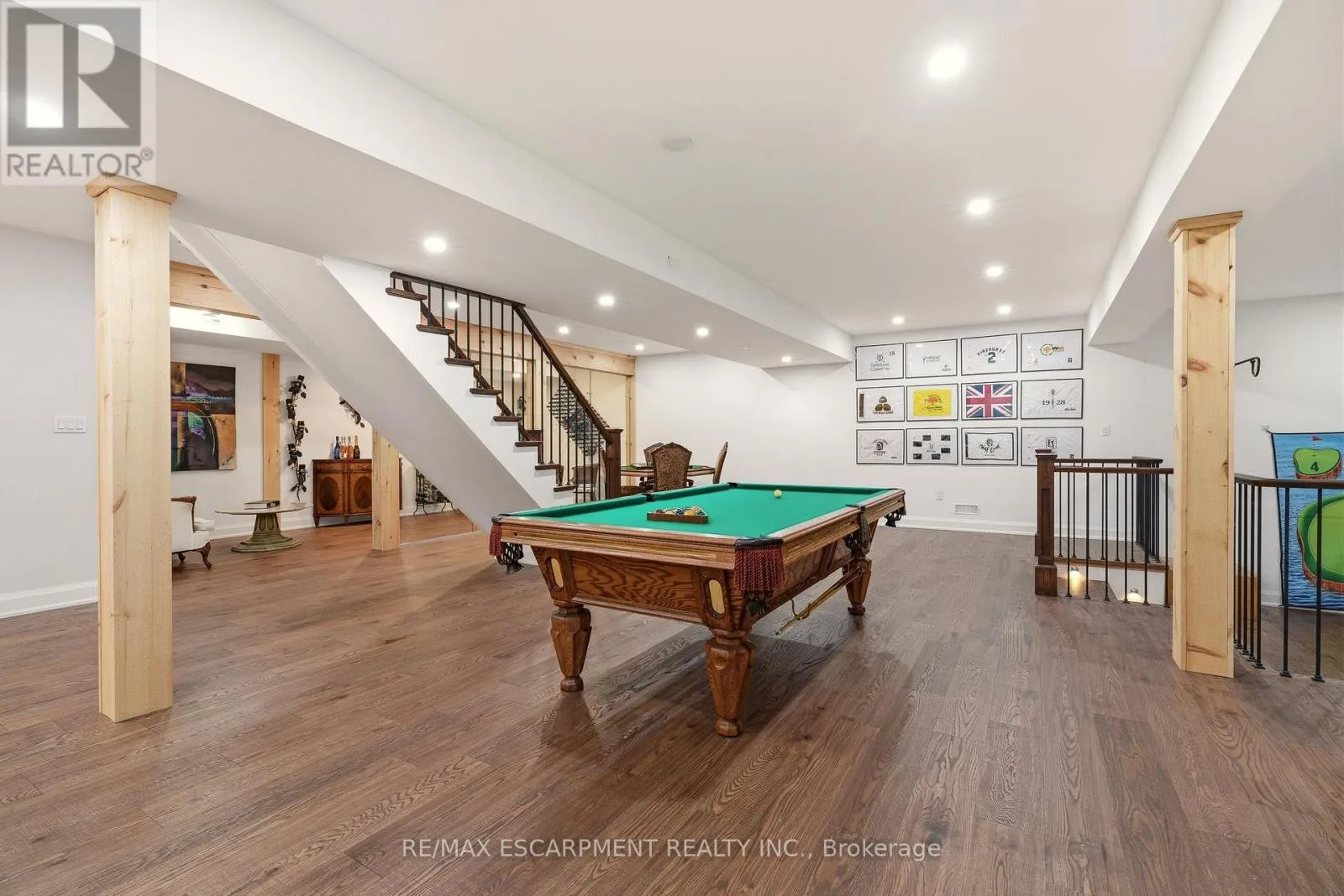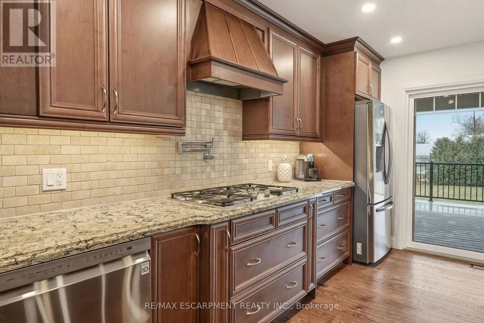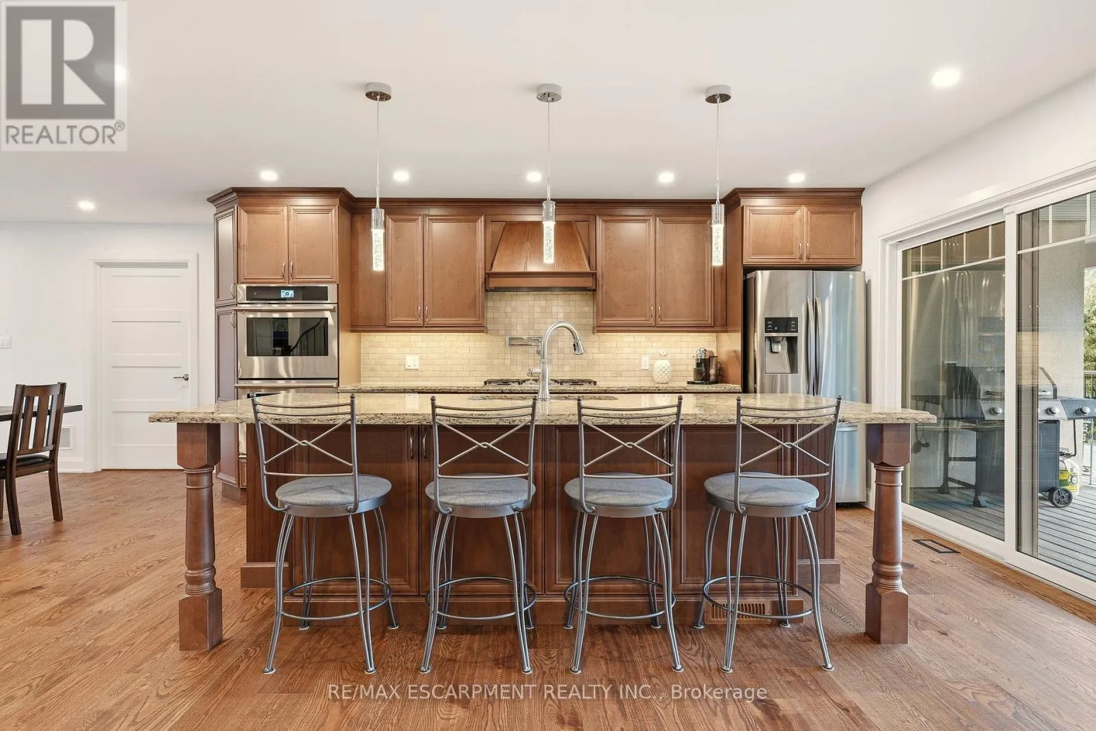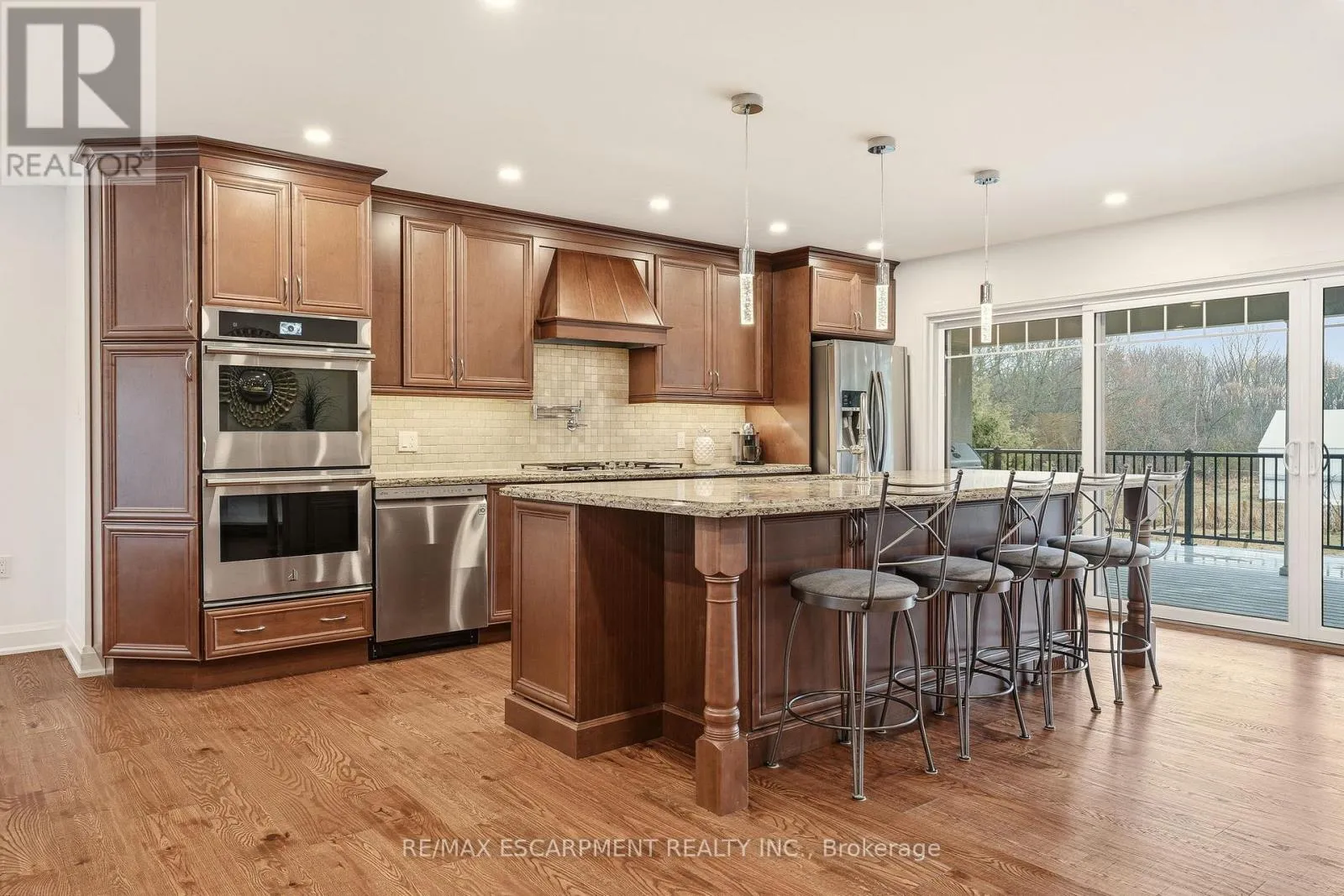 Dundas St to Cedar Springs Rd to No 1 Side Rd Nestled across from the prestigious Hidden Lake Golf Course, this extraordinary country estate offers a rare harmony of location, lifestyle, and luxury-just minutes from the city, yet worlds away in serenity. With over 7,500 square feet of meticulously finished living space this home captures the essence of refined country living. Every detail tells a story of thoughtful design and comfort-from the sweeping front approach that welcomes you home, to the grand interior spaces that invite connection, celebration, and retreat. The main floor centers around an entertainer's kitchen where culinary inspiration thrives. Granite countertops, gas cooktop, dual dishwashers, and a built-in oven create a chef's haven that flows naturally into the dining and family areas. A tranquil primary suite offers a private escape with a spa-inspired ensuite while the east wing provides a fully independent suite-ideal for multigenerational living. Upstairs, four expansive bedrooms and two elegant, shared baths provide ample space for family and friends. The lower-level transforms downtime into pure enjoyment: a recreation room with a pool table, a wet bar, wine room, and a fully equipped gym. Outdoors, life unfolds on a grand covered deck with a fireplace-whether you're savoring morning coffee or fireside evenings under the stars. The 0.69-acre lot offers lush privacy and room to envision a pool or garden retreat. Two attached garages (a double and a 2.5-car) ensure every vehicle and hobby has its place. RSA. Luxury Certified. (id:27476)