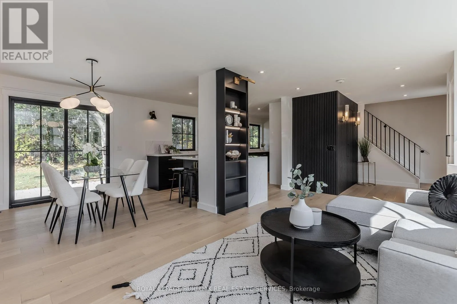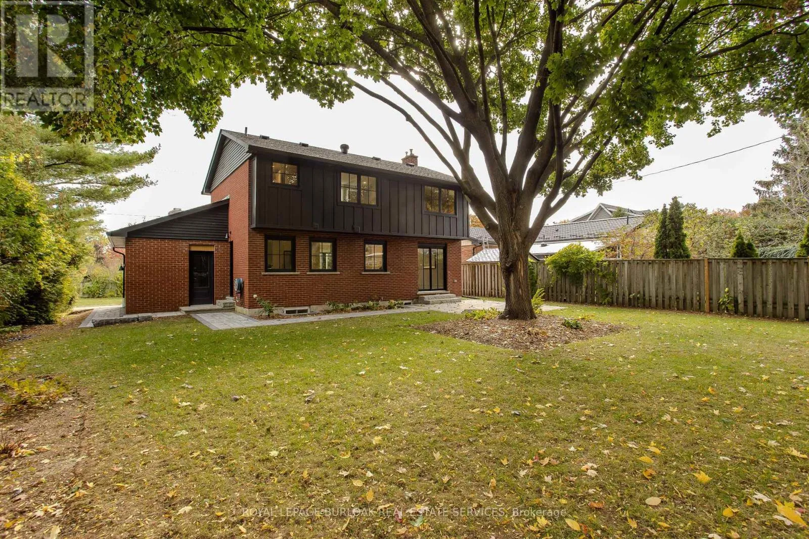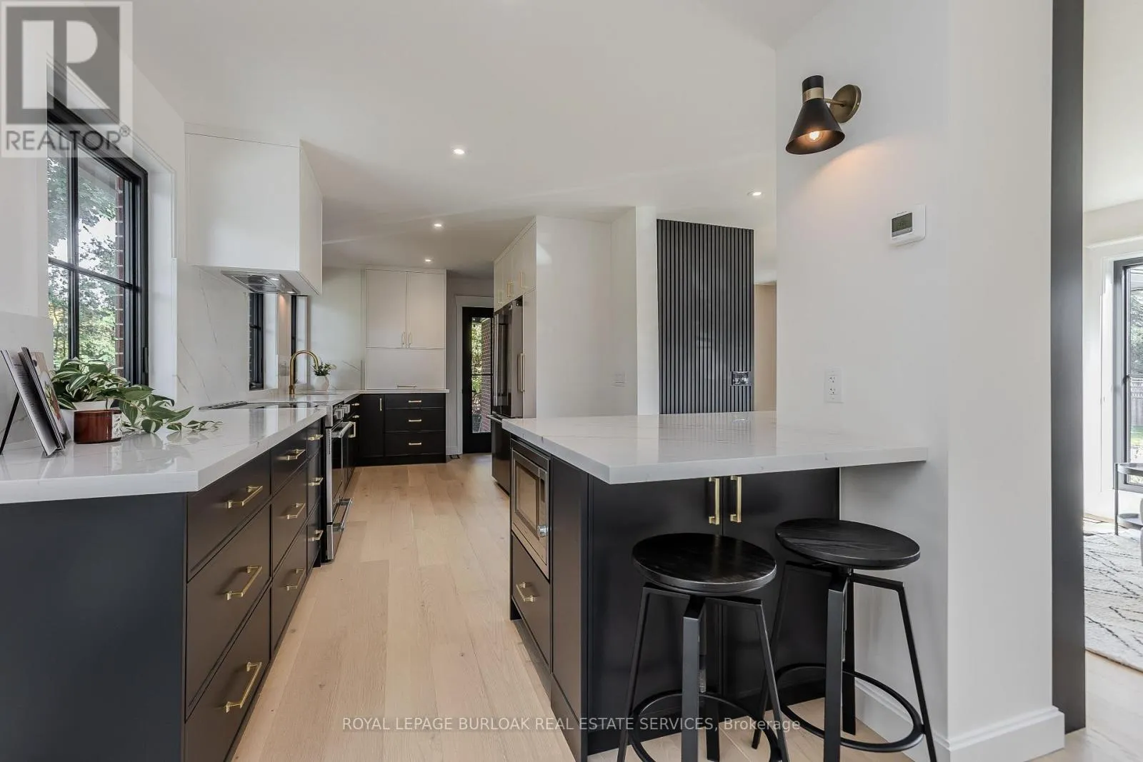 Guelph Line/Eva Drive Modern luxury meets family-friendly living in this beautifully renovated home in sought-after Dynes. Set on a mature, pool sized lot surrounded by established trees, this property is just minutes from schools, parks, dining, transit, highways, and Burlington's lakefront. Offering 2,177 sq ft of total finished living space, the thoughtfully designed open-concept layout showcases exceptional craftsmanship throughout. From the impressive curb appeal featuring a refinished exterior, fiberglass entry door, and charming cedar-roofed covered porch, to the engineered white oak flooring and abundant LED pot lighting, every detail has been carefully considered. The custom kitchen is a standout with slim shaker cabinetry, quartz countertops with a matching slab backsplash, gold fixtures, pantry storage, appliance garage, and a spacious island with breakfast bar seating. The kitchen flows seamlessly into the dining area, where striking black-framed sliding doors open to a private backyard with a stone patio-perfect for entertaining and summer gatherings. The welcoming living room is highlighted by a modern gas fireplace with a sleek surround and mantle, along with an oversized window that fills the space with natural light. Upstairs, the primary suite offers a peaceful retreat complete with a walk-in closet and a spa-inspired ensuite featuring a freestanding tub with Riobel tub filler, a large glass shower, and a double vanity. Two additional bedrooms and a full bathroom complete the upper level. The finished lower level adds versatile livings pace with a cozy family room, dedicated office area, and an oversized laundry room featuring custom cabinetry and quartz counters. Additional highlights include EV charger rough-in, gas BBQ connection, new Ridley windows, updated HVAC, sump pump, new electrical, and more. All renovations completed with permits. Truly move-in ready. (id:27476)