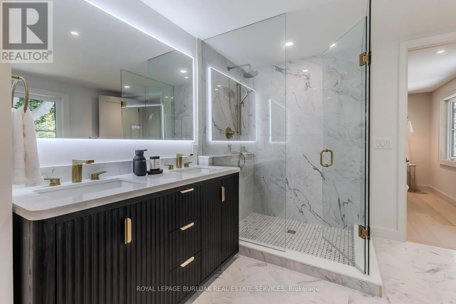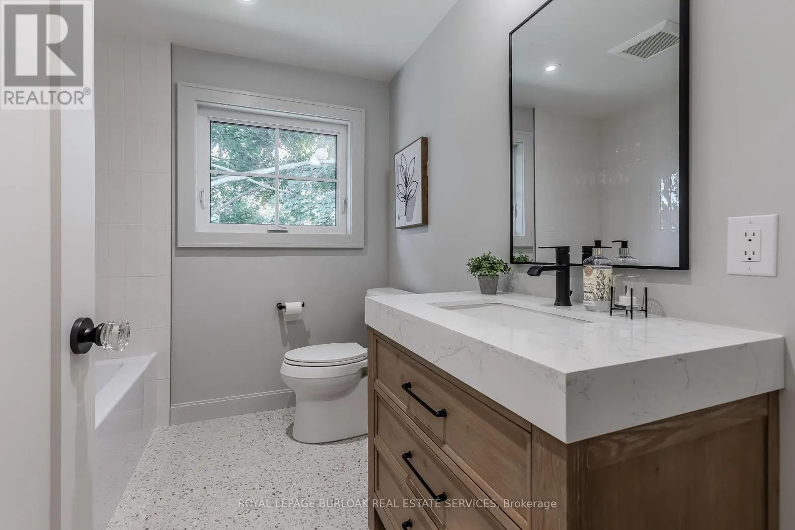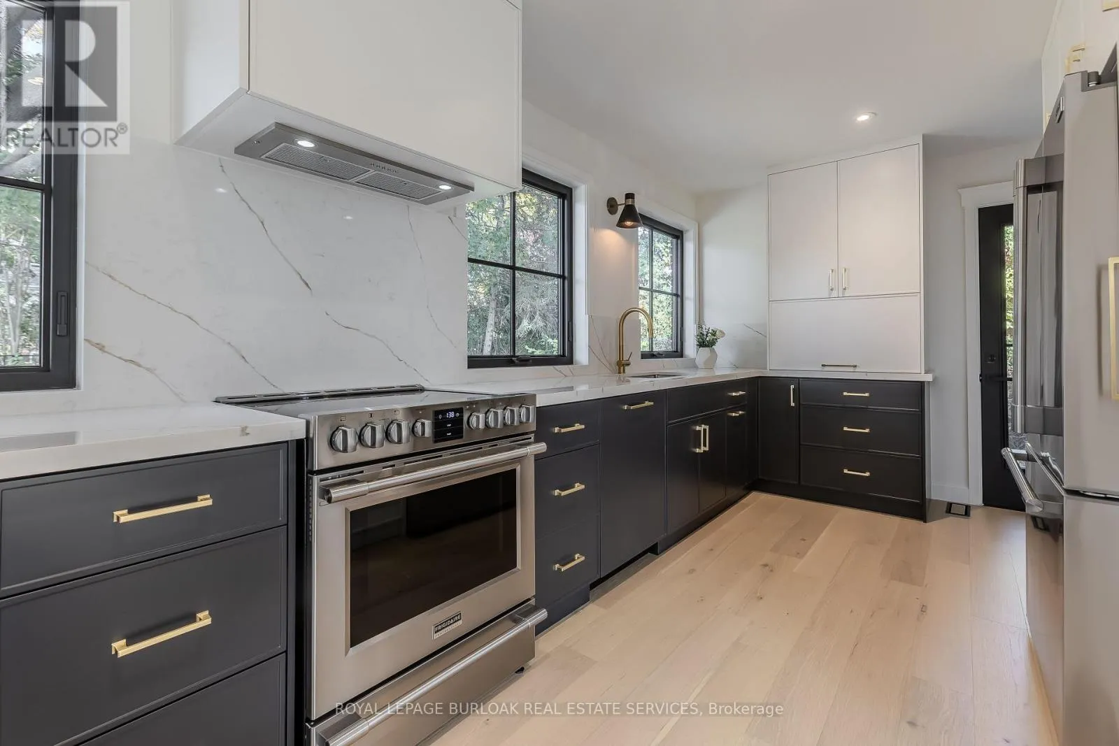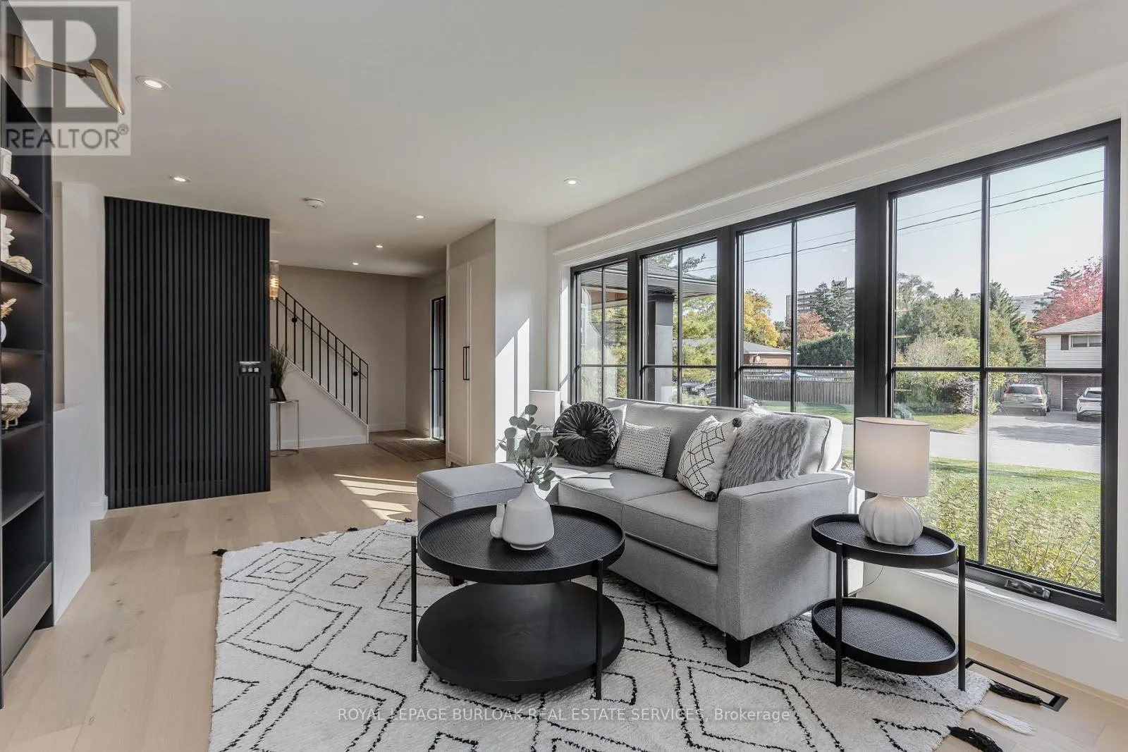 Guelph Line/Eva Drive Modern luxury meets family-friendly living in this beautifully renovated home in sought-after Dynes. Set on a mature, pool sized lot surrounded by established trees, this property is just minutes from schools, parks, dining, transit, highways, and Burlington's lakefront. Offering 2,177 sq ft of total finished living space, the thoughtfully designed open-concept layout showcases exceptional craftsmanship throughout. From the impressive curb appeal featuring a refinished exterior, fiberglass entry door, and charming cedar-roofed covered porch, to the engineered white oak flooring and abundant LED pot lighting, every detail has been carefully considered. The custom kitchen is a standout with slim shaker cabinetry, quartz countertops with a matching slab backsplash, gold fixtures, pantry storage, appliance garage, and a spacious island with breakfast bar seating. The kitchen flows seamlessly into the dining area, where striking black-framed sliding doors open to a private backyard with a stone patio-perfect for entertaining and summer gatherings. The welcoming living room is highlighted by a modern gas fireplace with a sleek surround and mantle, along with an oversized window that fills the space with natural light. Upstairs, the primary suite offers a peaceful retreat complete with a walk-in closet and a spa-inspired ensuite featuring a freestanding tub with Riobel tub filler, a large glass shower, and a double vanity. Two additional bedrooms and a full bathroom complete the upper level. The finished lower level adds versatile livings pace with a cozy family room, dedicated office area, and an oversized laundry room featuring custom cabinetry and quartz counters. Additional highlights include EV charger rough-in, gas BBQ connection, new Ridley windows, updated HVAC, sump pump, new electrical, and more. All renovations completed with permits. Truly move-in ready. (id:27476)