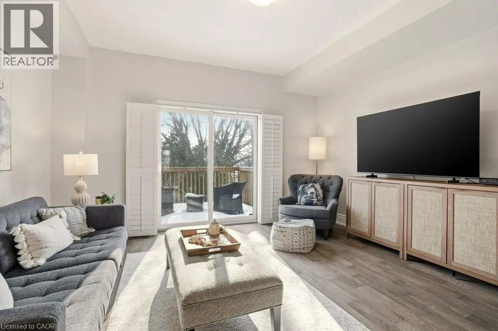 Fairview to Galileo Common This refined and light-filled FREEHOLD townhome, offers the ease of low-maintenance living paired with the privacy, space and independence of owning both the home and the land.The elegant main level features hardwood flooring, a bright and airy atmosphere, and a thoughtfully designed layout with a separate dining area ideal for everyday living and entertaining. The full-size kitchen is well appointed with stainless steel appliances, generous prep space and ample storage. Step out to a private deck overlooking a lush canopy of mature trees, creating a peaceful outdoor retreat perfect for morning coffee and quiet evenings. Solid wood staircases. Upstairs, two generously sized bedrooms each enjoy their own full bathroom, providing comfort, privacy and flexibility for professionals, guests or shared living arrangements.The walkout lower level extends your living space outdoors to a private patio backing onto trees, while inside entry from the garage adds everyday convenience and functionality.Perfectly positioned in a central commuter-friendly location with easy highway and public transit access, this elegant freehold home delivers a rare blend of lock-and-leave convenience, natural surroundings and elevated everyday living. Close to all amenities. Small road fee. (id:27476)