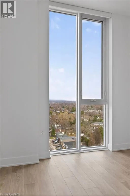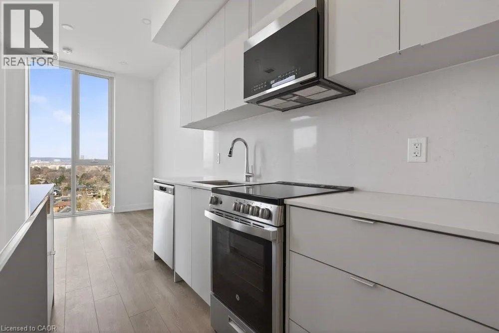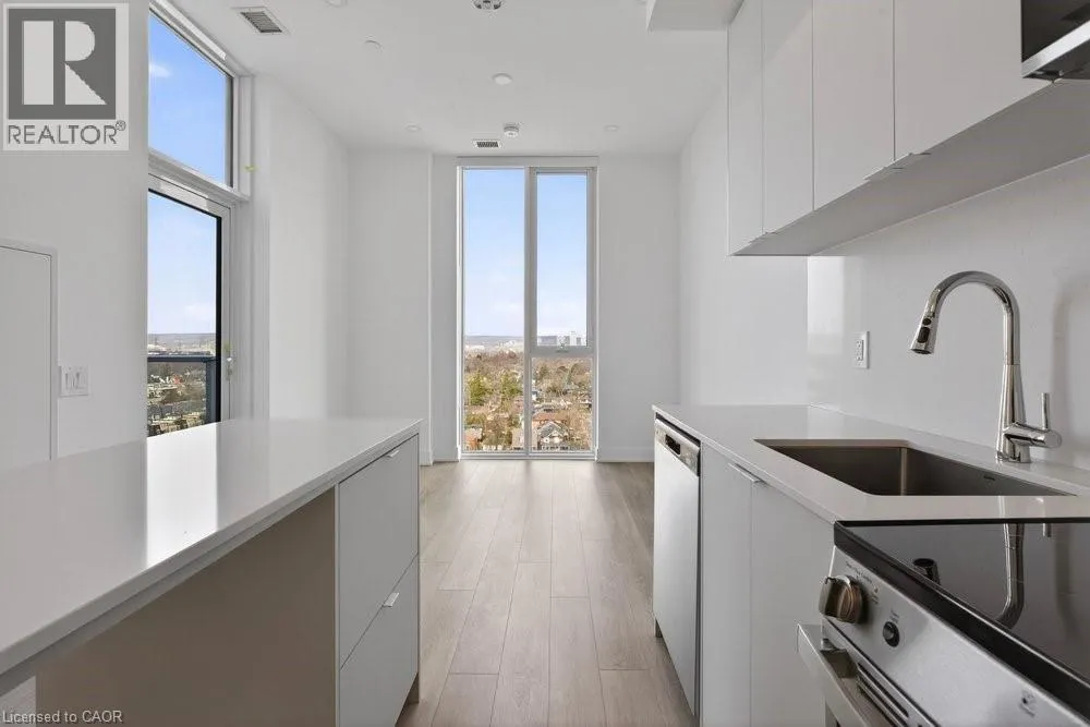 At Corner of James and Martha Incredible condo for lease. Downtown Burlington living at its best! Walk to parks, the lake, trendy restaurants, and shopping from this stylish north-facing suite. Unit 1302 features soaring 10-foot ceilings, full-length windows, and absolutely stunning views of Lions Park and Niagara Escarpment. The open-concept design includes a modern kitchen that flows seamlessly into the living space and out to a private outdoor balcony. This 1-bedroom, 1-bathroom unit offers bright, contemporary living in one of Burlingtonâs most desirable locations. The building boasts exceptional amenities, including a rooftop terrace with lake views, a fully equipped gym, a pet washing station, a party room, a welcoming foyer with concierge service and so much more. Includes private underground parking spot. Just move in and enjoy the good life! (id:27476)